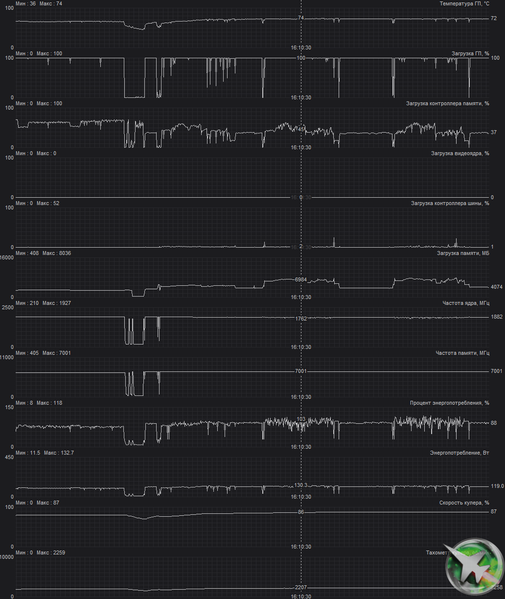 | 02 | RTX 3060 Ti 8 ГБ, 1665—2010/14000 | 69 | 623 | 90 000 |