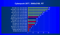 Результаты тестов со включенной аппаратной трассировкой лучей и/или DLSS/FSR в разрешениях 1920×1200, 2560×1440 и 3840×2160