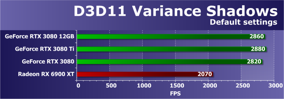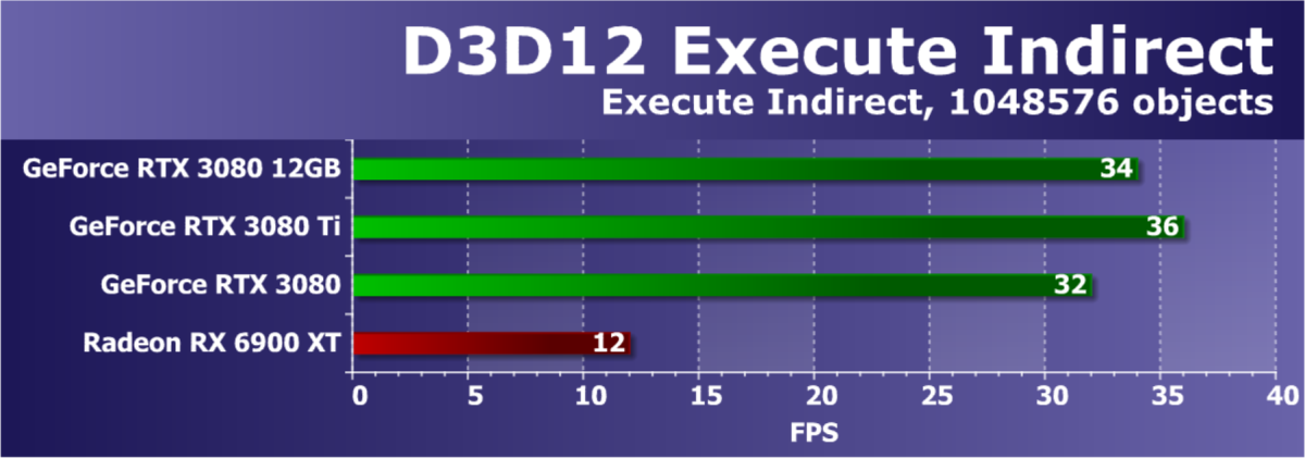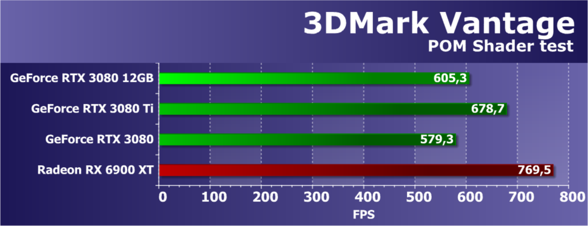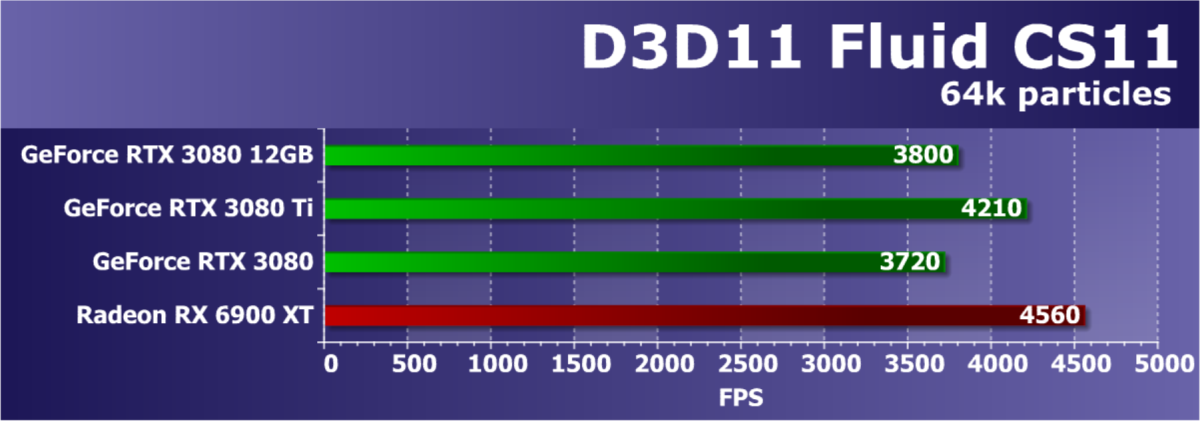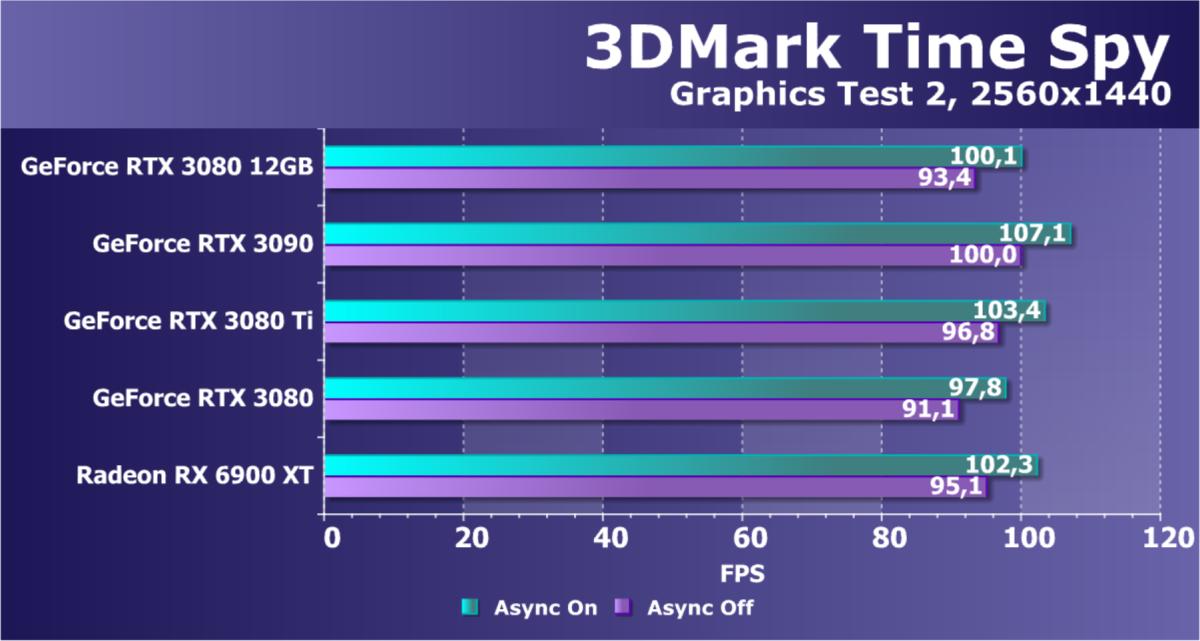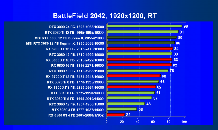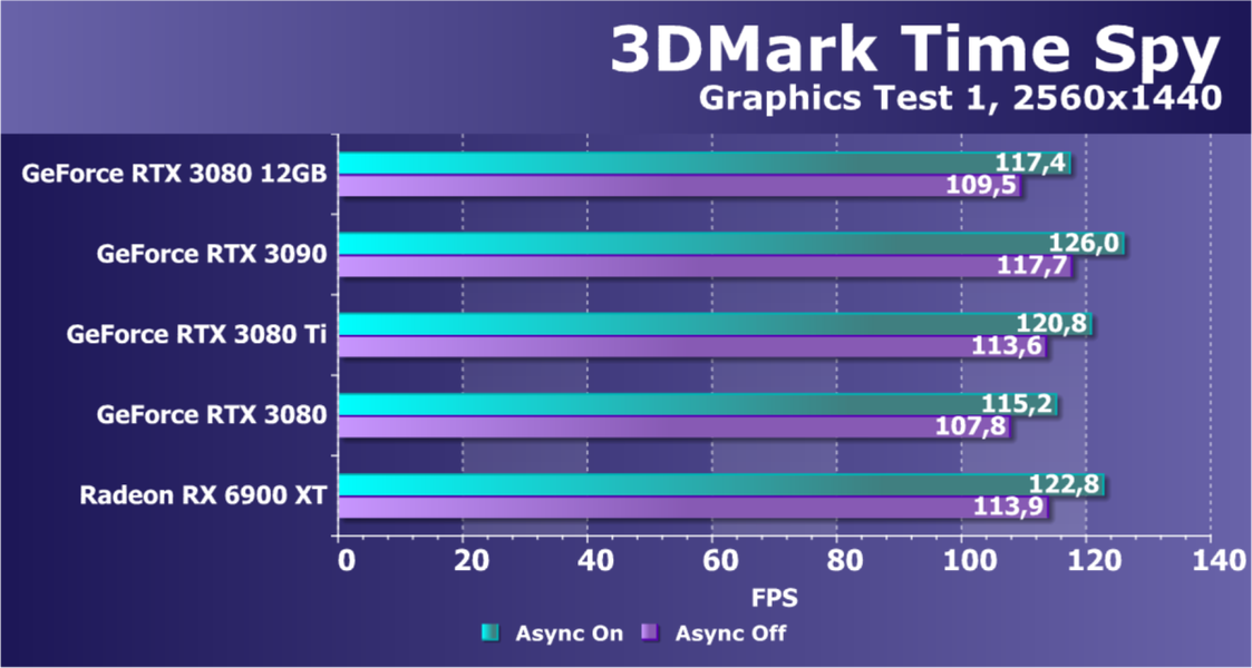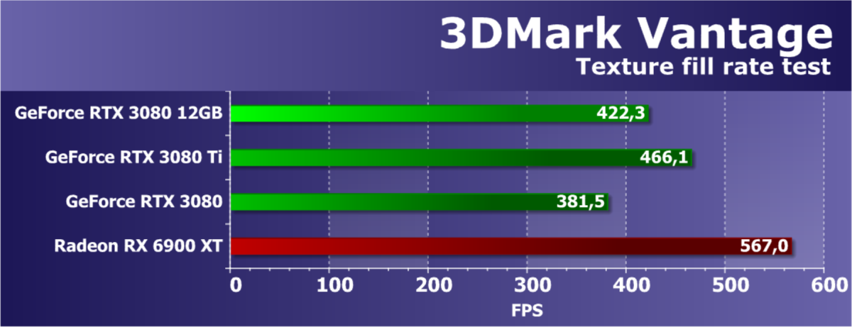 Что касается конкурентов, то прямым соперником новинки можно назвать видеокарты моделей Radeon RX 6800 XT и RX 6900 XT, имеющие близкую к разным вариантам RTX 3080 12 ГБ цену. В теории решение Nvidia дает больше вычислительной производительности и ПСП, но зато у Radeon еще больший объем видеопамяти с большим кэшем Infinity Cache в 128 МБ, что нивелирует разницу между ПСП для разных типов памяти: GDDR6 и GDDR6X. Но еще важнее преимущество по скорости аппаратной трассировки лучей у GeForce, ведь при включении эффектов, использующих трассировку, производительность Radeon падает куда сильнее. Также у Nvidia есть явное преимущество и в виде поддержки технологии увеличения производительности DLSS, использующей тензорные ядра.