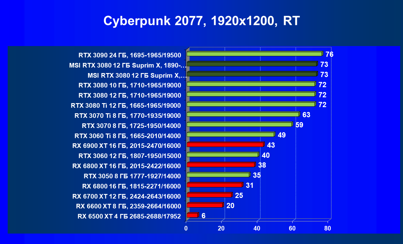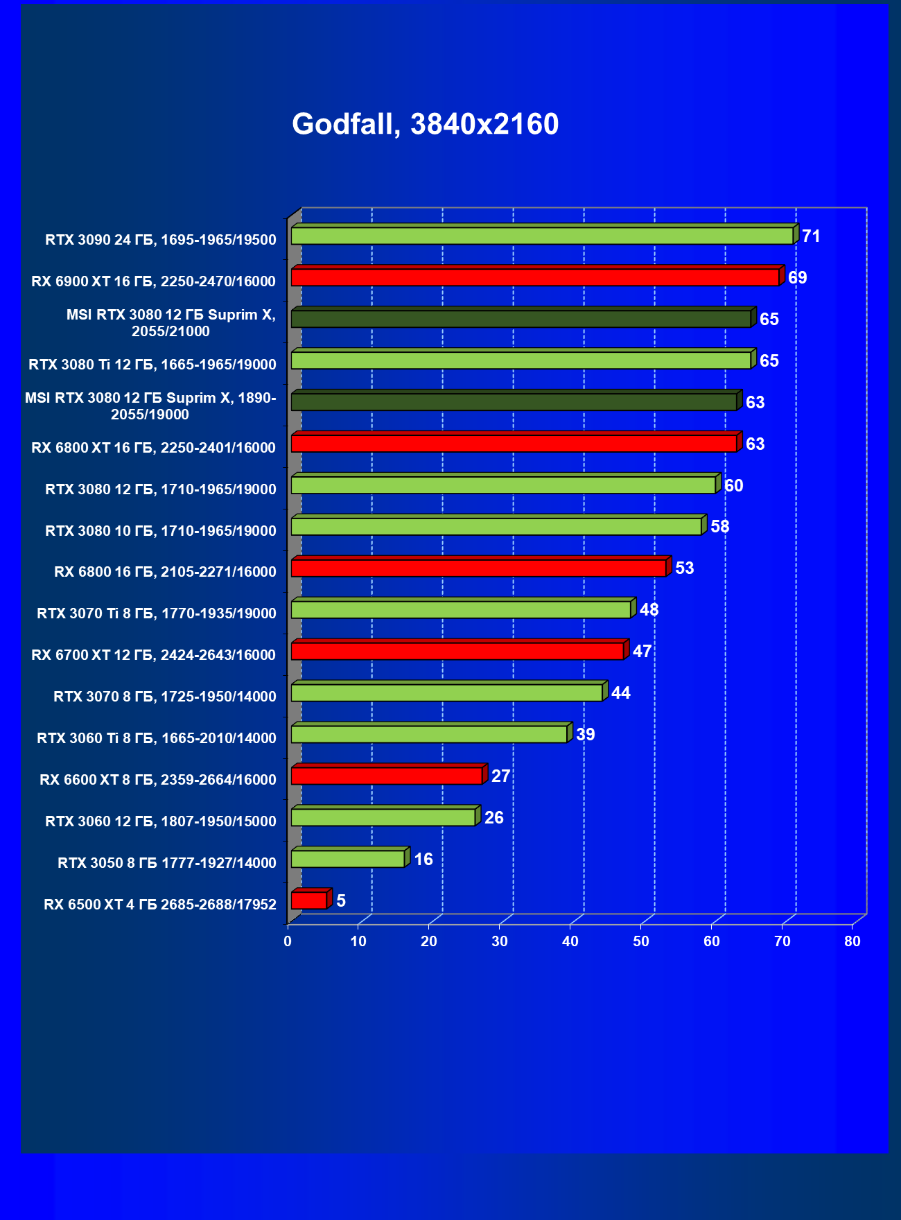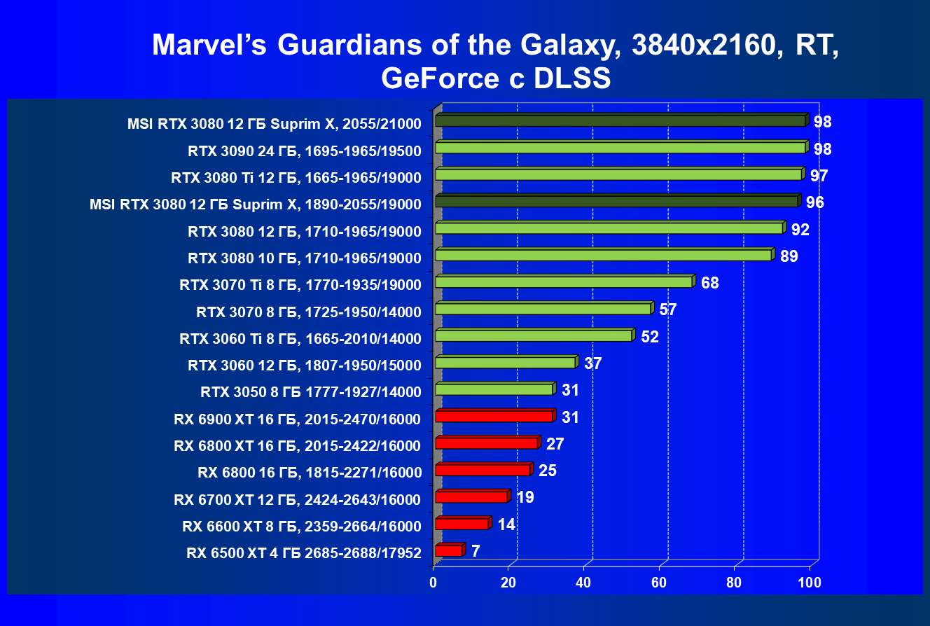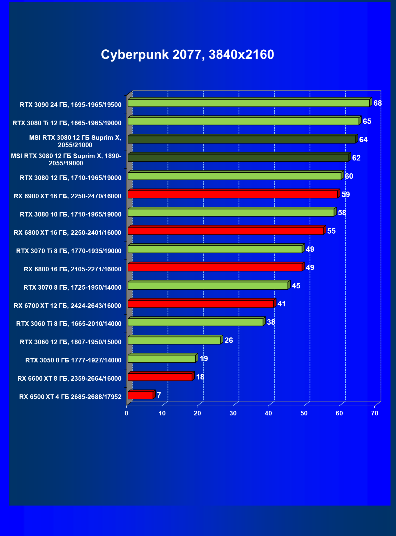 | 07 | MSI RTX 3080 12 ГБ Suprim X, разгон до 2055/21000 | 64 | 1048 | 164 000 |