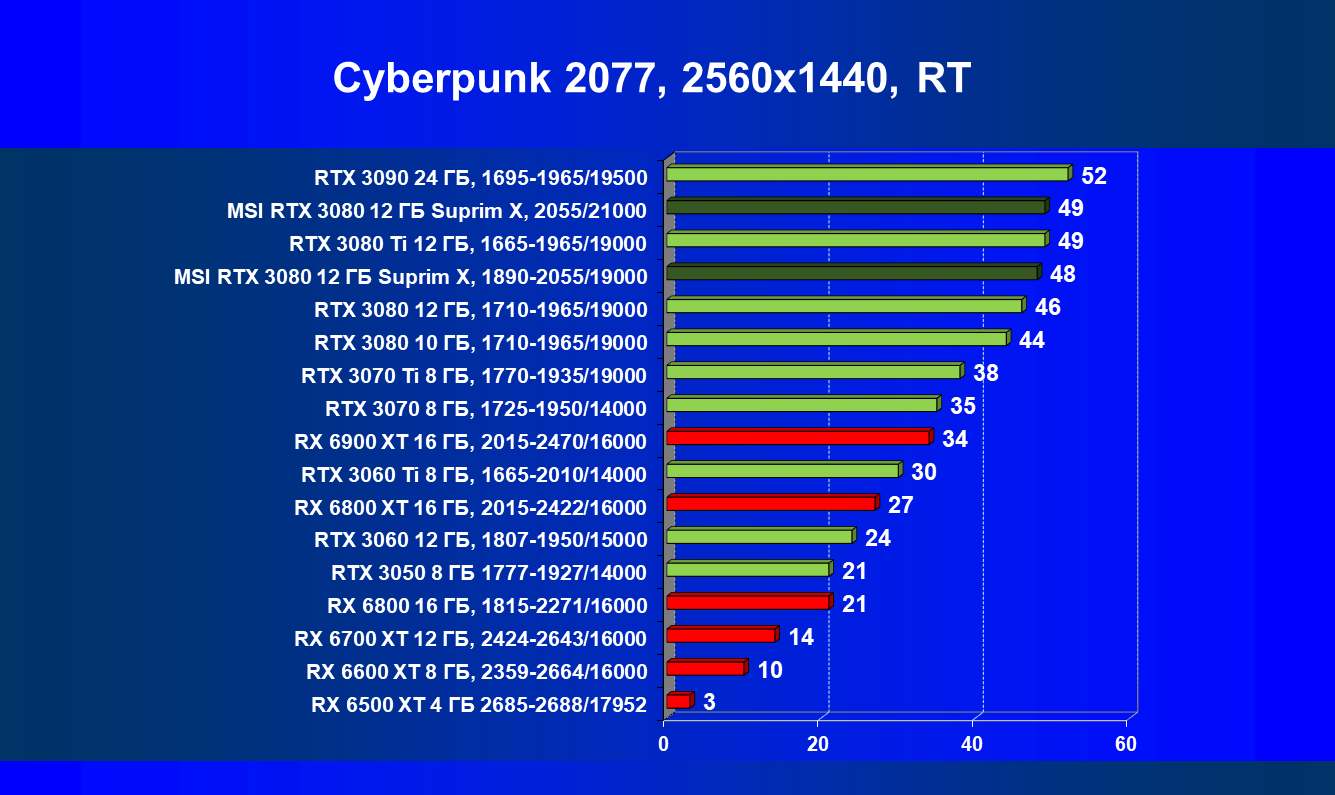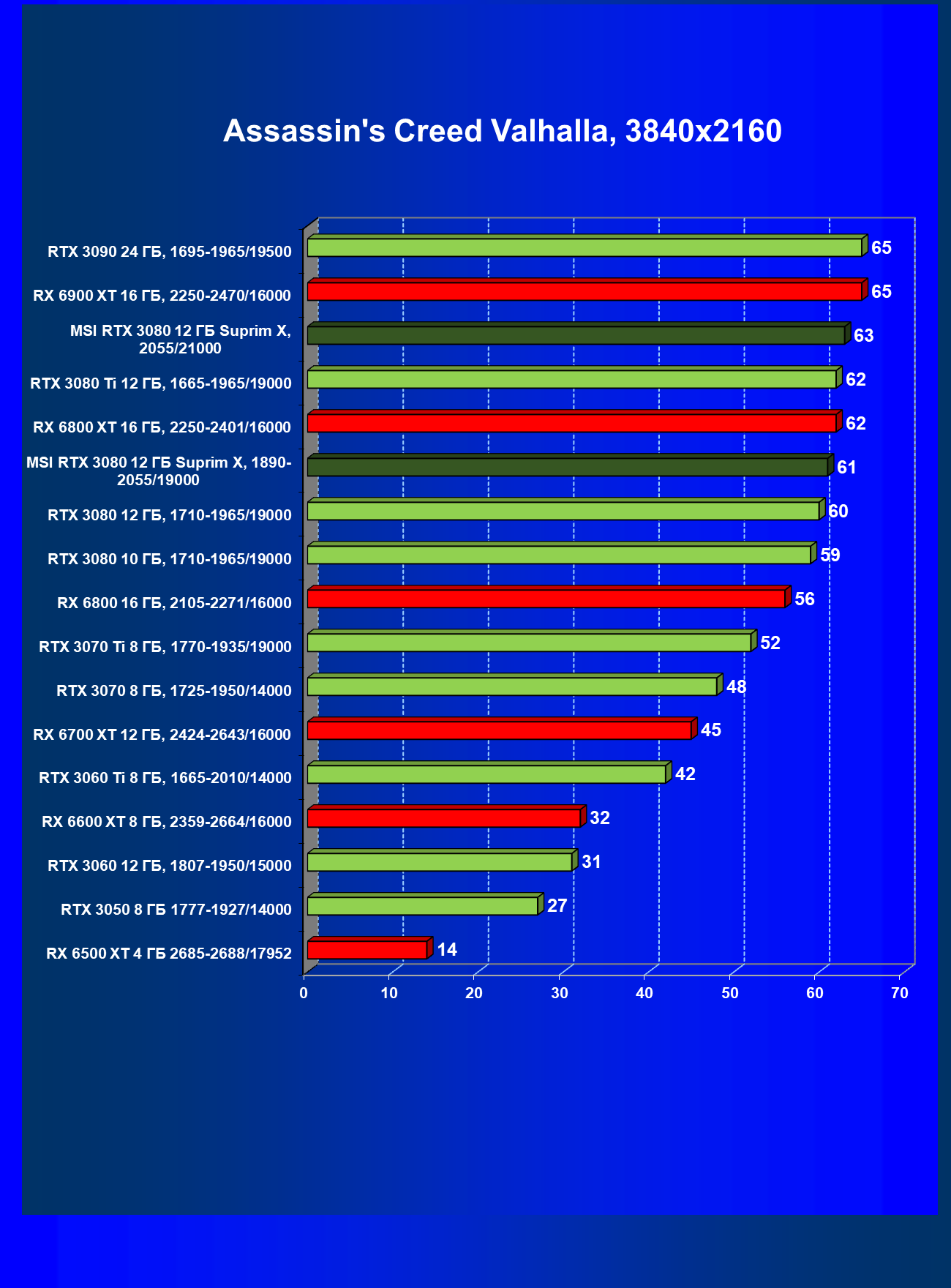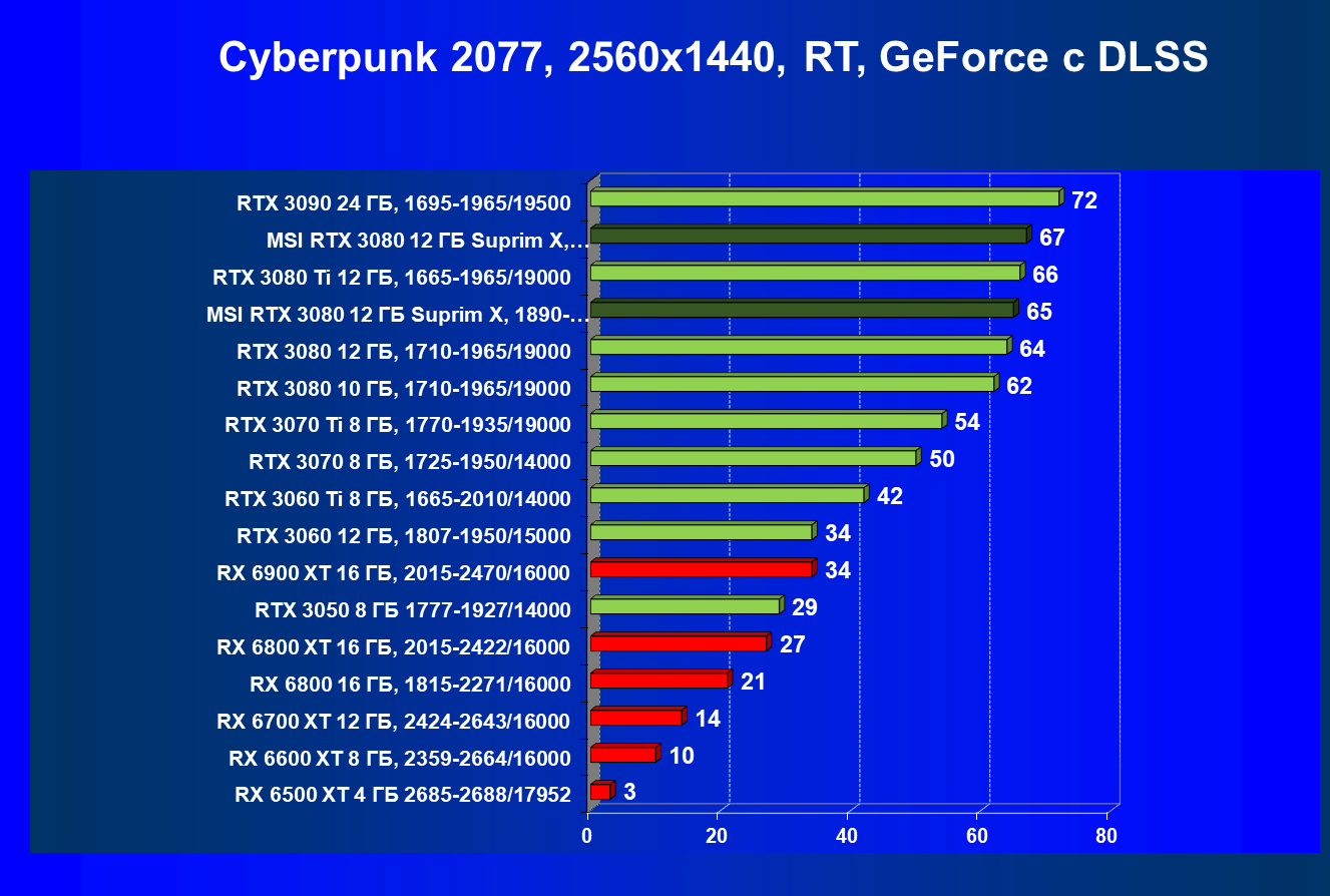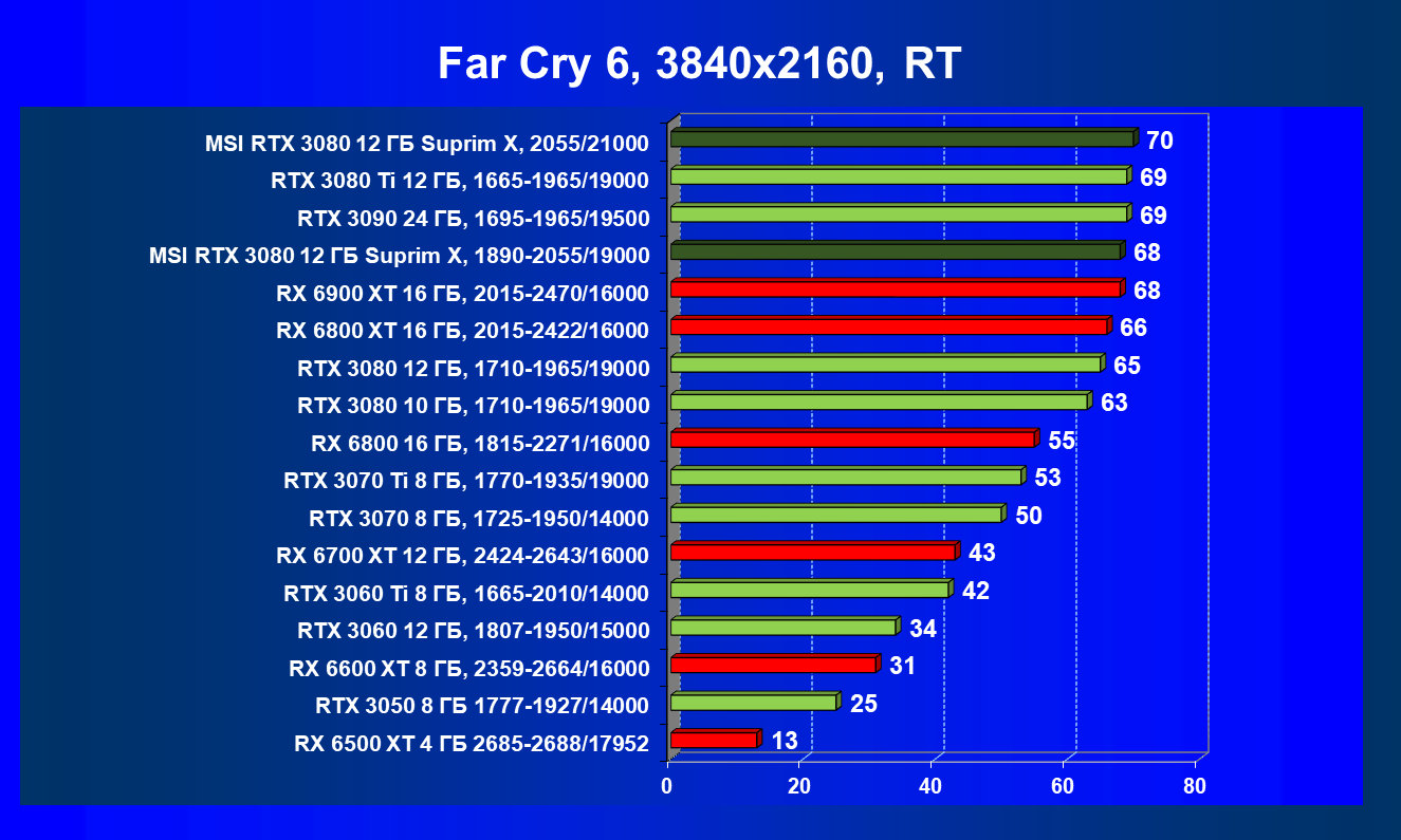 | 07 | MSI RTX 3080 12 ГБ Suprim X, разгон до 2055/21000 | 64 | 1048 | 164 000 |