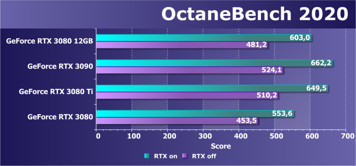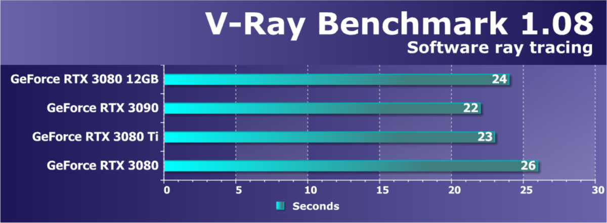 Новая модификация GeForce RTX 3080 отлично подходит для таких задач, так как она имеет 12 ГБ быстрой GDDR6X-памяти на борту, что на 20% больше, чем у обычной RTX 3080 — это дает возможность увеличить разрешение текстур, сложность 3D-сцен и т. д. Больший объем видеопамяти позволяет работать с большим массивом данных одновременно, и объем VRAM весьма важен для профессиональных применений.