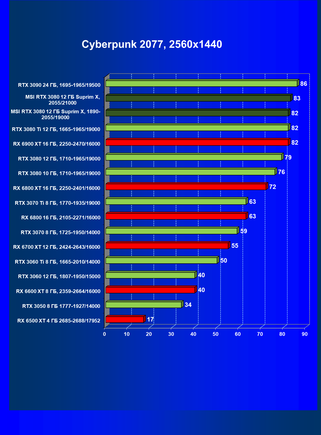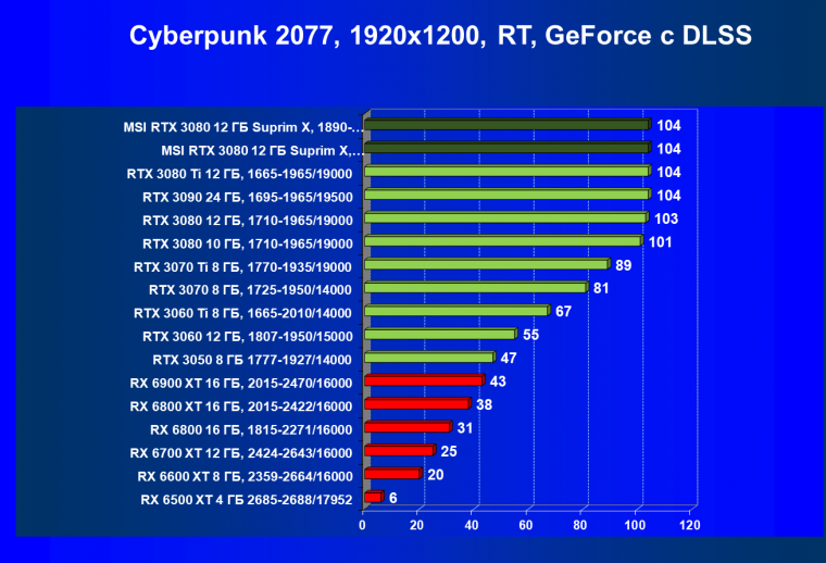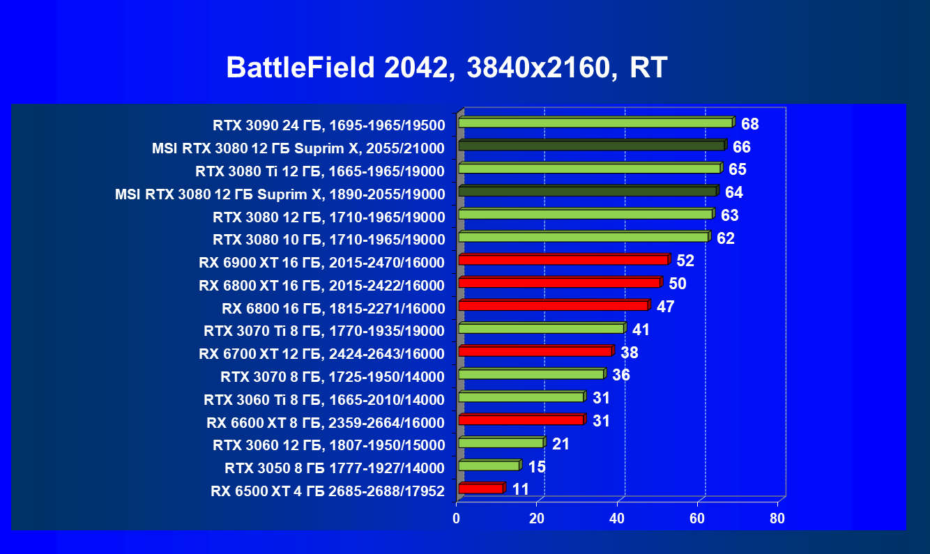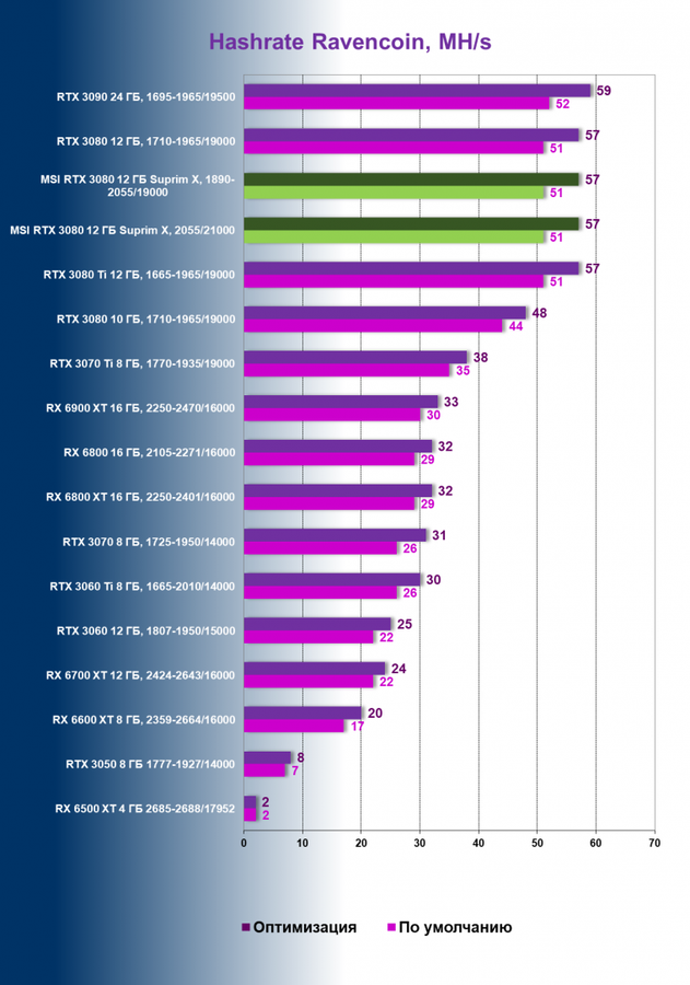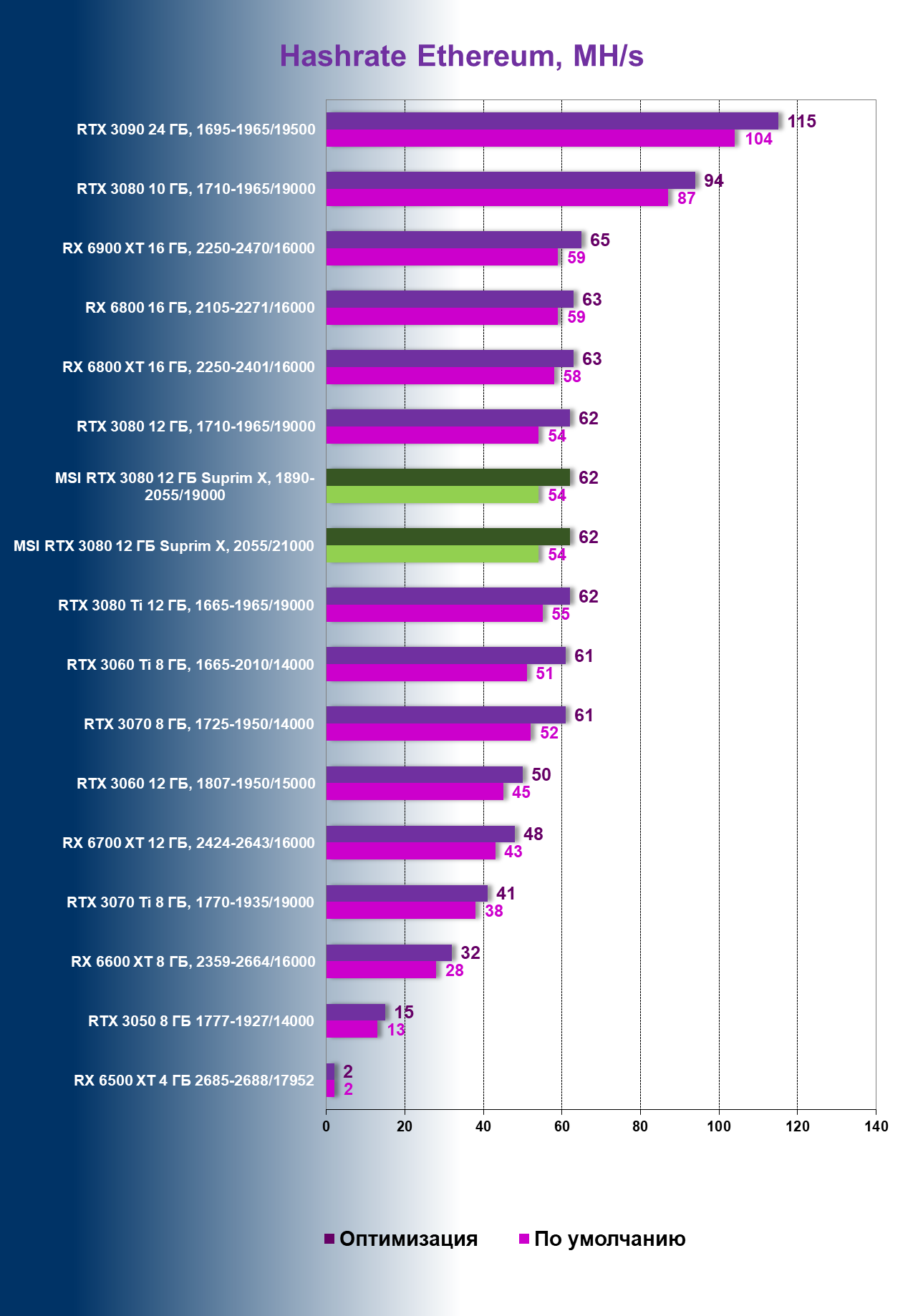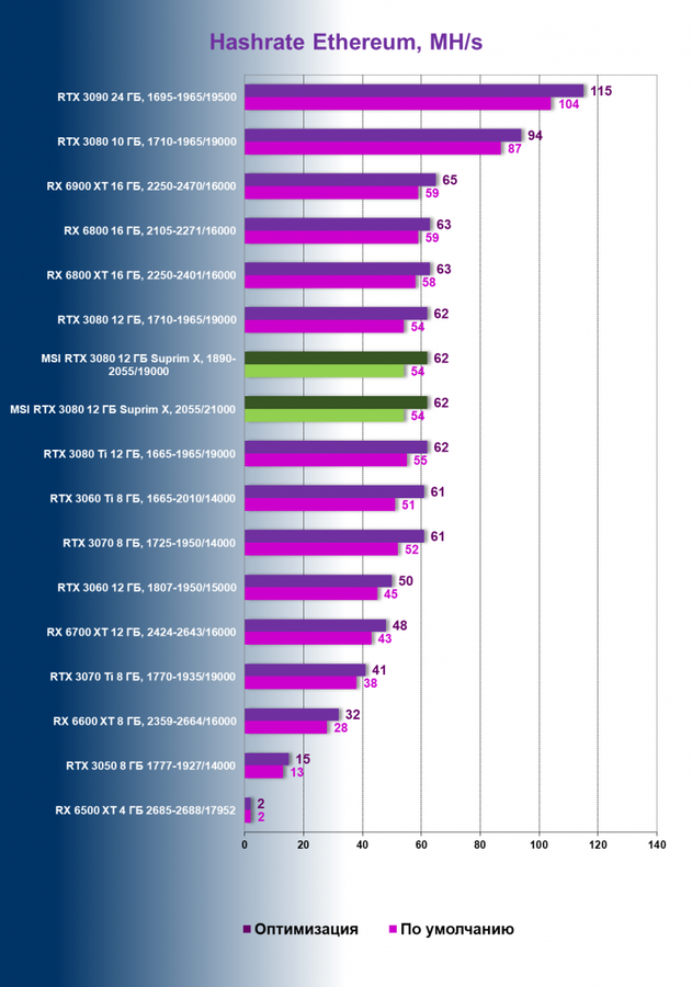 | 04 | MSI RTX 3080 12 ГБ Suprim X, 1890—2055/19000 | 800 | 49 | 164 000 |