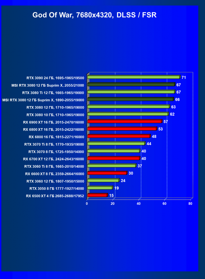 Сегодня нормально поиграть в таком разрешении можно только на самых флагманских и дорогих видеокартах уровня RTX 3090/3080 Ti/3080, а также RX 6900 XT/6800 XT, да и то только в пару игр — God of War и Far Cry 6, где FSR хоть как-то компенсирует потери производительности от включения трассировки лучей, потому что в остальных играх даже RX 6900 ХТ в 8К демонстрирует неудовлетворительную играбельность.