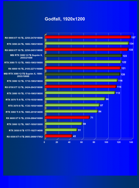 | 07 | RX 6900 XT 16 ГБ, 2250—2470/16000 | 660 | 47 | 139 000 |