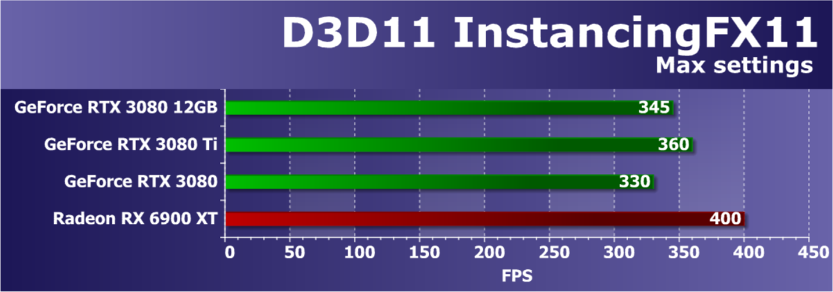 На 384-битную шину можно было поставить 6, 12 или 24 ГБ, и последний вариант используется только топовой картой, так что на эту карту поставили 12 ГБ. Это больше, чем у обычной RTX 3080, но меньше, чем 16 ГБ у конкурента, хотя вряд ли это может вызвать какие-то реальные проблемы для новинки. Даже в 4K-разрешении при максимальных настройках игры до сих пор реально крайне редко требуют большего объема памяти, чем 8 ГБ. Хотя некоторые проекты и могут занимать всю имеющуюся видеопамять, занимая ее своими ресурсами, но производительность видеокарт с меньшим объемом видеопамяти при этом обычно не страдает.
