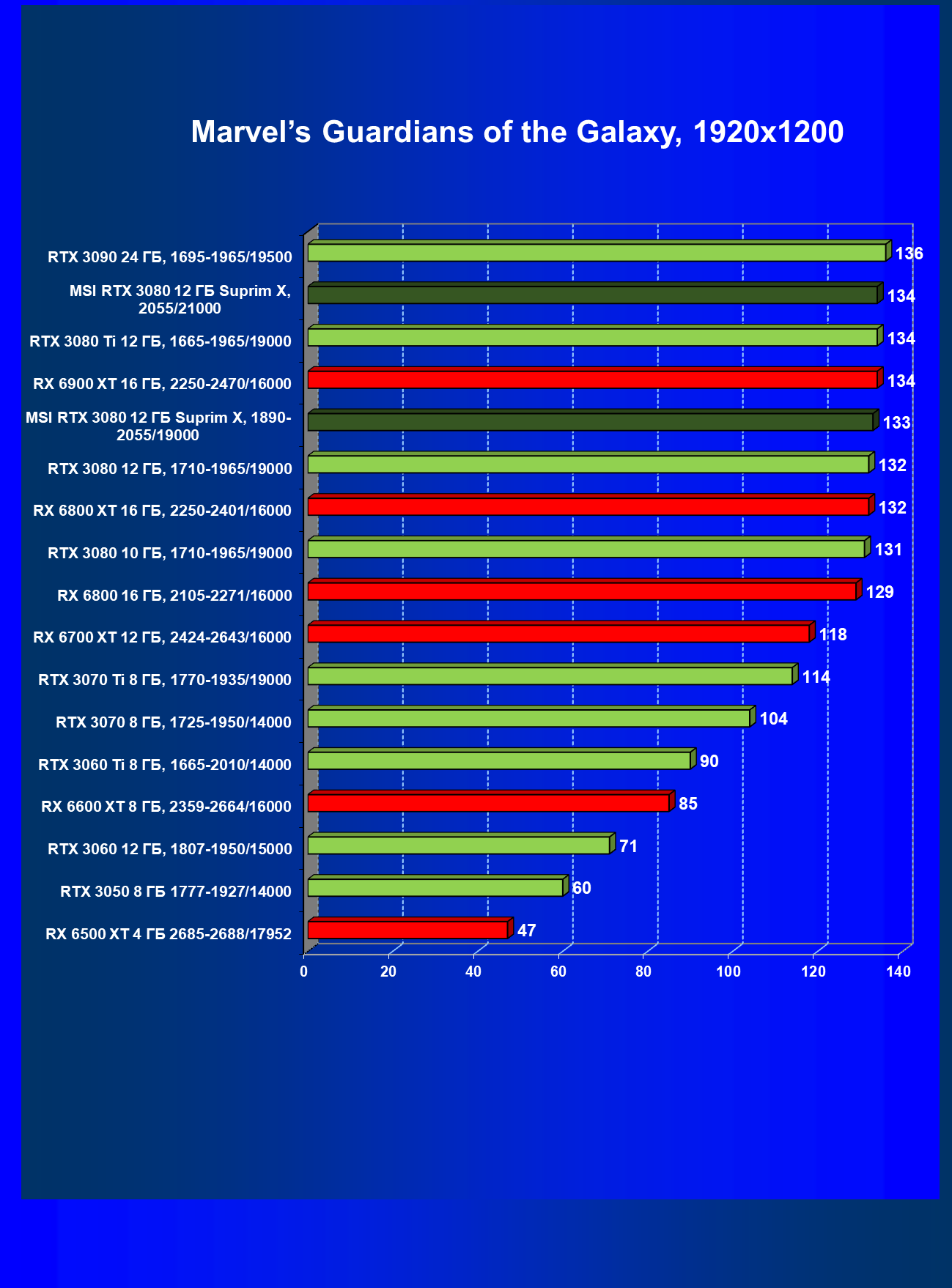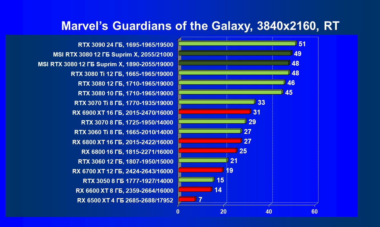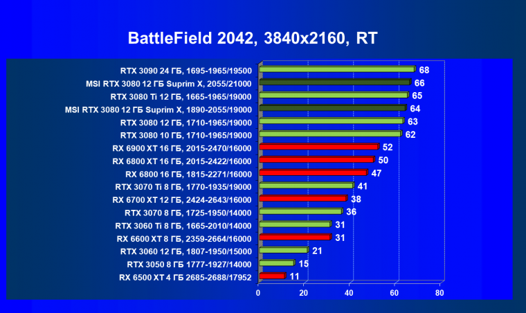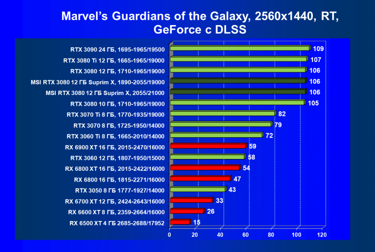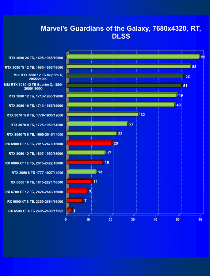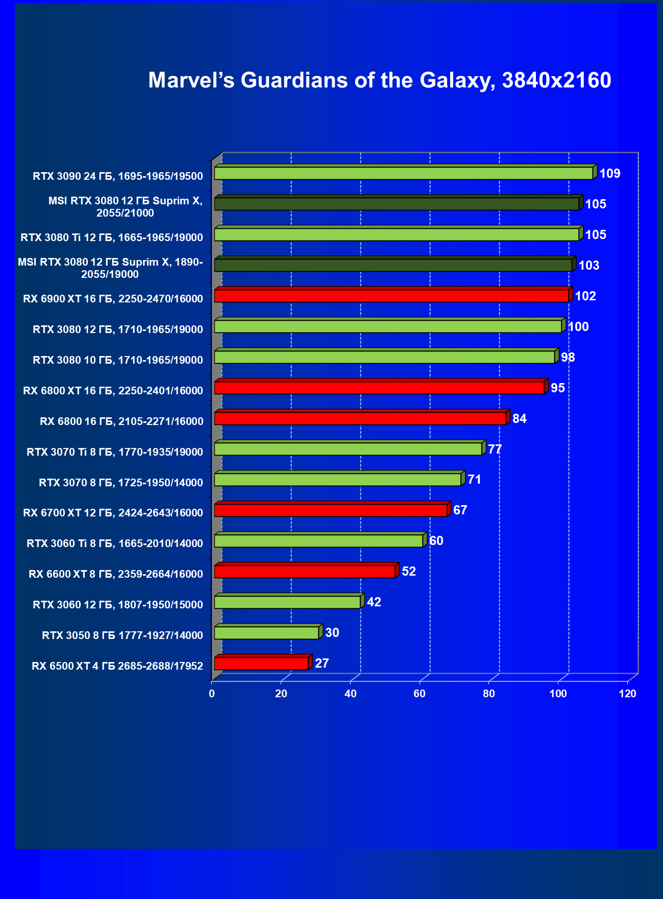 | 09 | MSI RTX 3080 12 ГБ Suprim X, 1890—2055/19000 | 63 | 1027 | 164 000 |