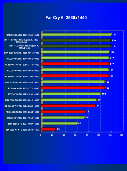 | 05 | MSI RTX 3080 12 ГБ Suprim X, 1890—2055/19000 | 370 | 23 | 164 000 |