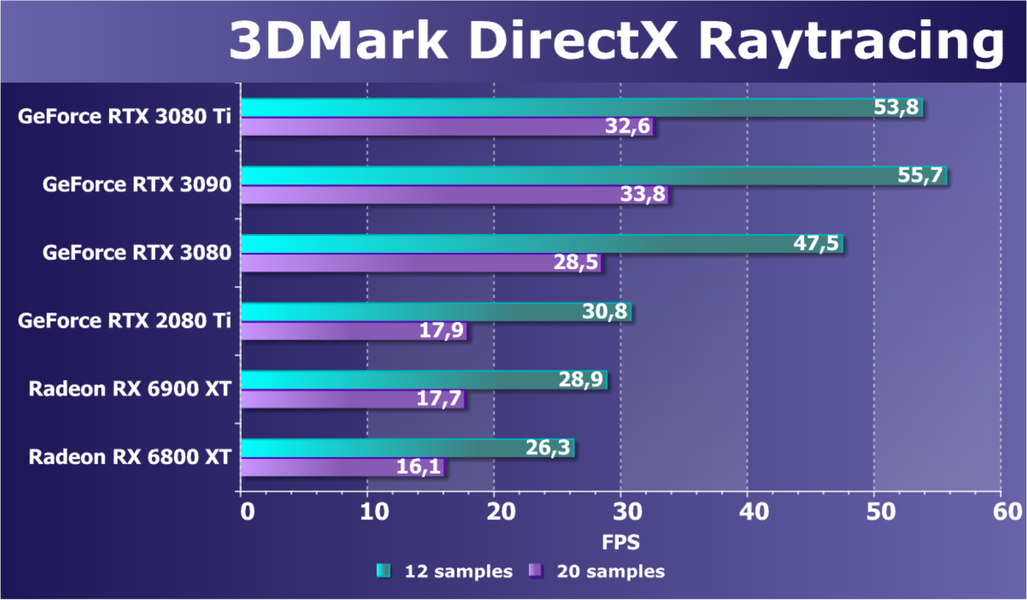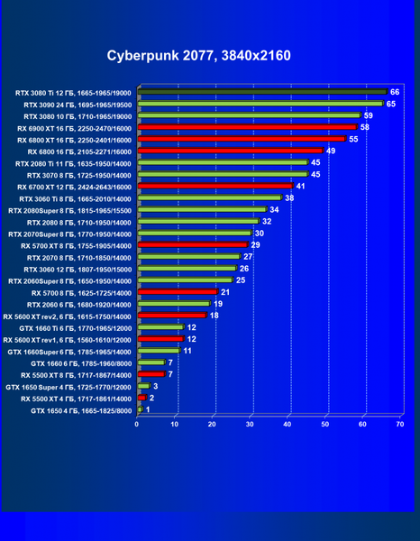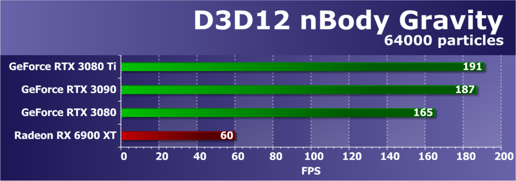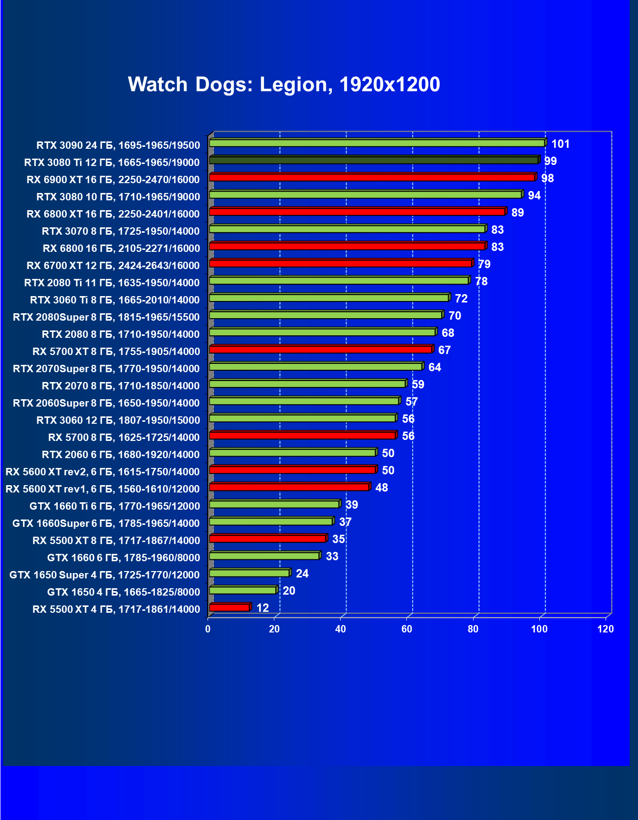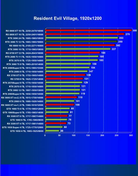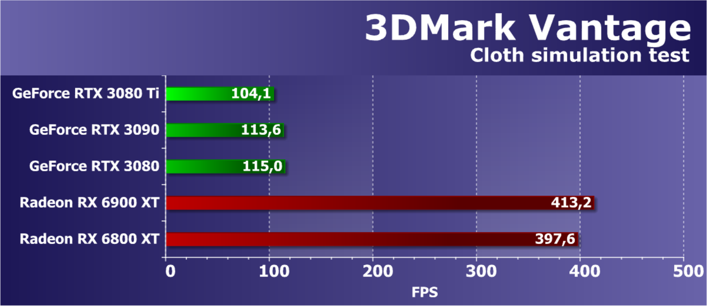 Зато у решений AMD больше видеопамяти — 16 ГБ против 12 ГБ, хотя в играх в обозримом будущем это вряд ли как-то скажется. В отличие от профессионального применения для создания цифрового контента, в которых каждый гигабайт на счету. Но у Nvidia там есть более мощная RTX 3090 с 24 ГБ памяти, лучше подходящая для профессиональных задач. Ну а 12 ГБ в случае RTX 3080 Ti можно считать оптимальным объемом видеопамяти, с учетом ширины шины.