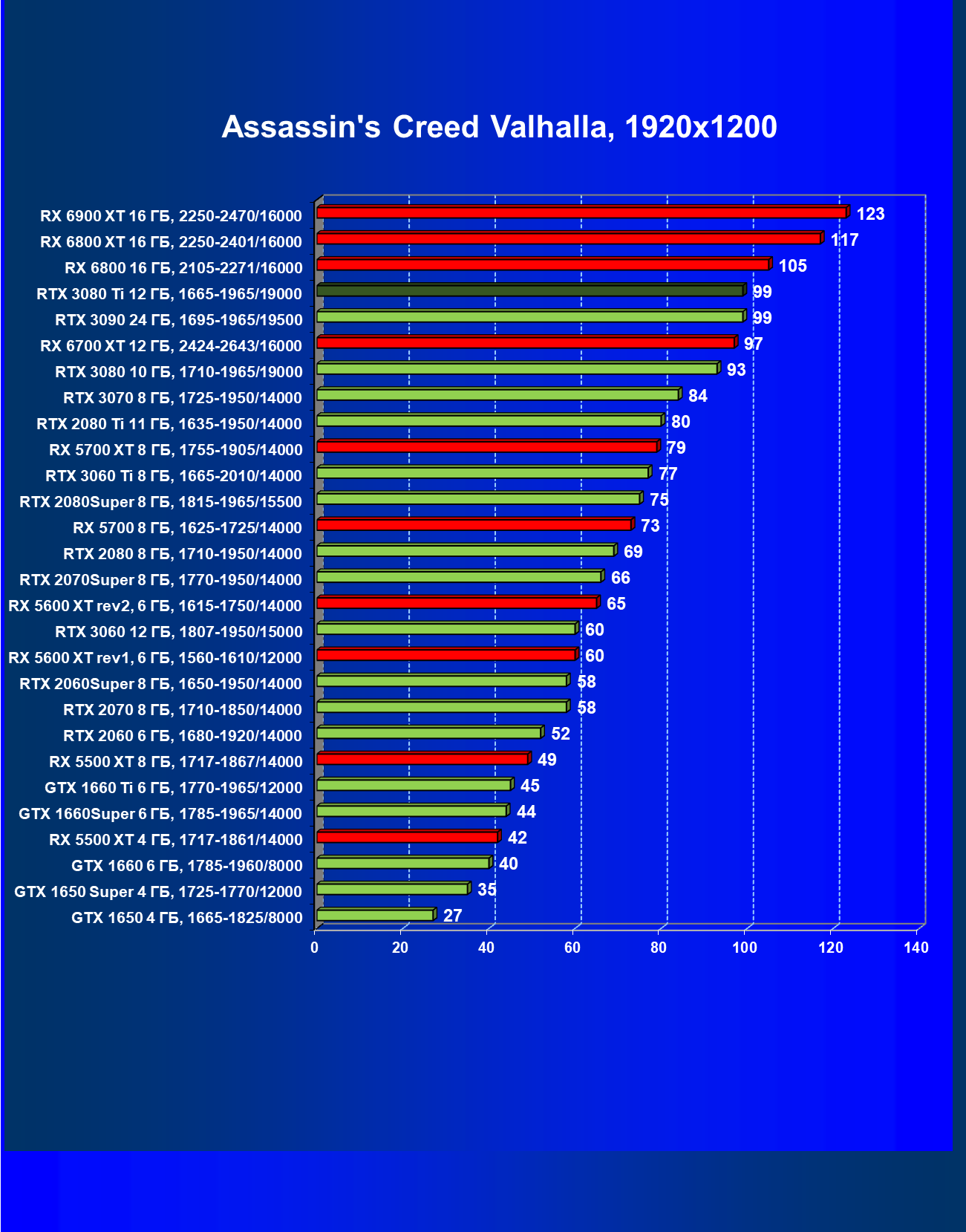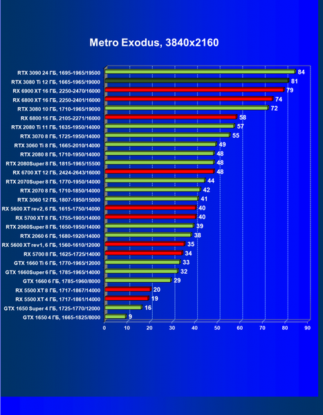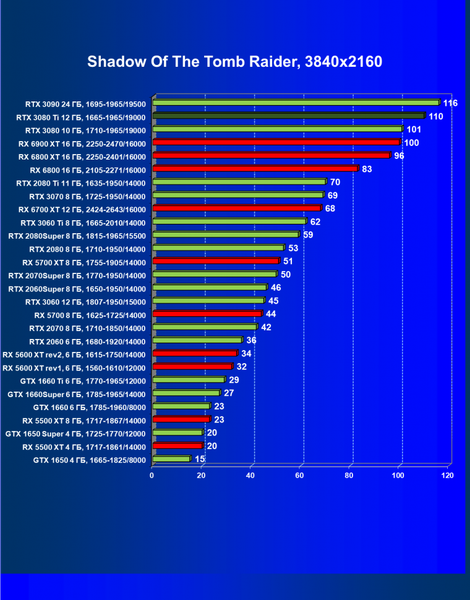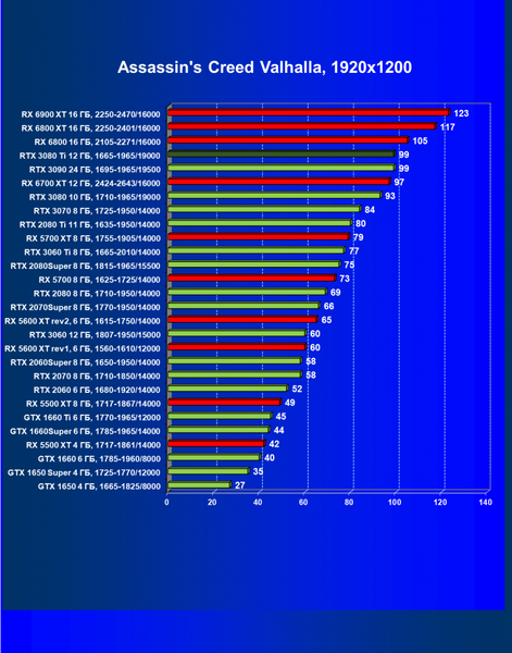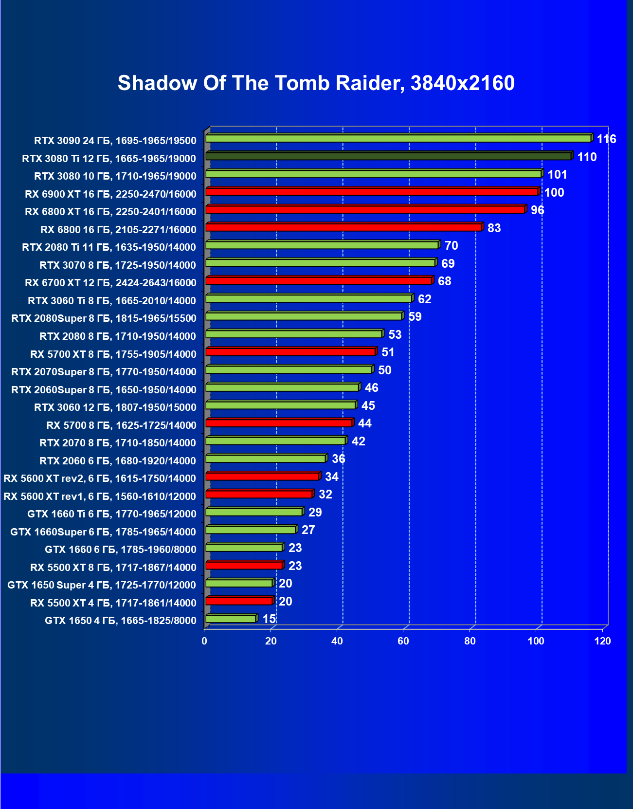 | 05 | RX 6800 XT 16 ГБ, 2015—2422/16000 | 16 | 248 | 160 000 |