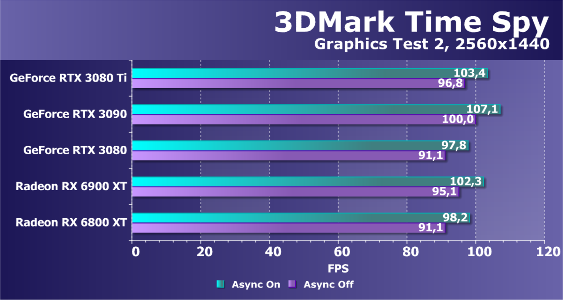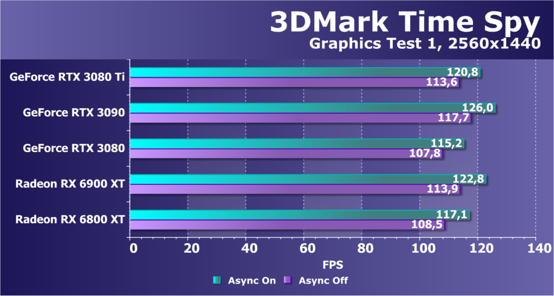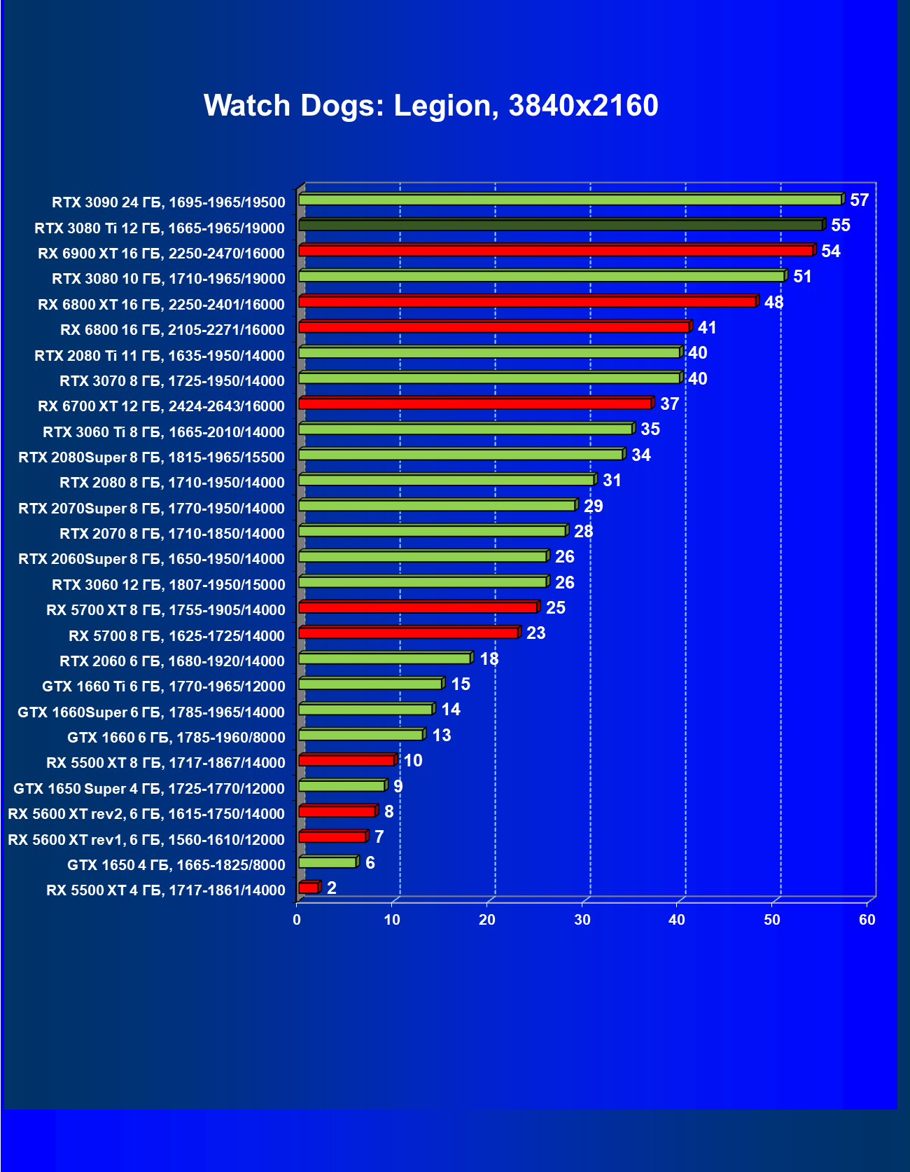 В целом RTX 3080 Ti лишь чуть-чуть не догнал самого старшего собрата RTX 3090 (хотя в ряде игр и разрешений они шли наравне), прилично оторвавшись от RTX 3080. Поэтому логично уже будет сравнить RTX 3080 Ti с RX 6900 XT, а не с 6800 XT.