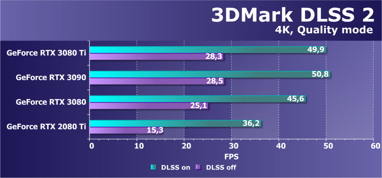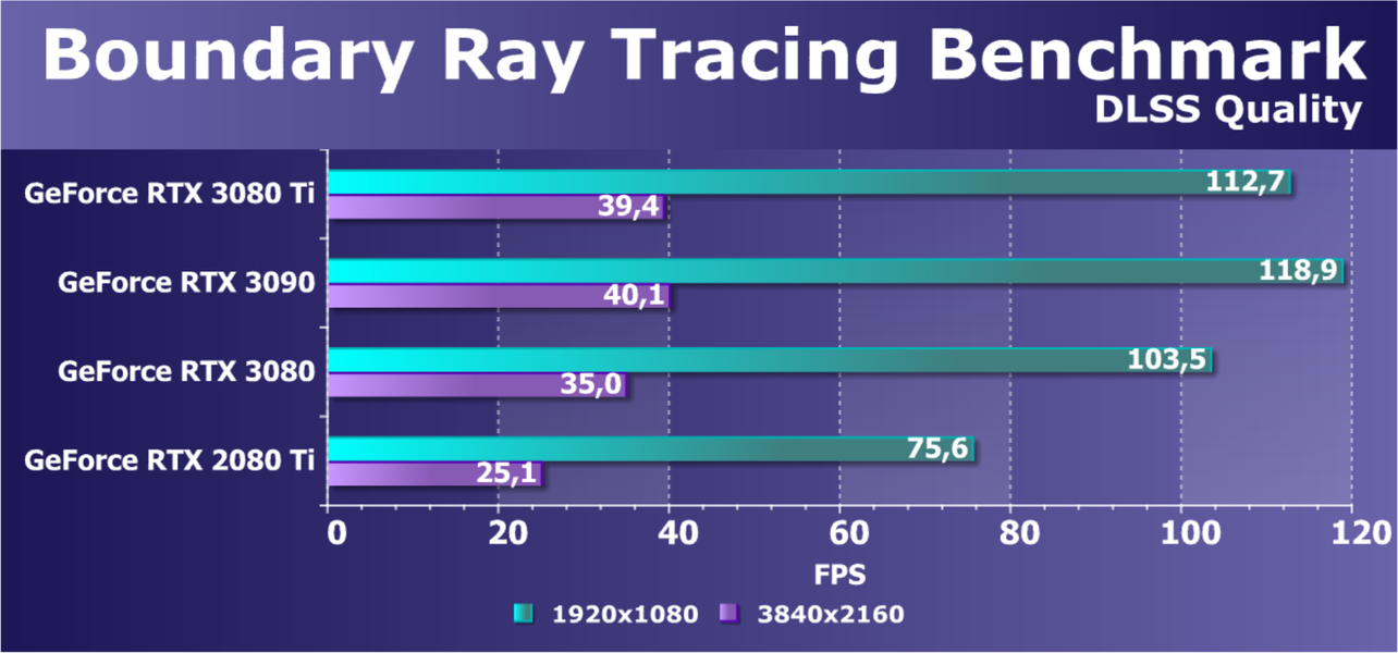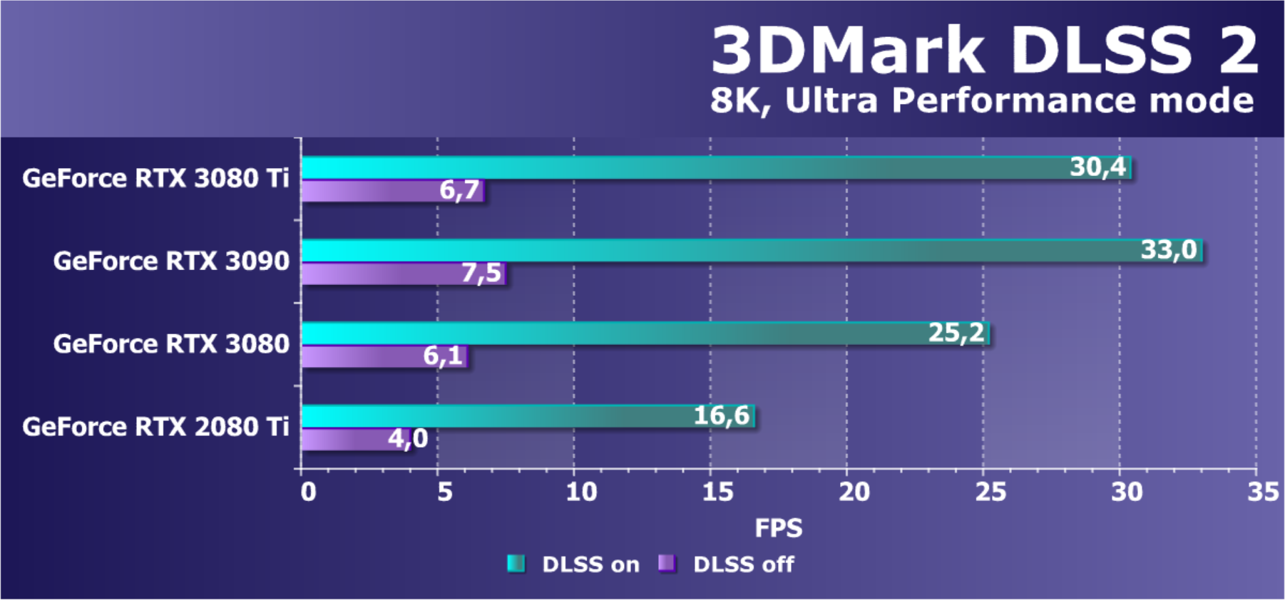 Учитывая, что RTX 3080 Ti по производительности находится прямо рядом с RTX 3090, а последний мы уже исследовали в работе в разрешении 8К, то логично было бы протестировать и новинку в этом супер-огромном разрешении, разумеется, с применением DLSS и трассировки лучей.