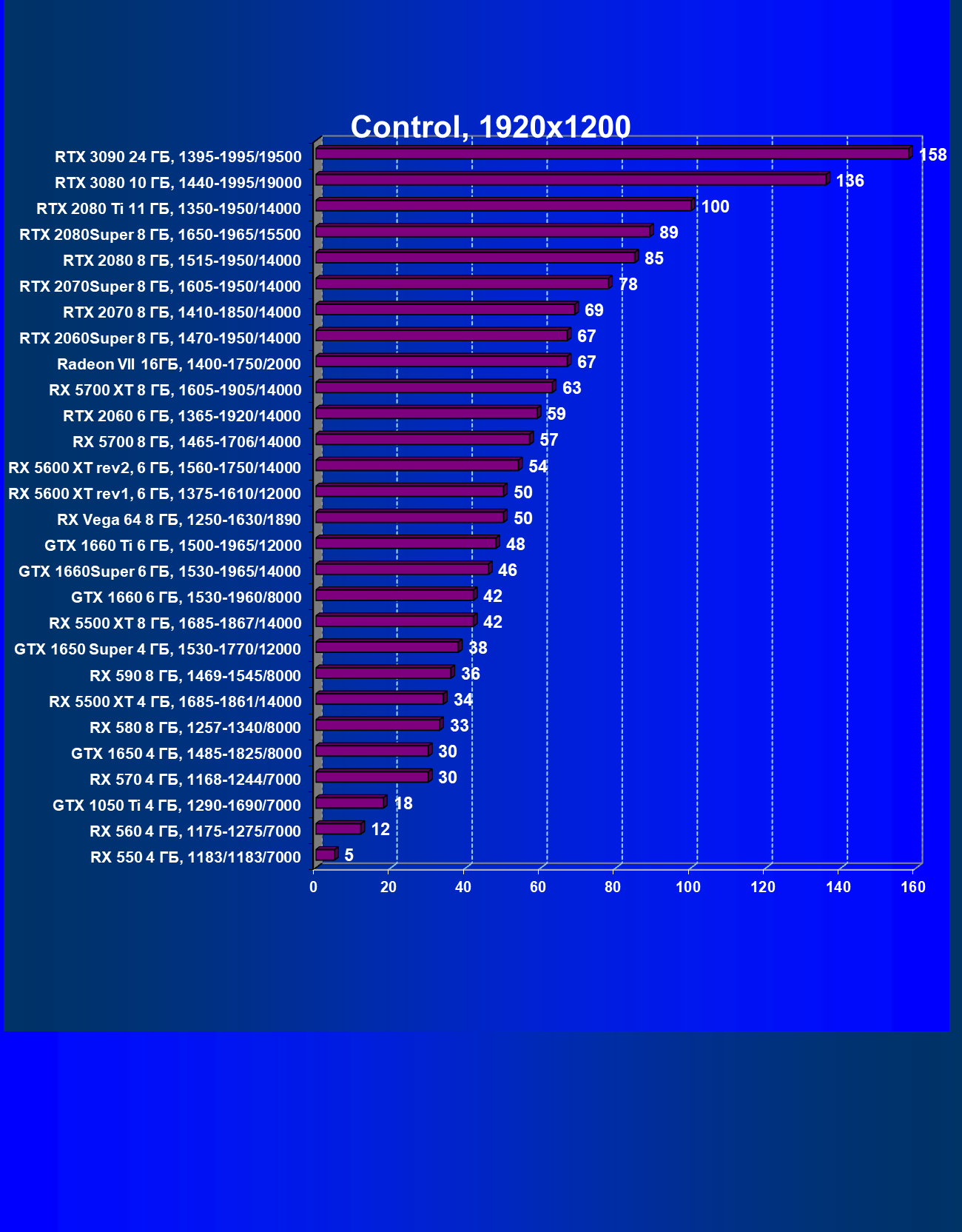 Полагаем, что комментарии излишни, и снова приветствуем нового лидера 3D-графики игрового класса! Но все же отметим, что GeForce RTX 3090 позиционируется не только для игр, поэтому чисто игровой флагман на сегодня — GeForce RTX 3080.