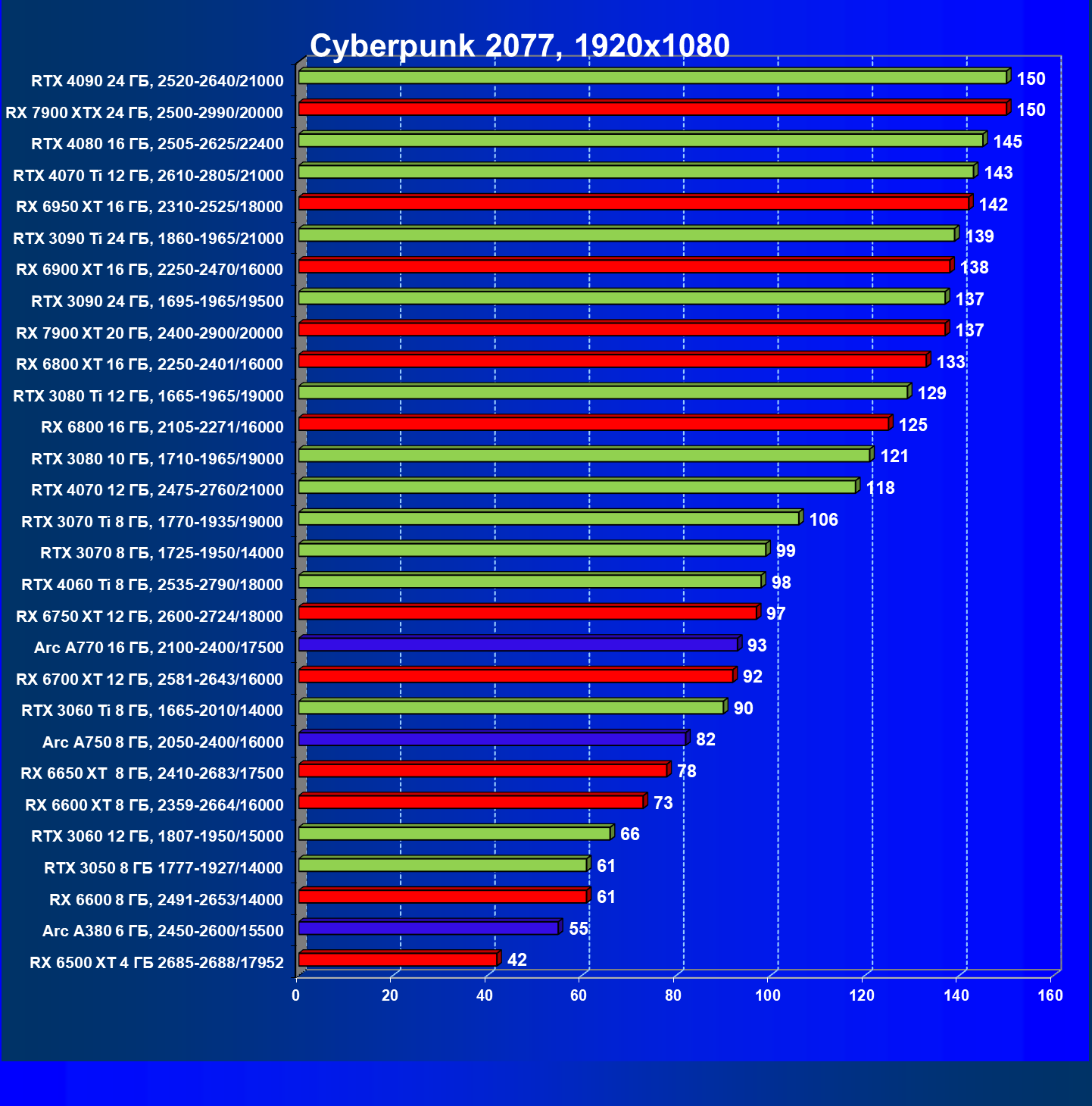| 02 | Arc A770 16 ГБ, 2100—2400/17500 | 159 | 447 | 28 000 |