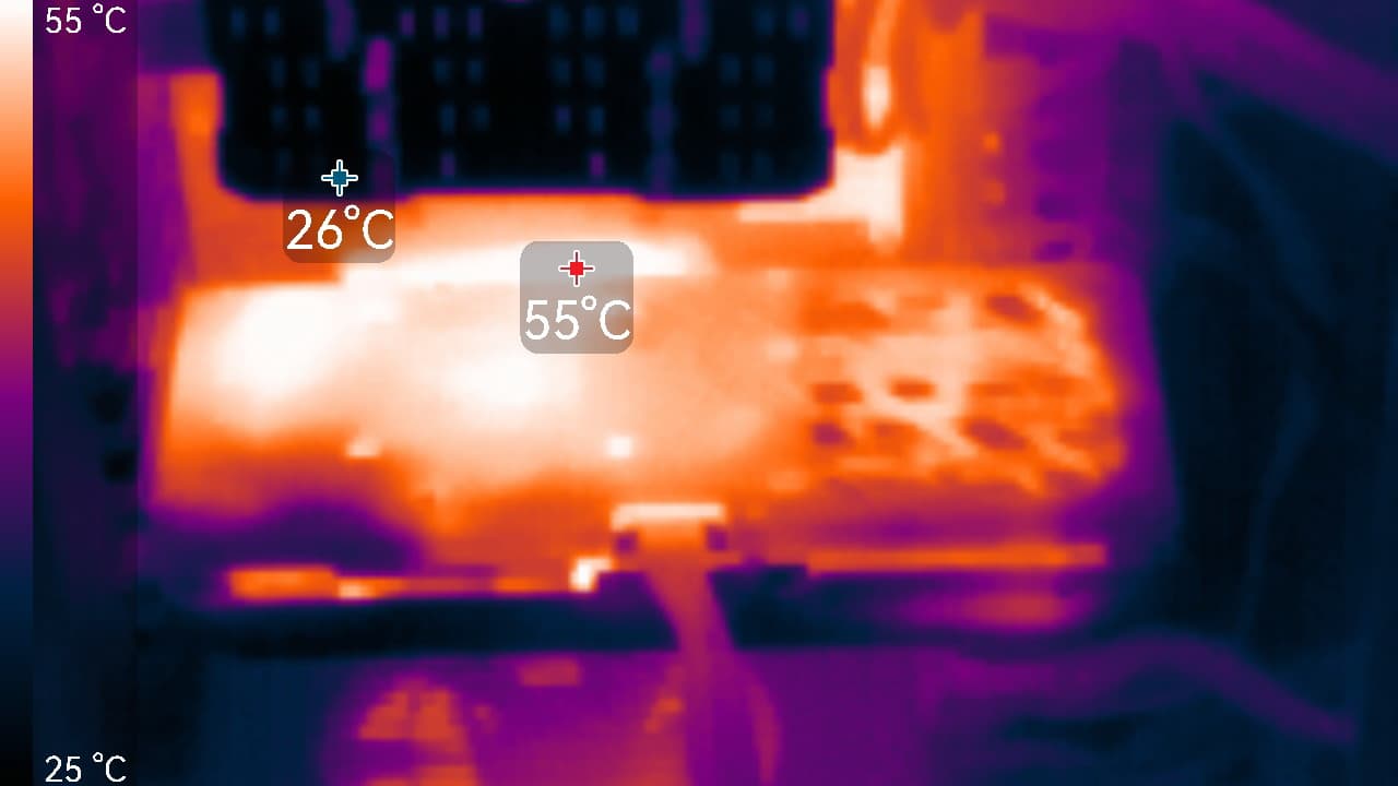 Конкретная протестированная карта Palit GeForce RTX 4070 Dual OC (12 ГБ) имеет плюс в виде сравнительно компактных габаритов: двухслотового размещения в системном блоке, и при этом СО не шумная (в плане шума воздушных потоков). Впрочем, сегодня трехслотовое размещение видеокарт уже стало стандартным, и даже 4-слотовые карты всё менее похожи на экзотику, так что владельцы стандартных корпусов вряд ли прочувствуют это преимущество. Заметим, что для карты Palit можно самостоятельно модифицировать кожух СО с помощью фирменной концепции «Maker» — с последующей печатью на 3D-принтере.