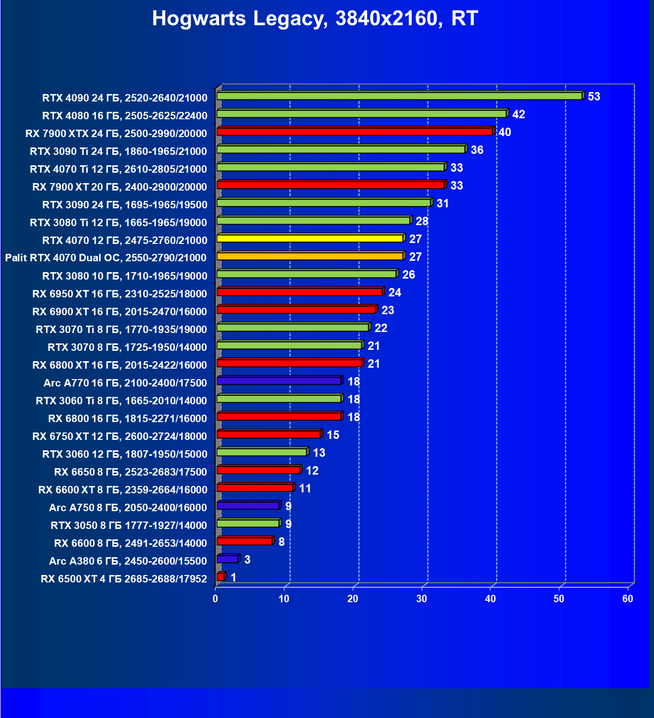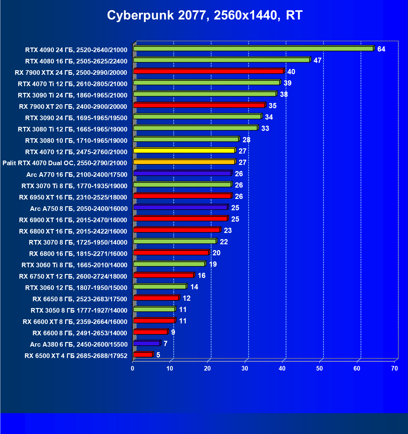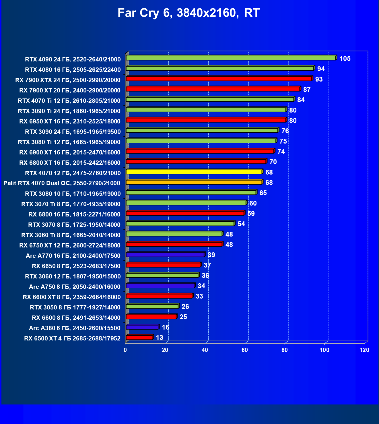 | 12 | Palit RTX 4070 Dual OC, 2550—2790/21000 | 453 | 69 | 70 000 |