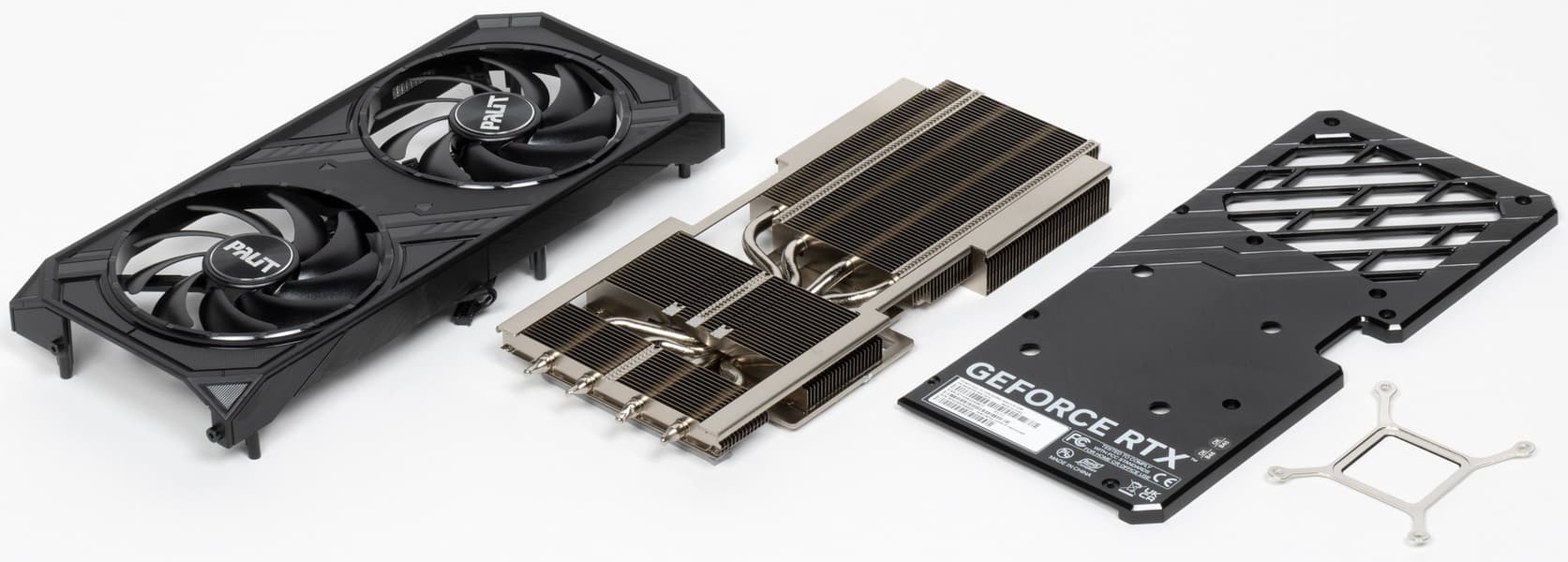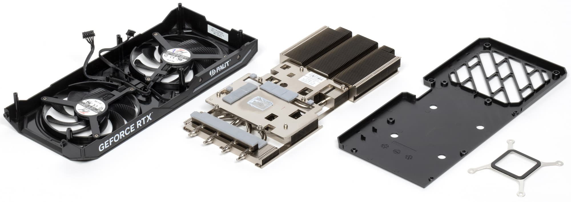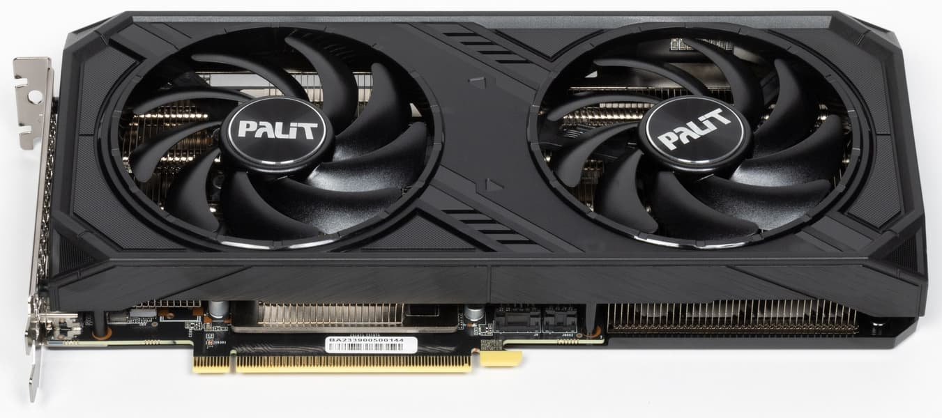 При этом переход с GeForce RTX 4070 Ti на GeForce RTX 4070 у компании Palit почему-то вызвал резкое желание упростить всё до предела: комплект поставки — никакой, кулер чрезвычайно упрощен, при вращении вентиляторы издают звенящий призвук. Спасает только то, что без нагрузки вентиляторы останавливаются, поэтому при обычной работе ПК данная карта тихая. И заметим, что имеется вероятность того, что этот призвук есть только у отдельных экземпляров, включая наш. Проверить на других таких же картах не представлялось возможным.