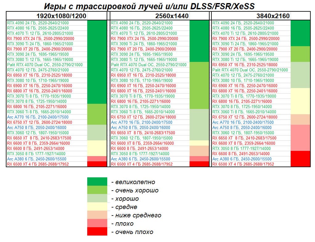 - Вариант рейтинга полезности с включением RT/DLSS/FSR/XeSS