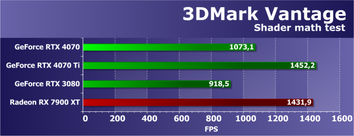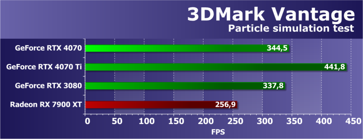 Прямого конкурента для новинки компания AMD еще не выпустила, поэтому нам пришлось взять младший вариант в виде Radeon RX 7900 XT, который стоит дороже и является соперником для RTX 4070 Ti. Также мы сравним новинку и с еще одним условным конкурентом в виде Radeon RX 6950 XT — как самым быстрым вариантом на основе предыдущей архитектуры. На деле же рассматриваемой видеокарте Nvidia придется конкурировать с будущими решениями на основе RDNA3, когда они выйдут.