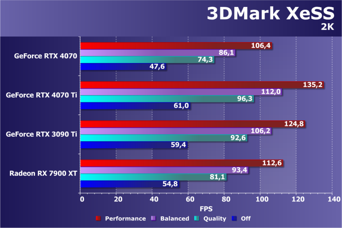 Из более-менее новых бенчмарков мы начали использовать несколько дополнительных тестов для измерения производительности трассировки лучей и, а также технологий масштабирования разрешения и увеличения производительности: DLSS, FSR и XeSS. В качестве полусинтетических тестов у нас также используется набор подтестов из довольно популярного пакета 3DMark: Time Spy, Port Royal, DX Raytracing, Speed Way и др. А вот примеры приложений DirectX 11 и 12, входящие в различные SDK, пришлось убрать — последнее время они всё чаще давали некорректные результаты.