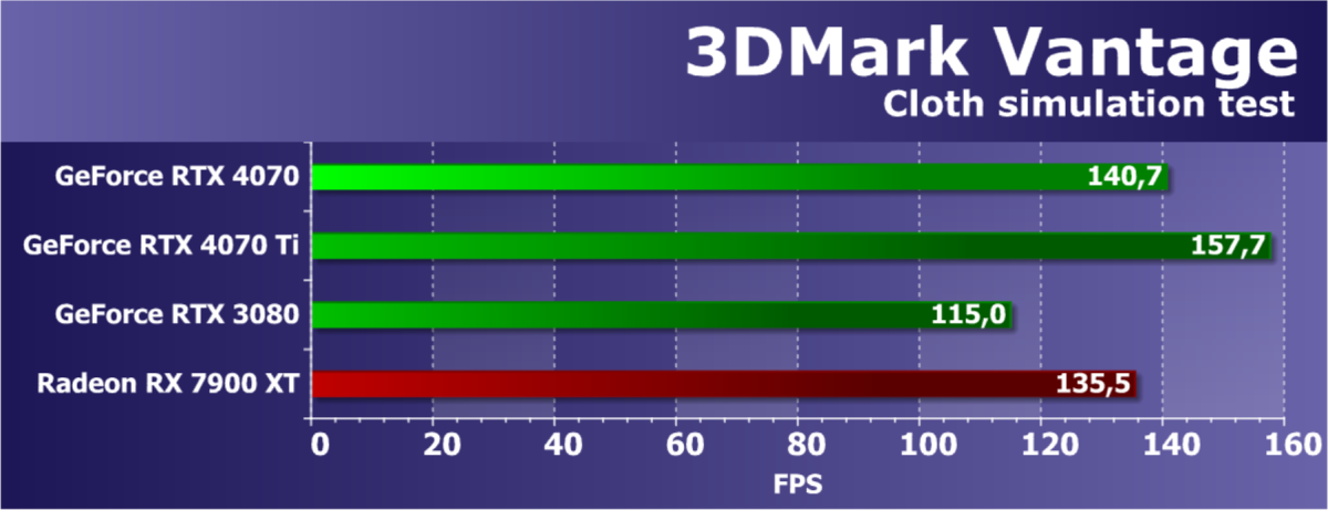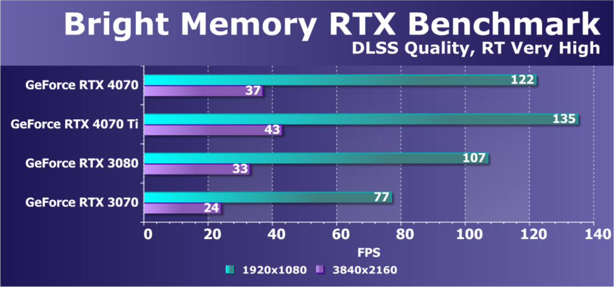 С объемом видеопамяти у новинки всё понятно: из-за ширины шины был ровно такой же выбор, как у RTX 4070 Ti — или 12 ГБ, или 24 ГБ, и для уровня цены RTX 4070 второй вариант кажется явным перебором. А вот 12 ГБ вполне достаточны на данный момент, и наличие 20 ГБ видеопамяти у условного конкурента Radeon RX 7900 XT не скажется на результатах — по крайней мере, в уже вышедших играх и при нормальных условиях. Но всё же есть уже первые звоночки нехватки 8-10 ГБ видеопамяти, и вполне может настать время, когда и 12 ГБ может не хватать при высоких графических настройках — в плохо портированных с консолей играх с плохим менеджментом ресурсов, к примеру.