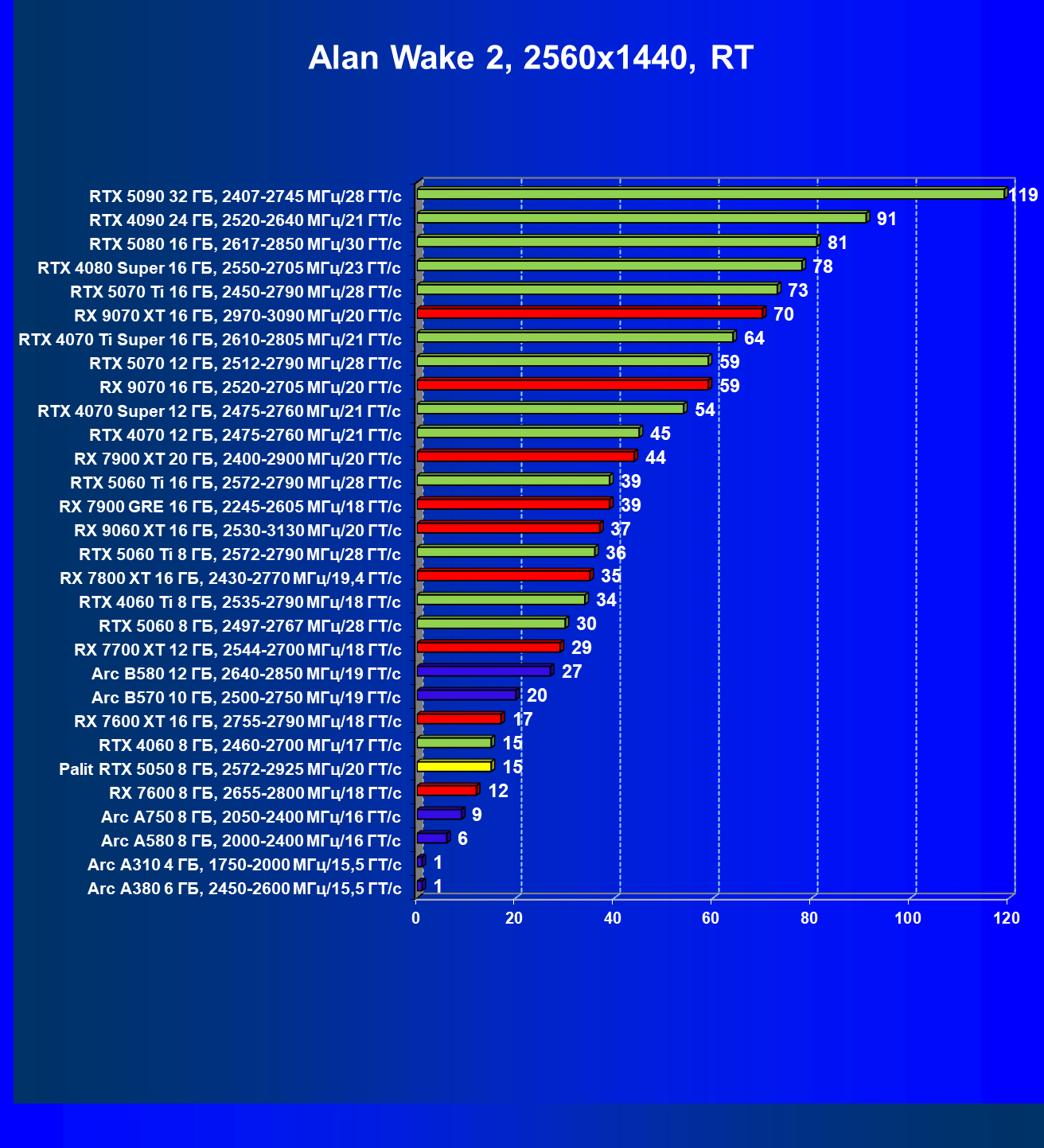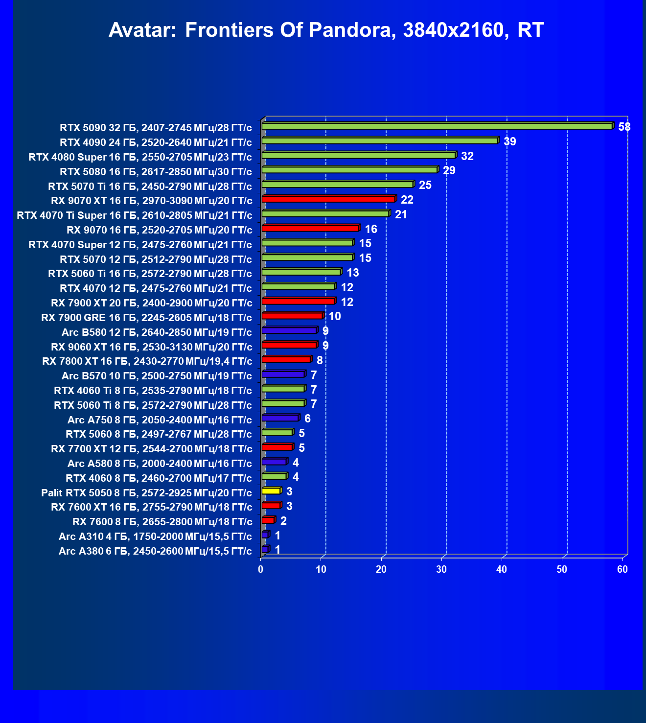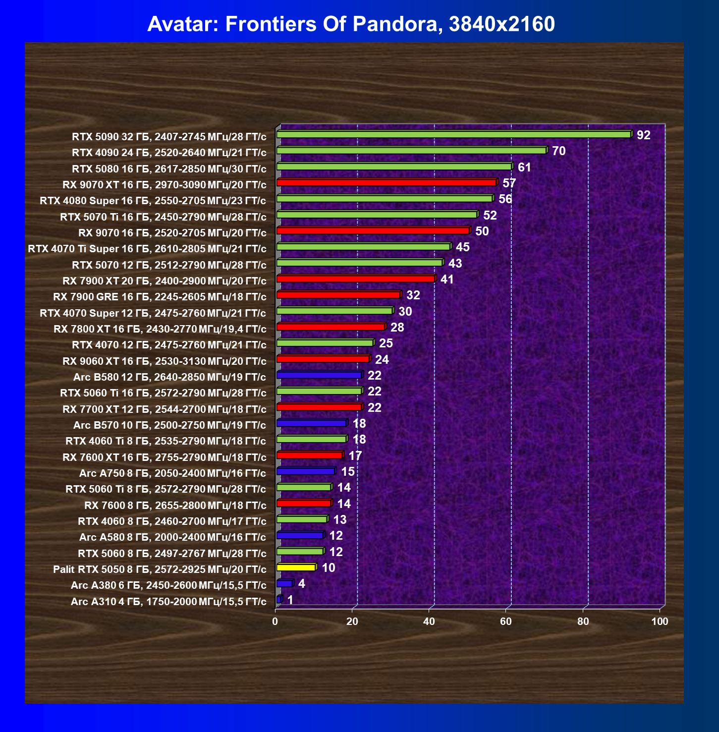 | 21 | Arc B580 12 ГБ, 2640—2850 МГц/19 ГТ/с | 513 | 166 | 31 000 |