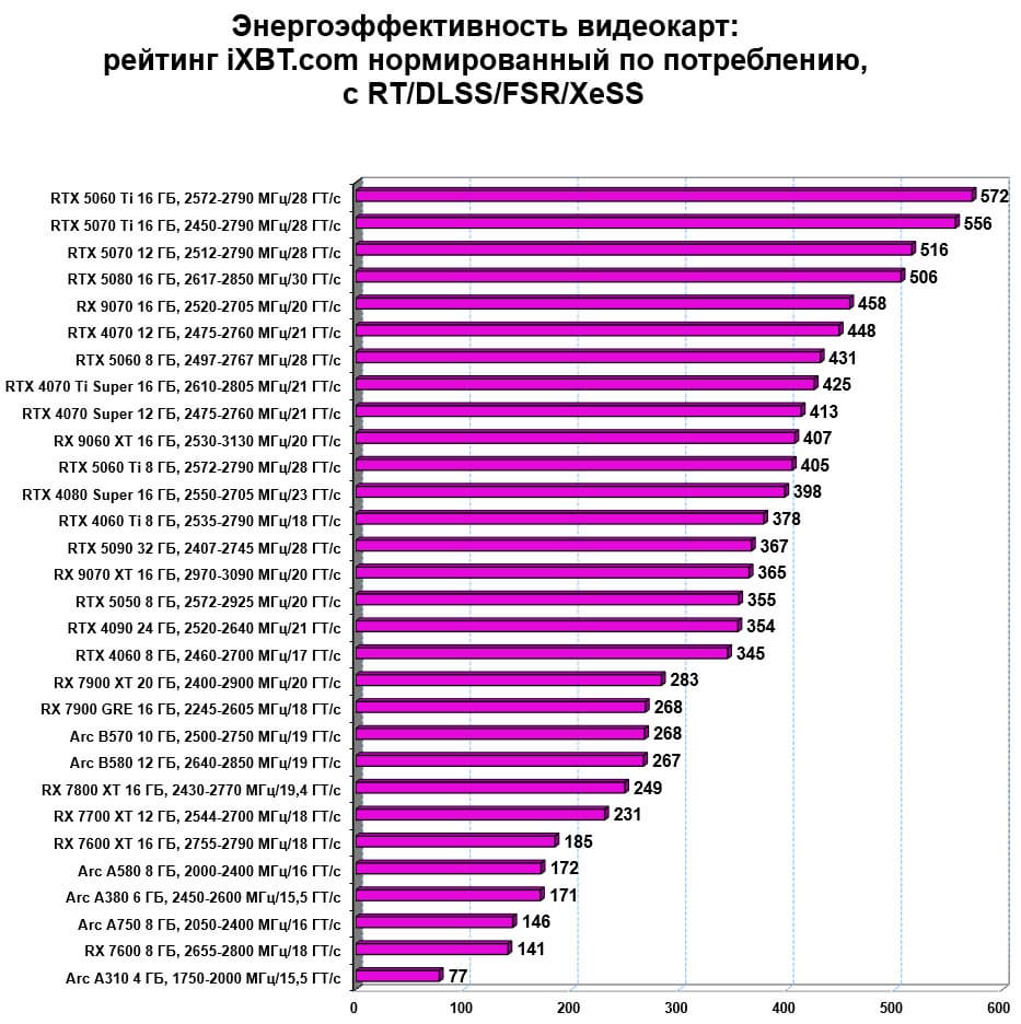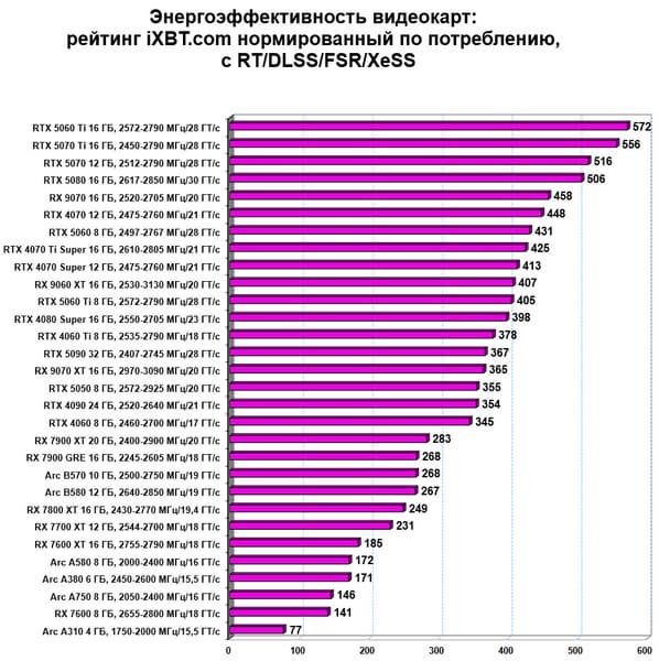 | 23 | Arc B580 12 ГБ, 2640—2850 МГц/19 ГТ/с | 911 | 294 | 31 000 |