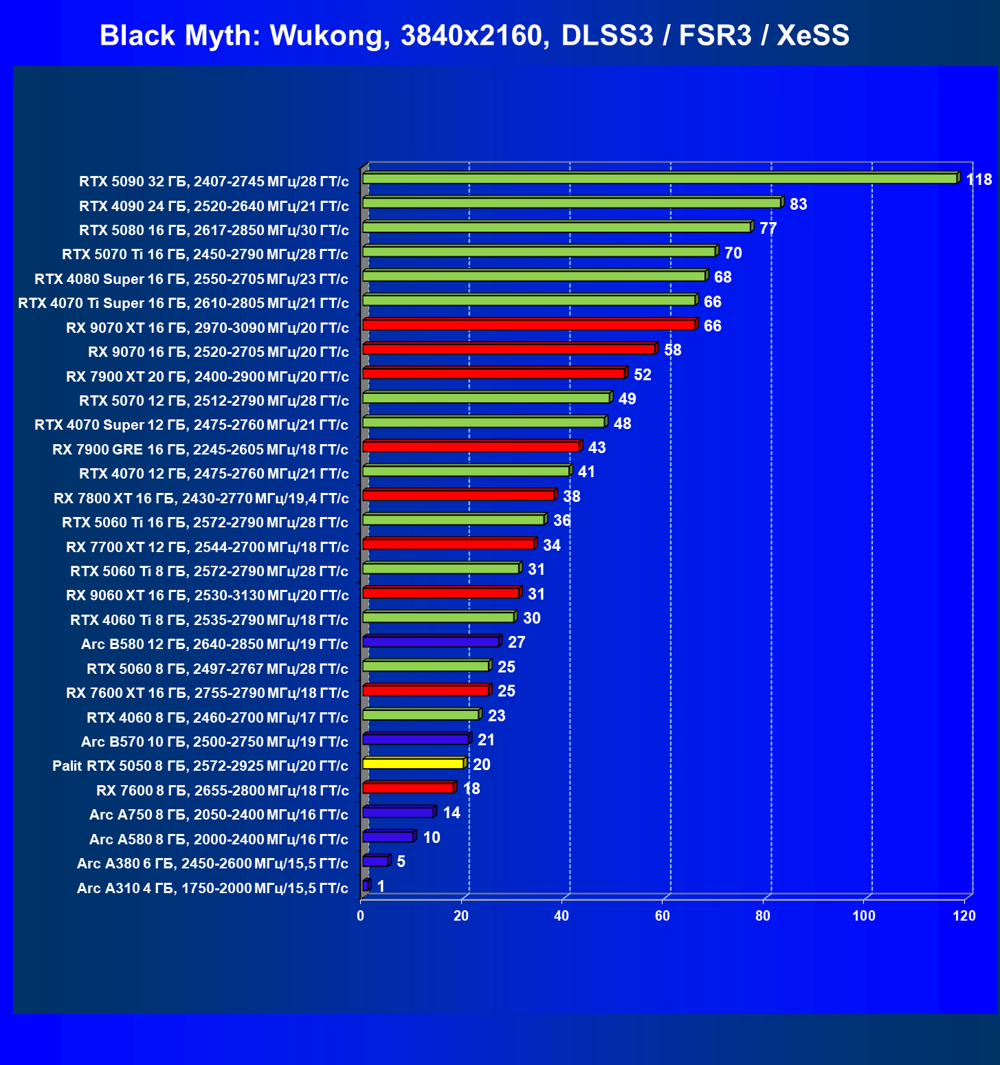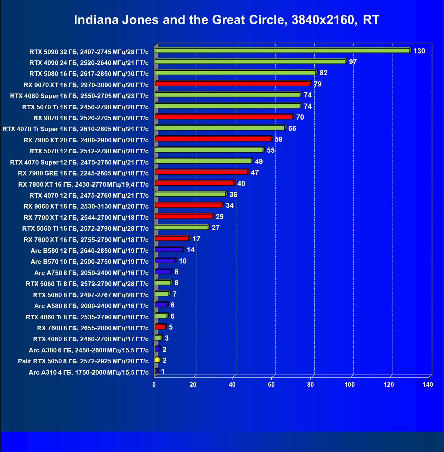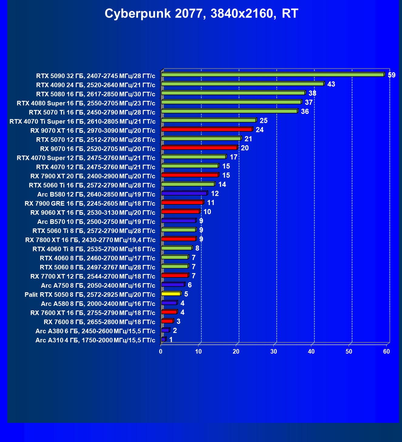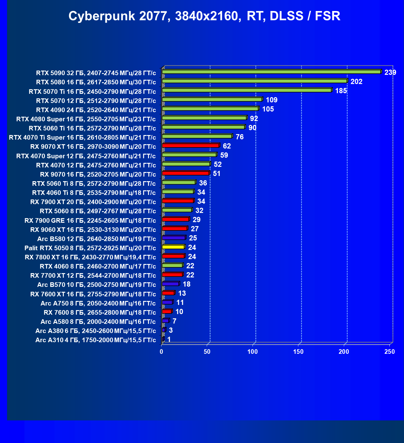 | 22 | Arc B570 10 ГБ, 2500—2750 МГц/19 ГТ/с | 453 | 151 | 30 000 |