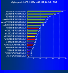 Результаты тестов со включенной аппаратной трассировкой лучей и/или DLSS/FSR/XeSS в разрешениях 1920×1080, 2560×1440 и 3840×2160