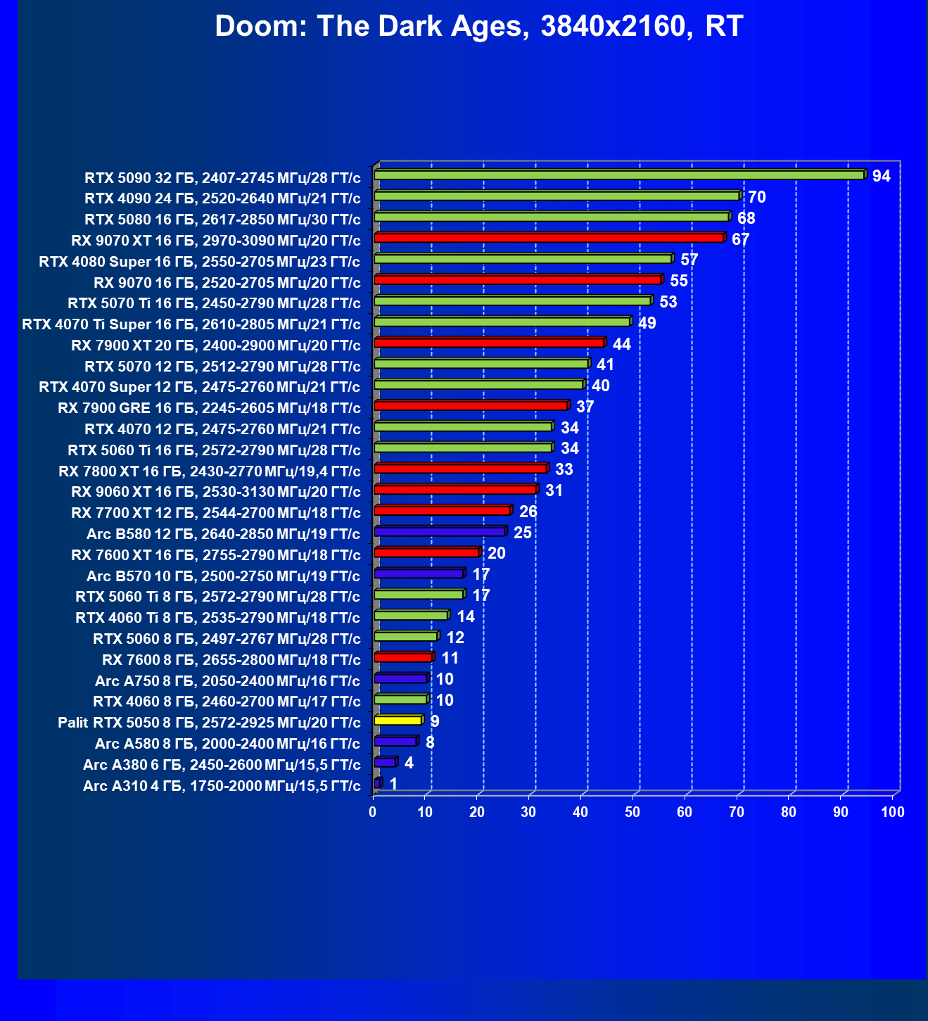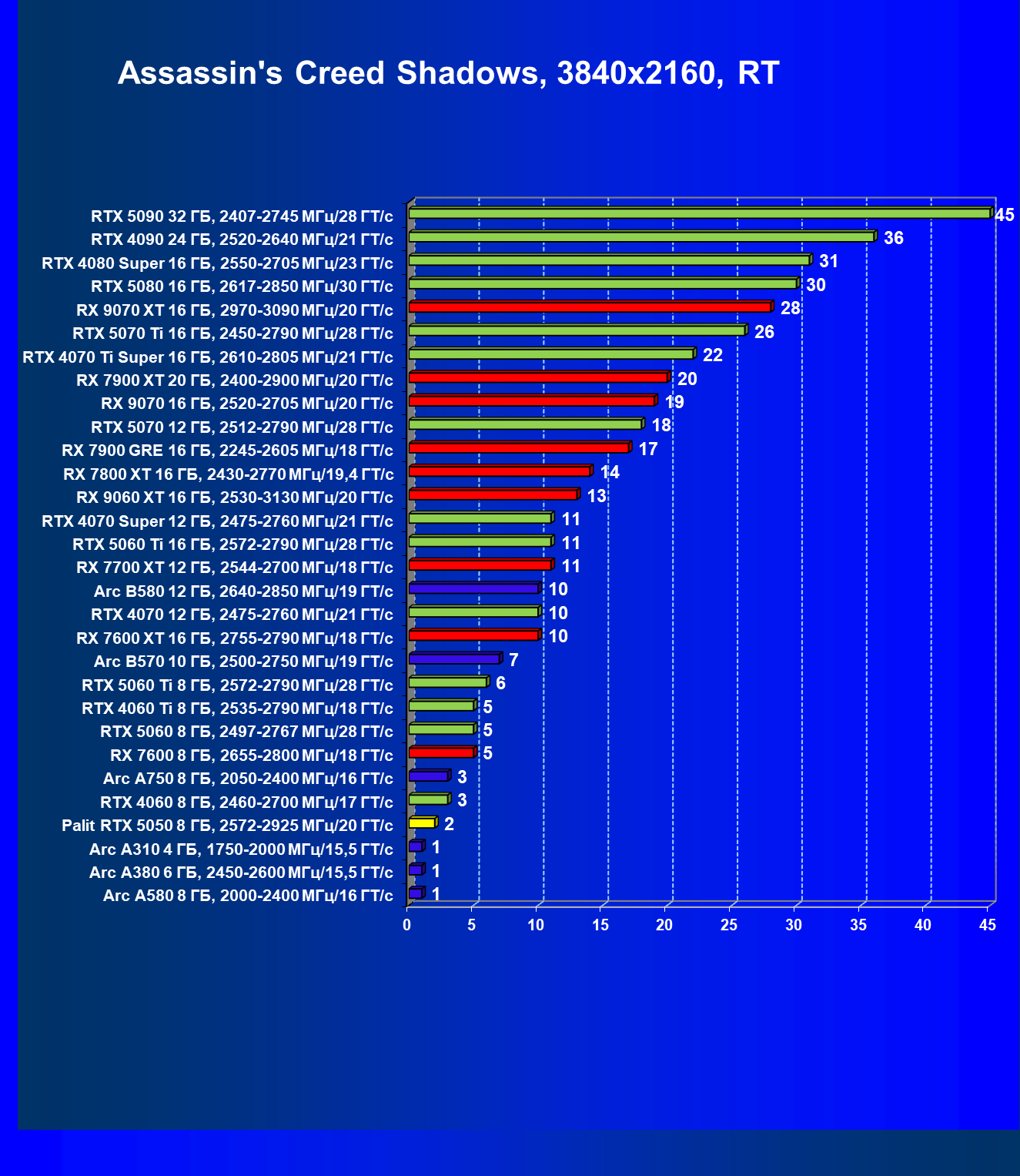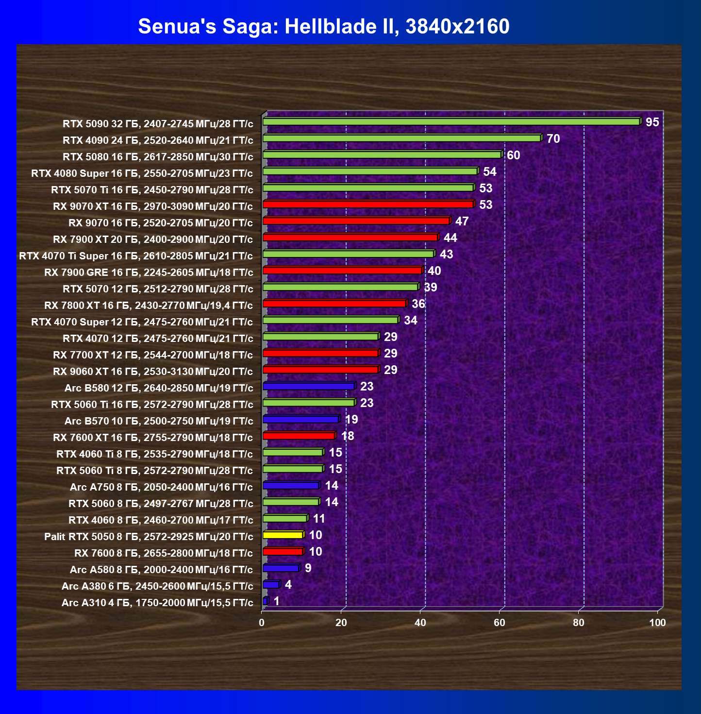 | 09 | Arc B580 12 ГБ, 2640—2850 МГц/19 ГТ/с | 294 | 911 | 31 000 |