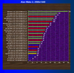 | 16 | Arc A750 8 ГБ, 2050—2400 МГц/16 ГТ/с | 255 | 662 | 26 000 |