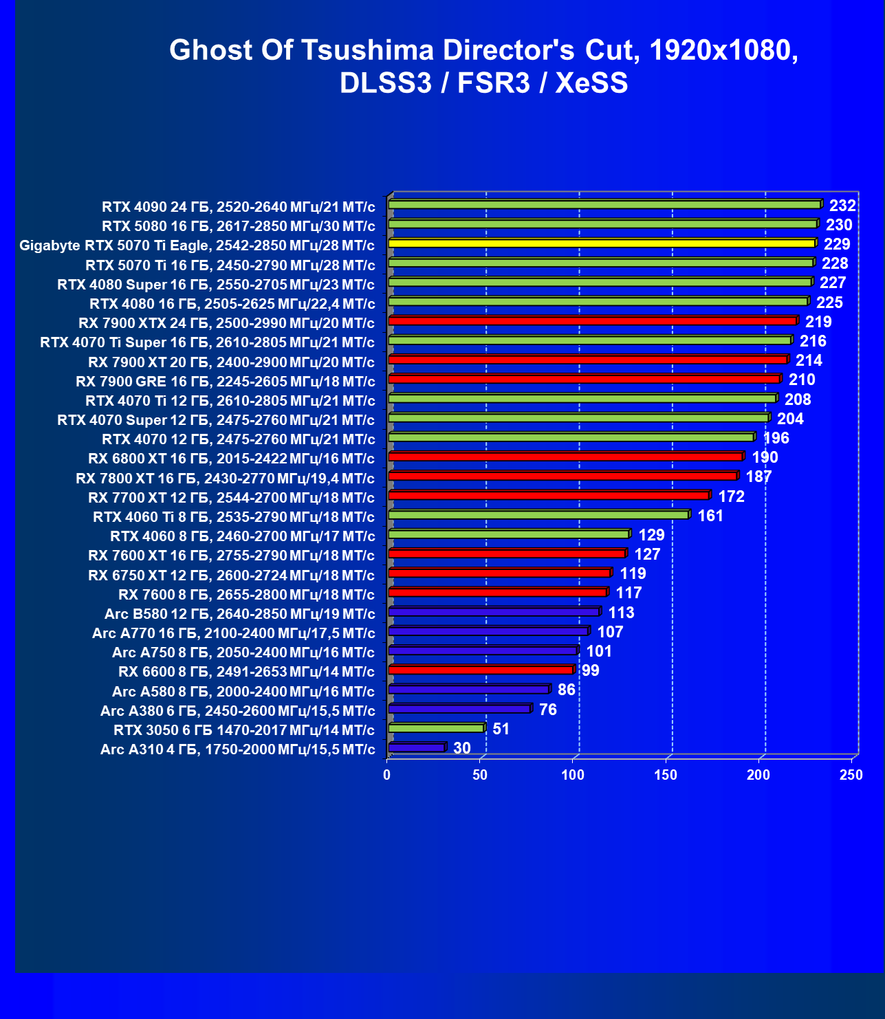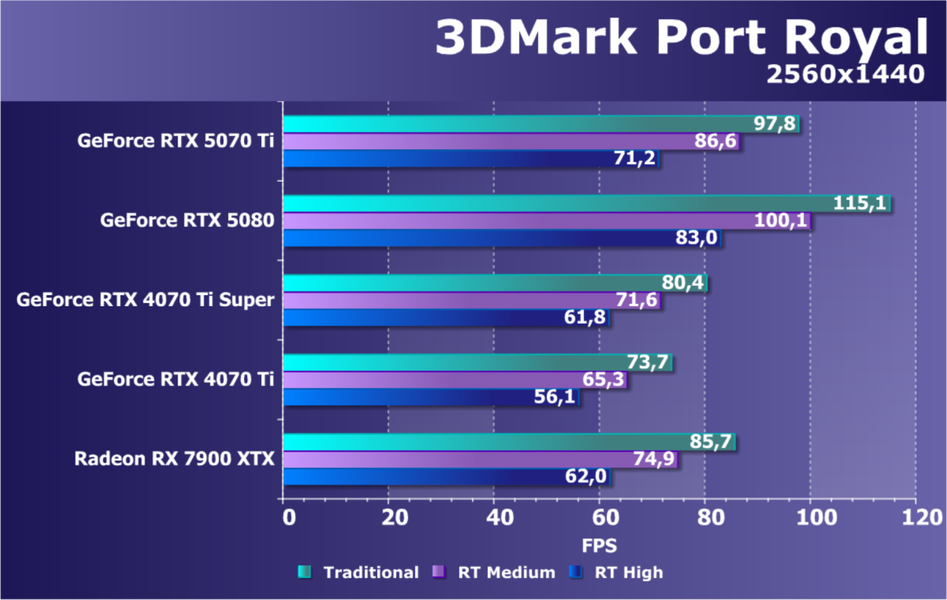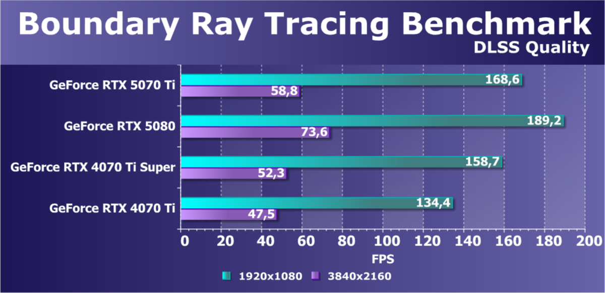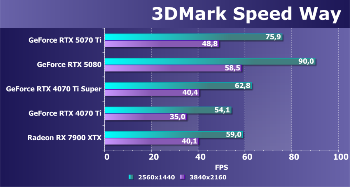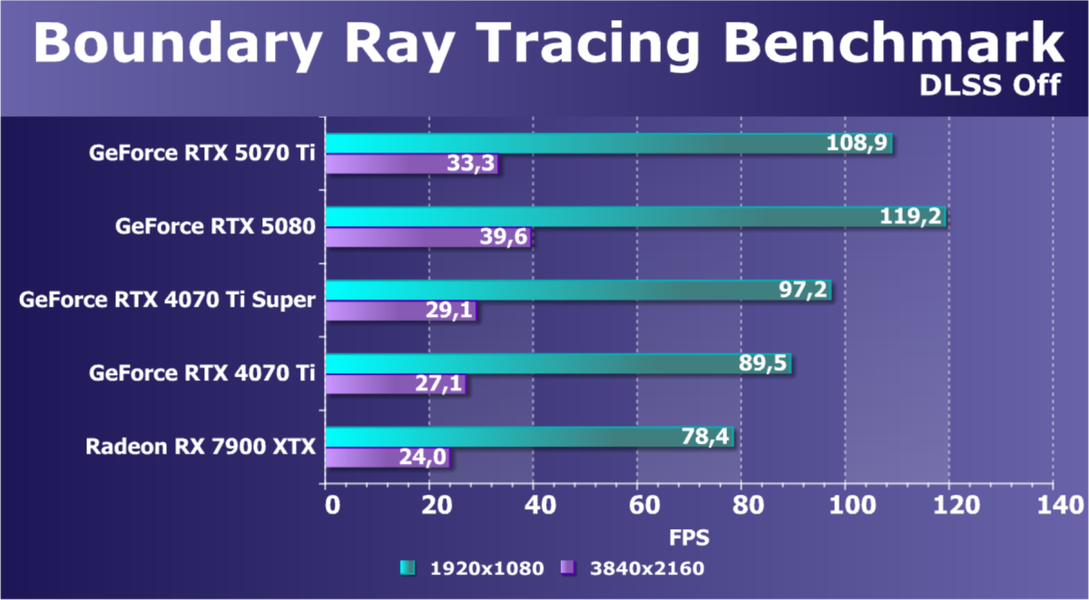 Отметим еще раз, что GeForce RTX 5070 Ti будет обеспечивать хороший и приемлемый комфорт во всех играх на высоких настройках качества при отключенных и включенных трассировке лучей и технологиях масштабирования в разрешениях до 2160p (4K) включительно. А в ряде игр при использовании тех же технологий DLSS/FSR/XeSS можно получить приемлемый комфорт и в разрешении 8K.