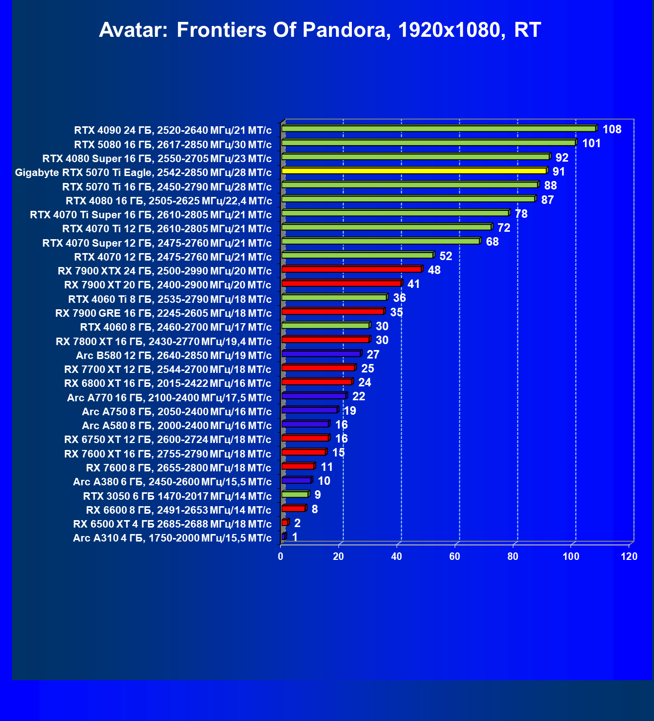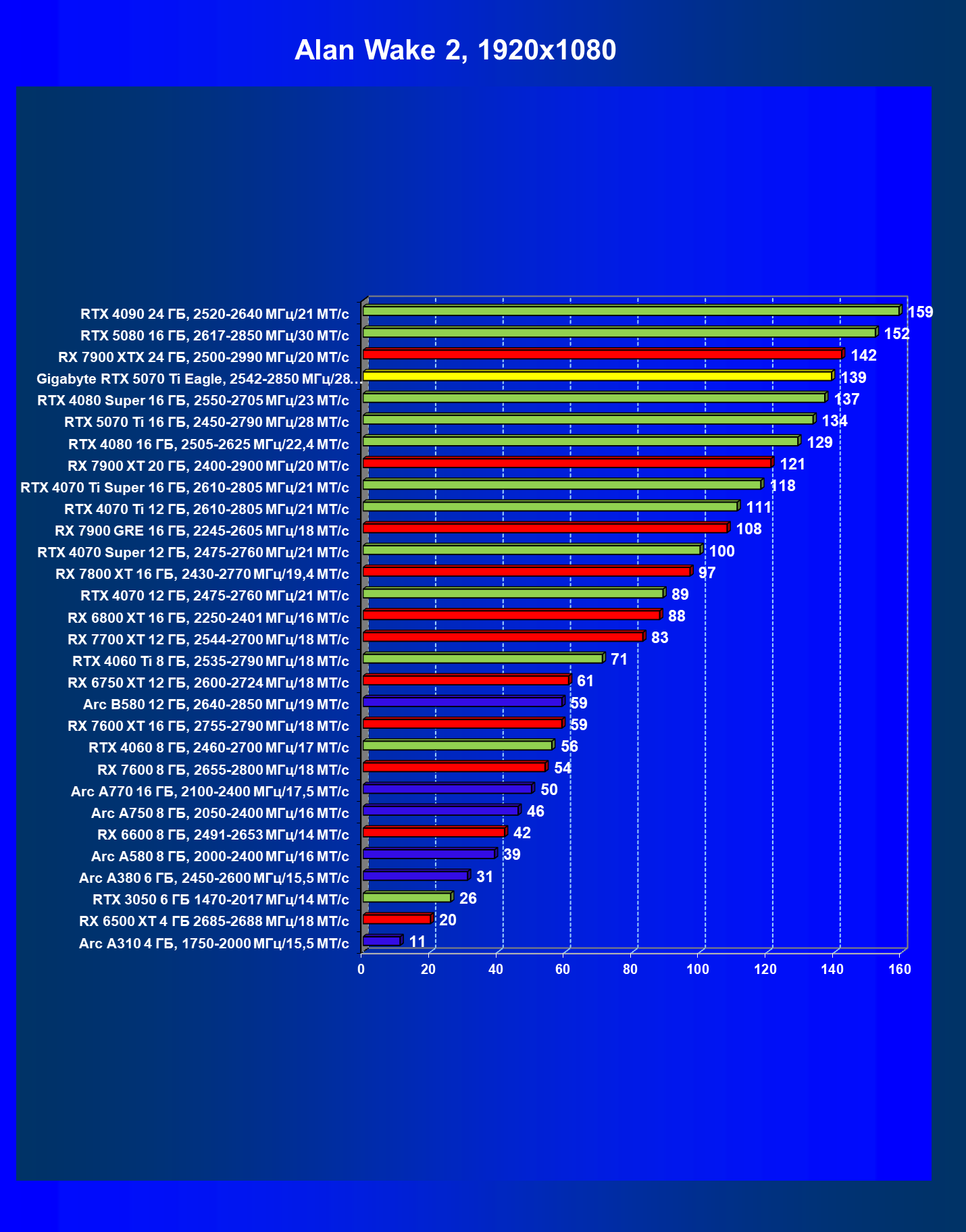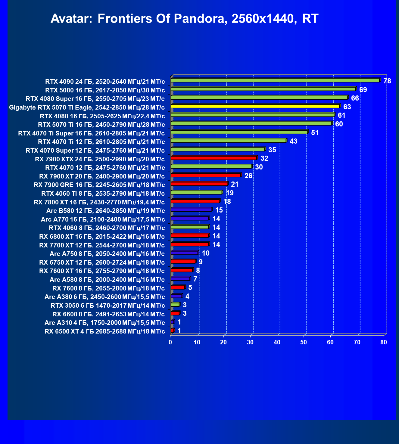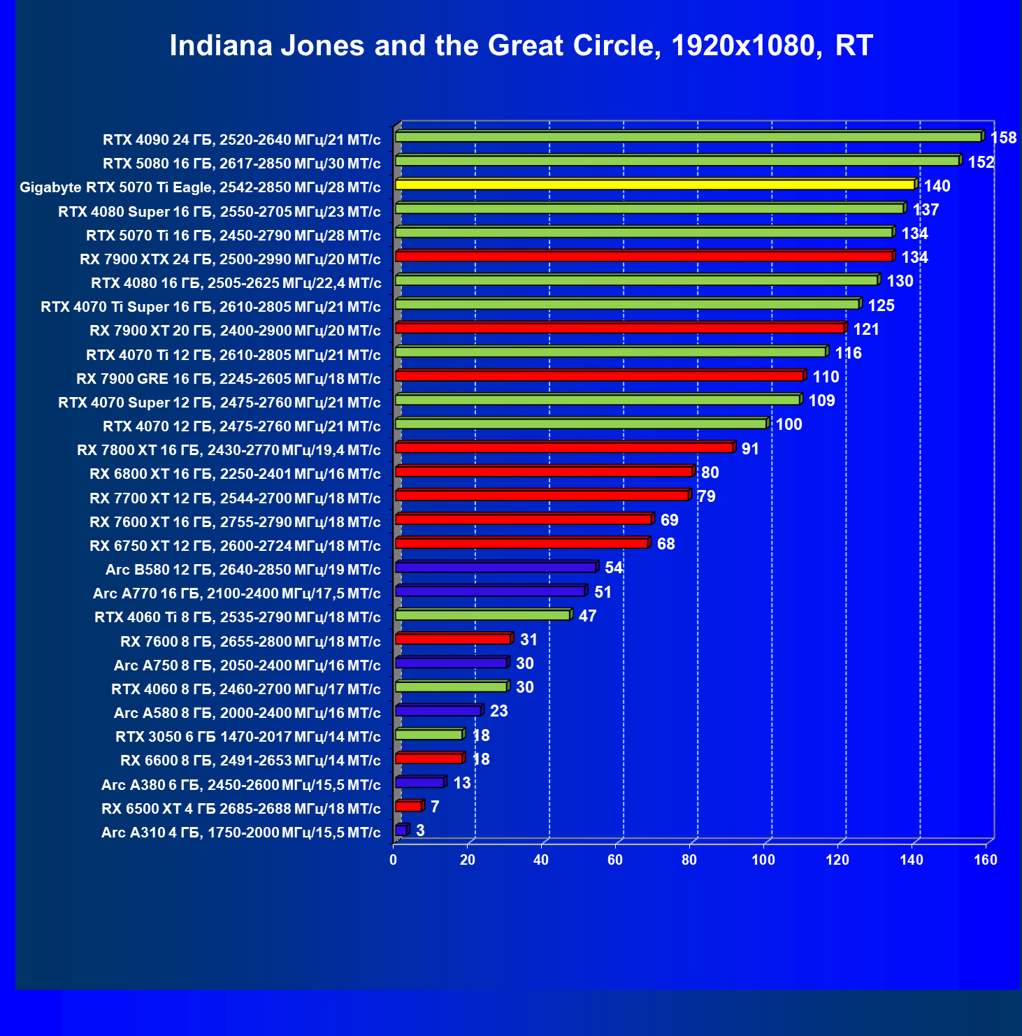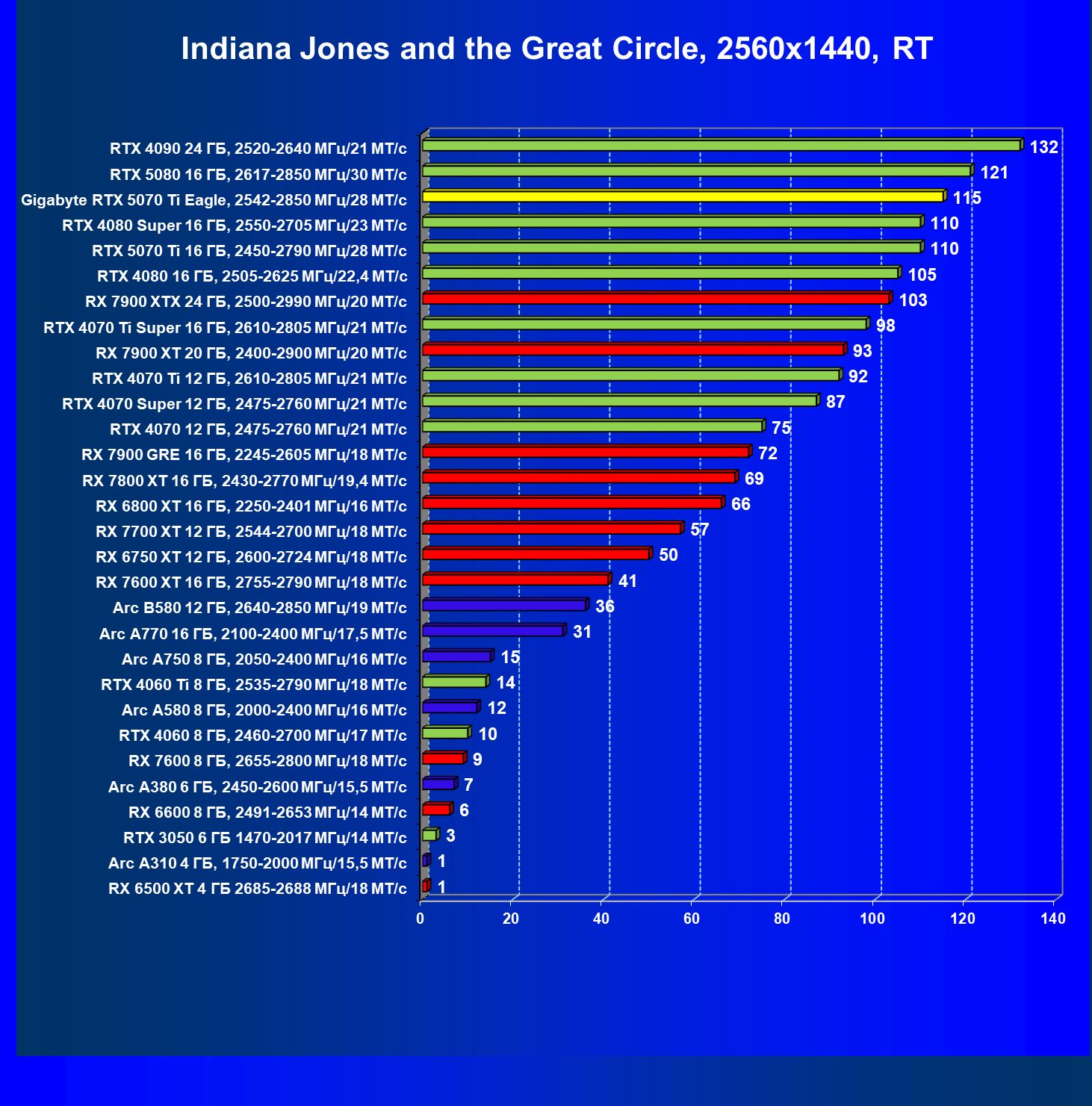 | 15 | RX 7900 XTX 24 ГБ, 2500—2990 МГц/20 МТ/с | 563 | 6245 | 111 000 |