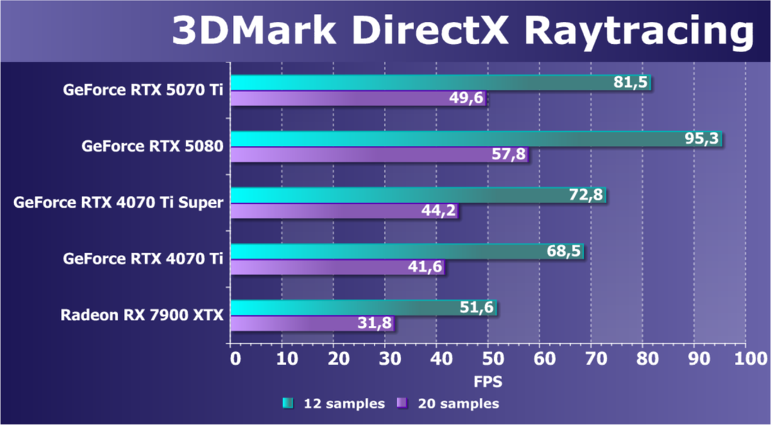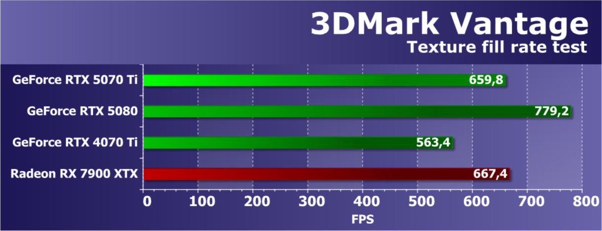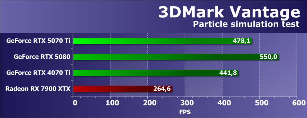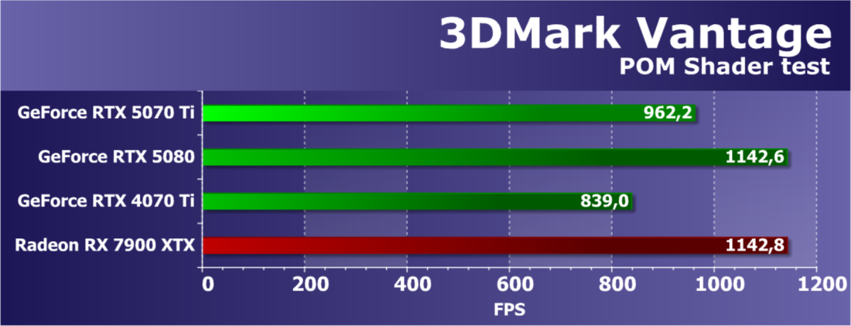 Если посмотреть на энергоэффективность, то GeForce RTX 5070 Ti по этому показателю лидирует с серьезным отрывом.