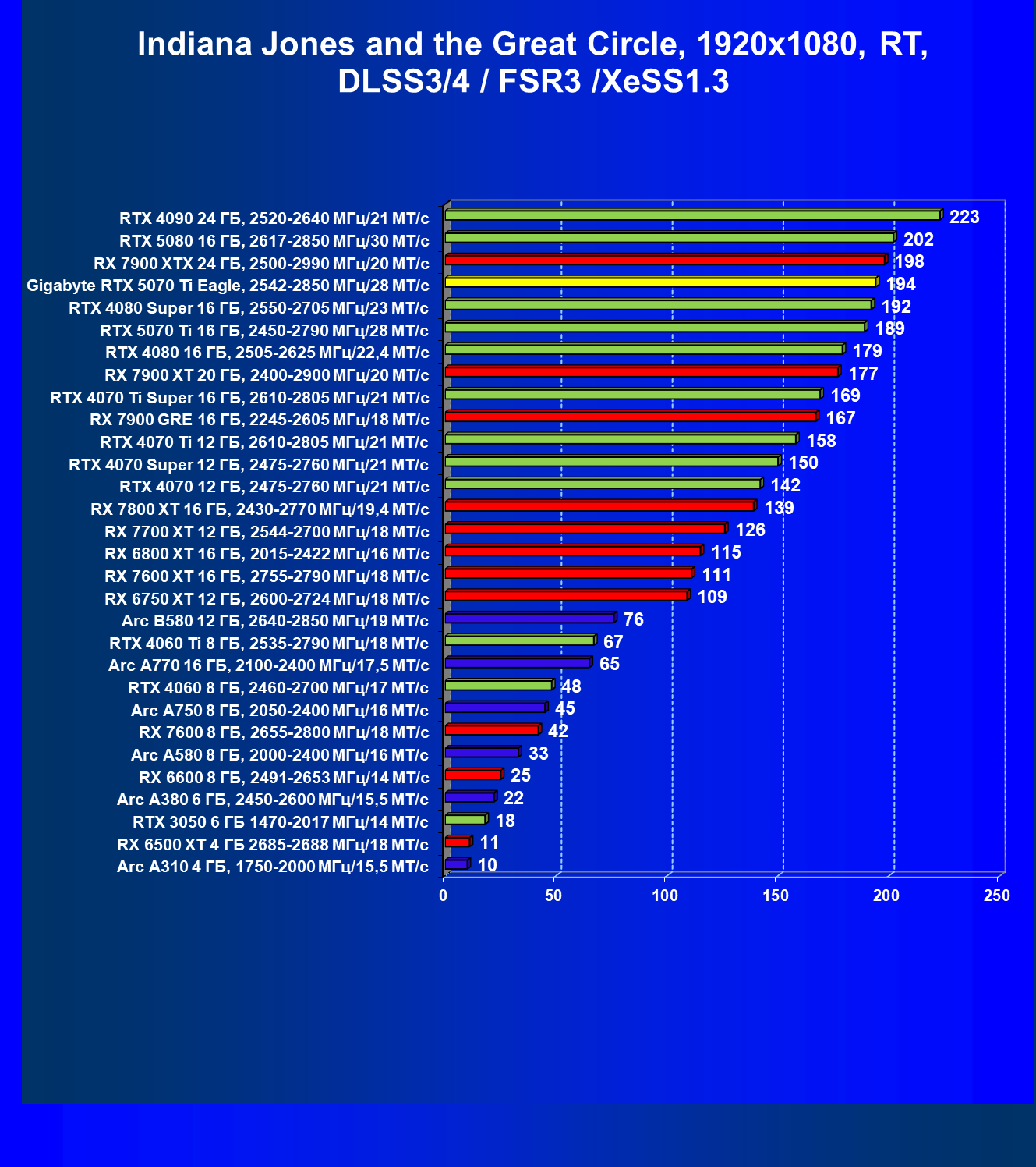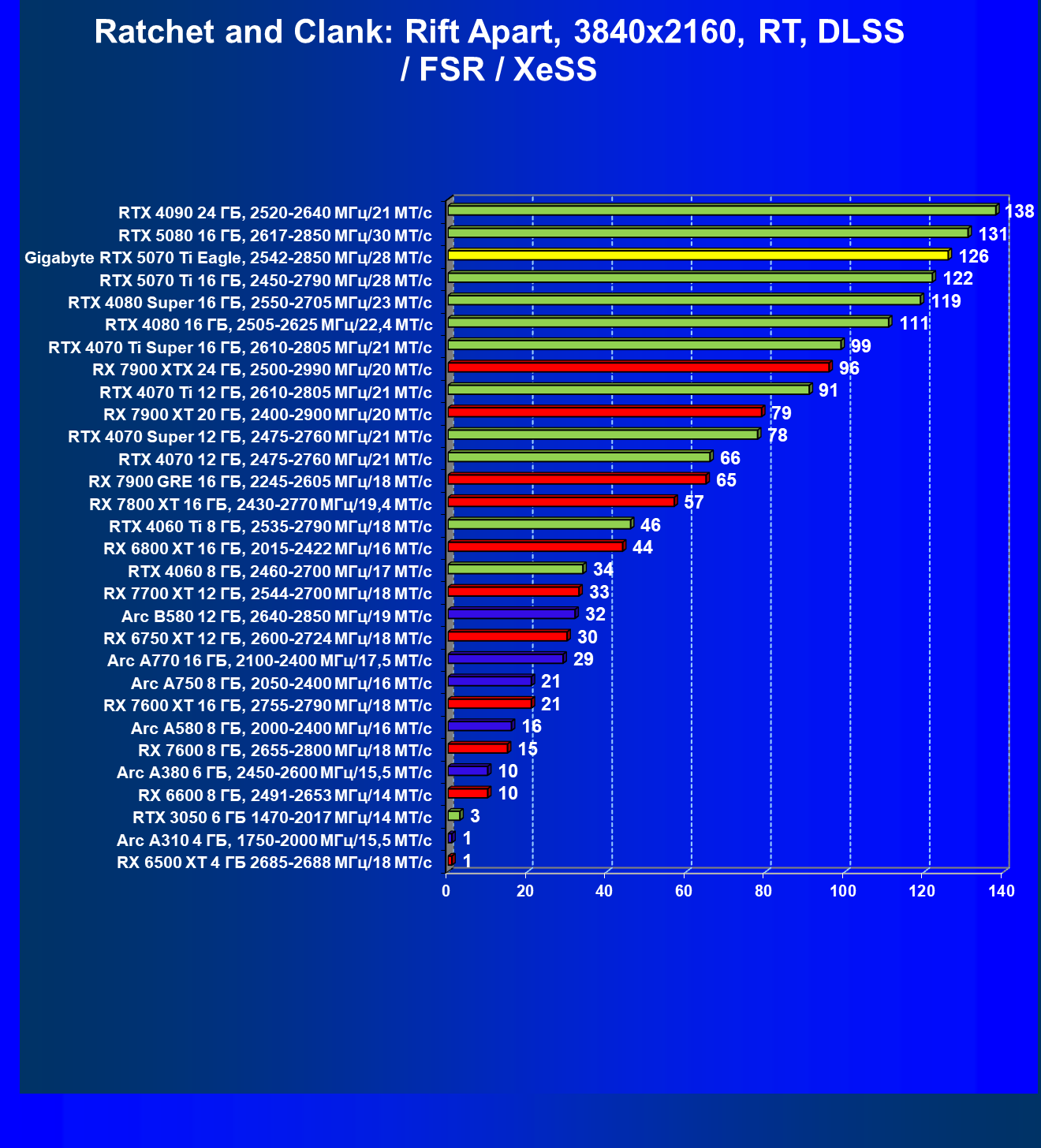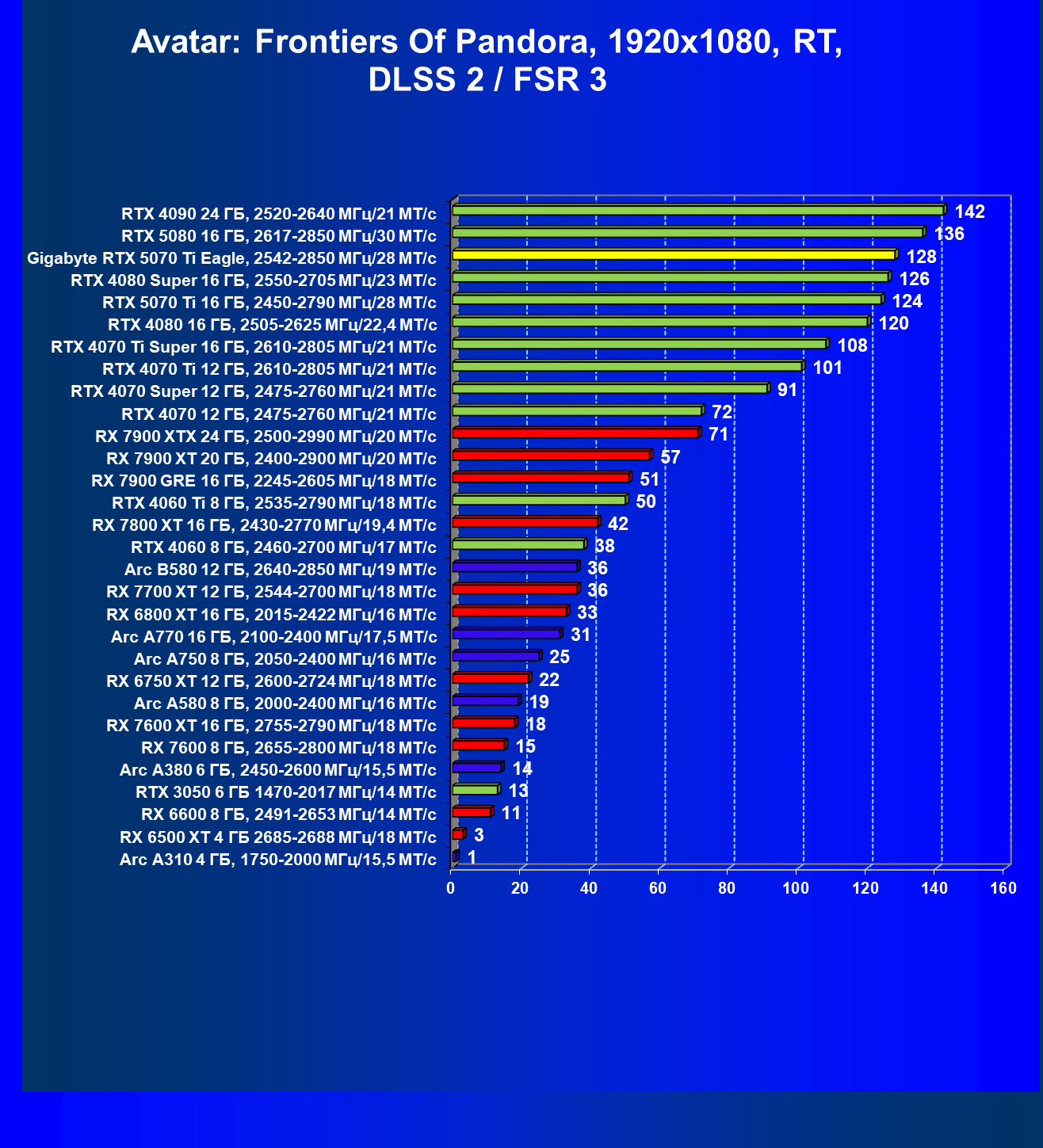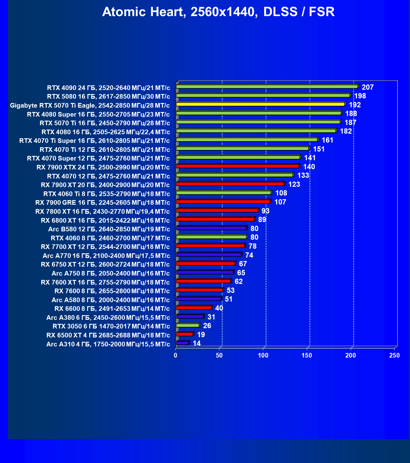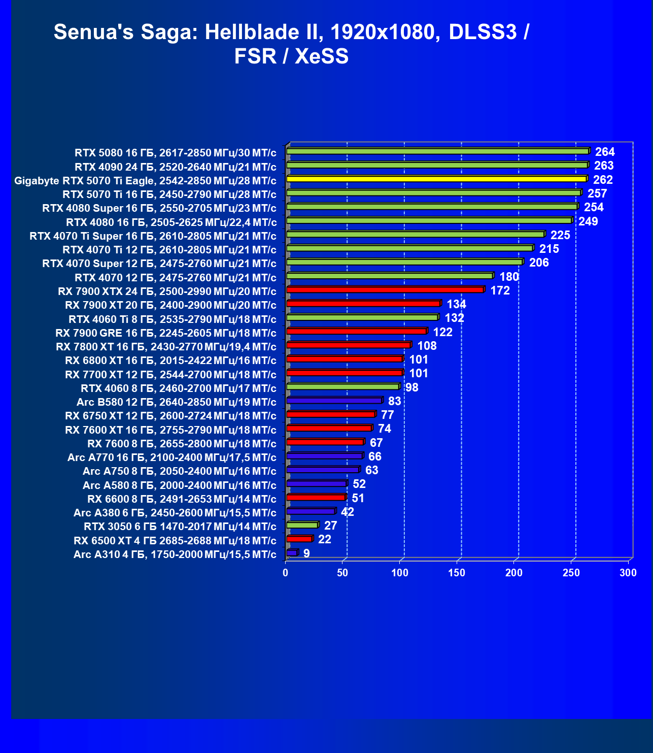 | 01 | Gigabyte GeForce RTX 5070 Ti Eagle, 2542—2850 МГц/28 МТ/с | 968 | 12388 | 128 000 |