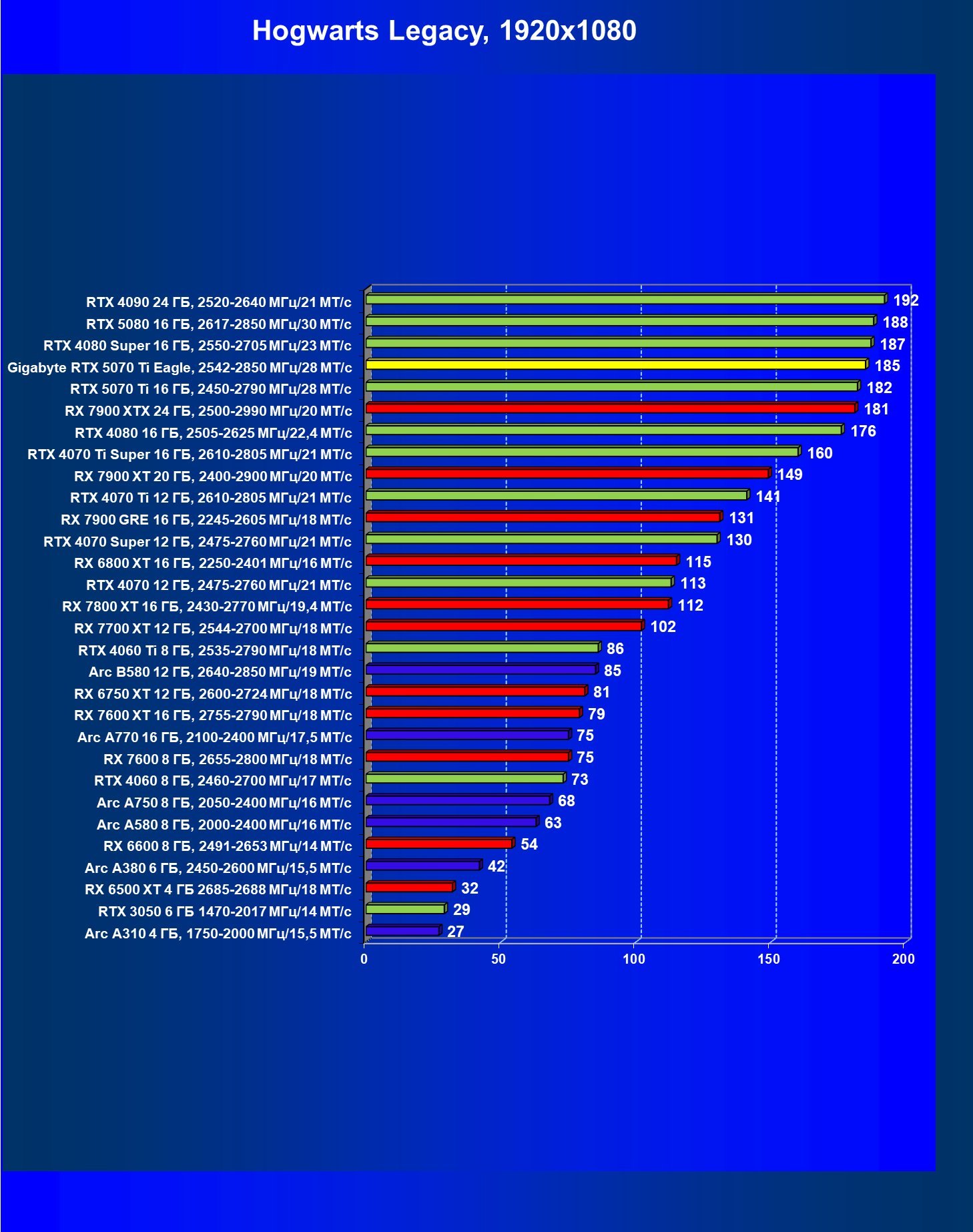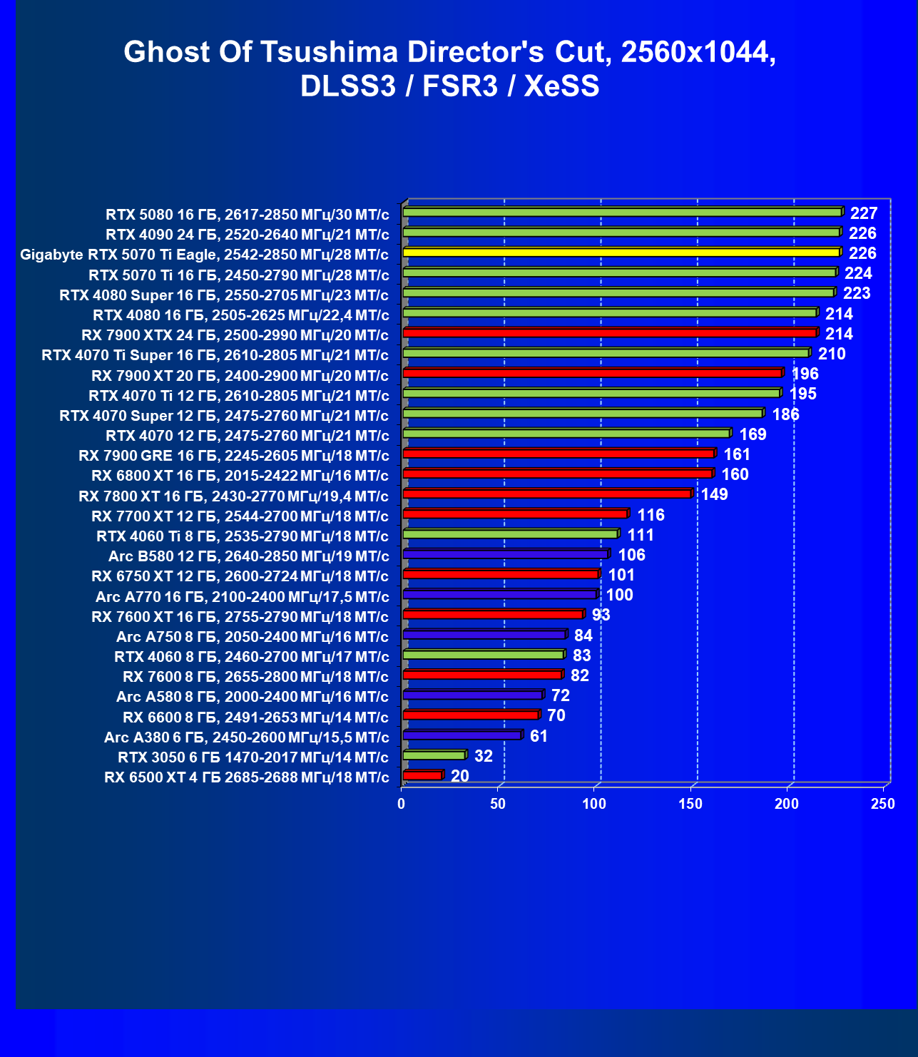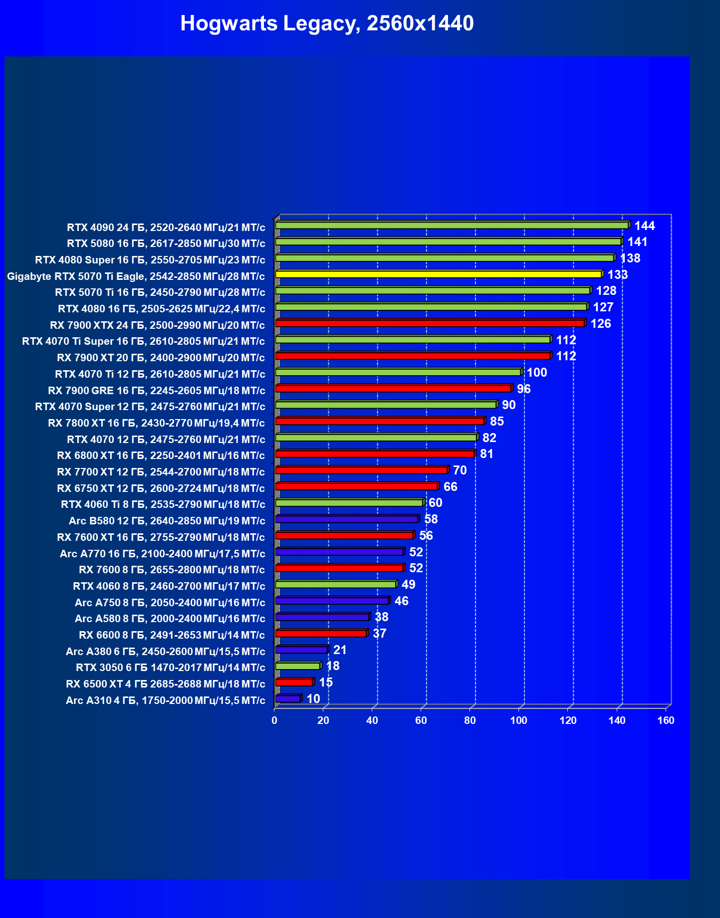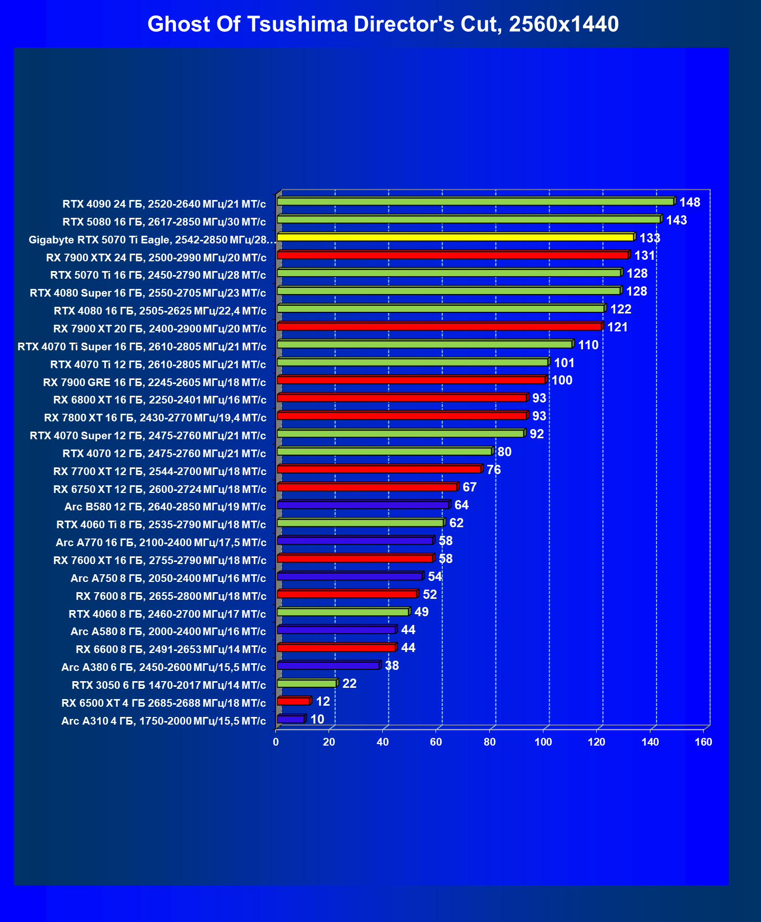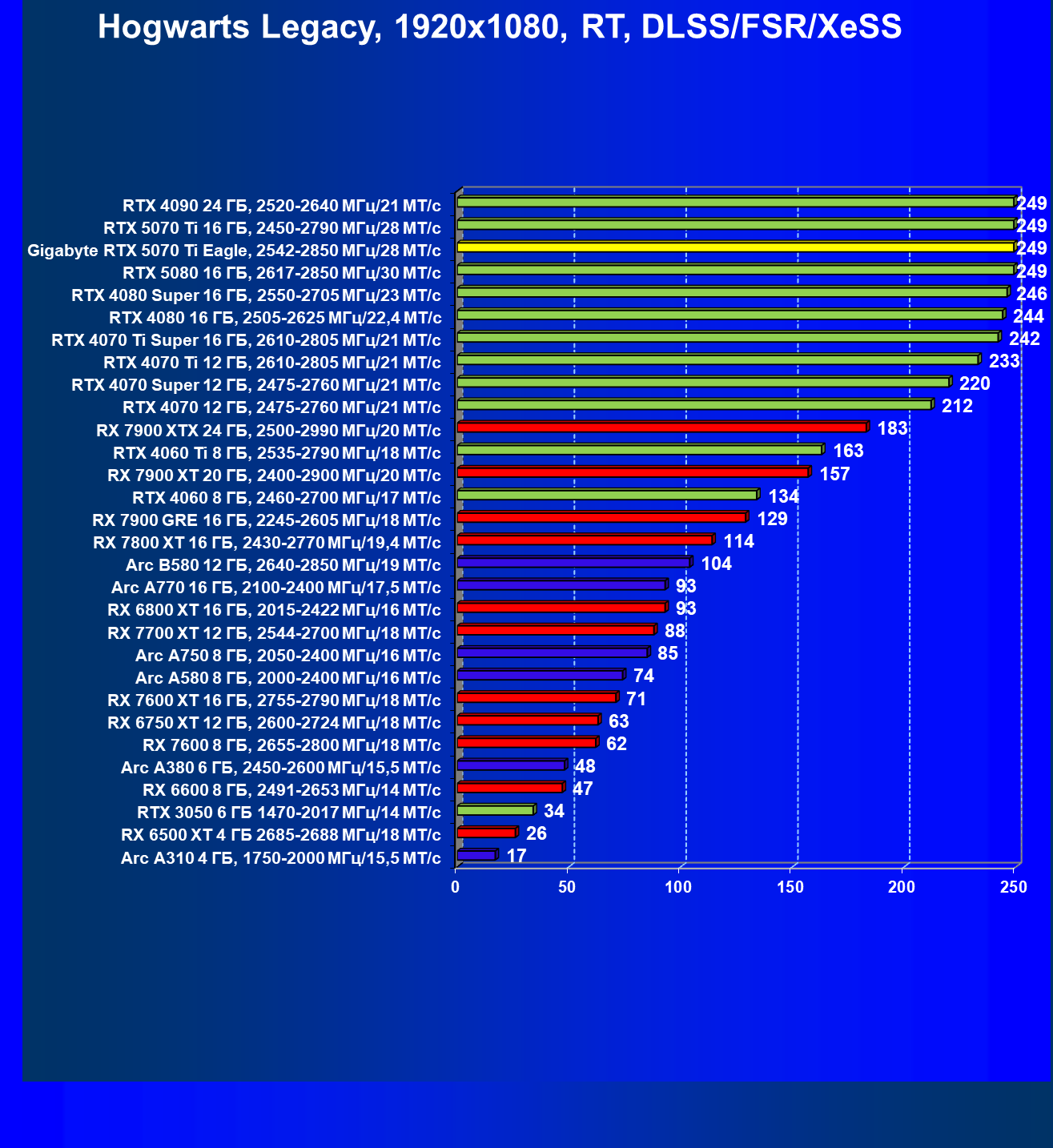 | 01 | Gigabyte GeForce RTX 5070 Ti Eagle, 2542—2850 МГц/28 МТ/с | 968 | 12388 | 128 000 |