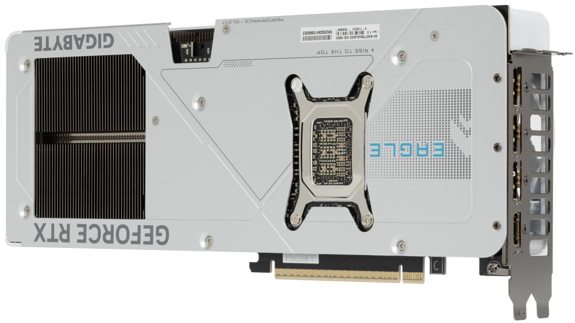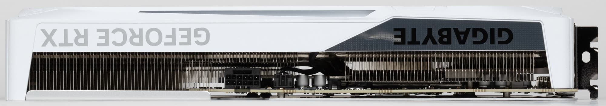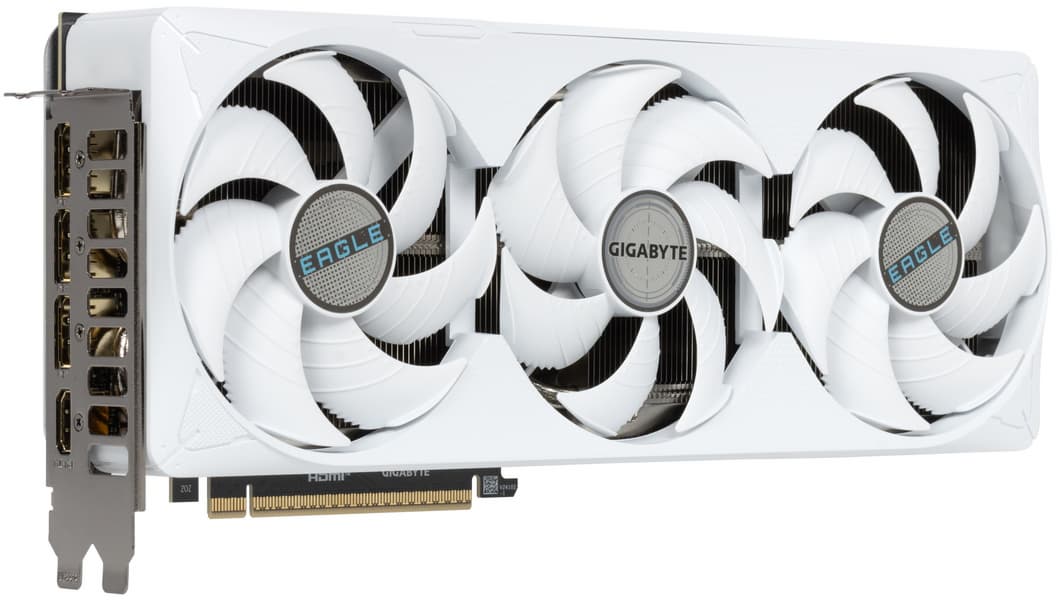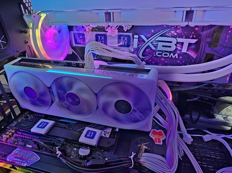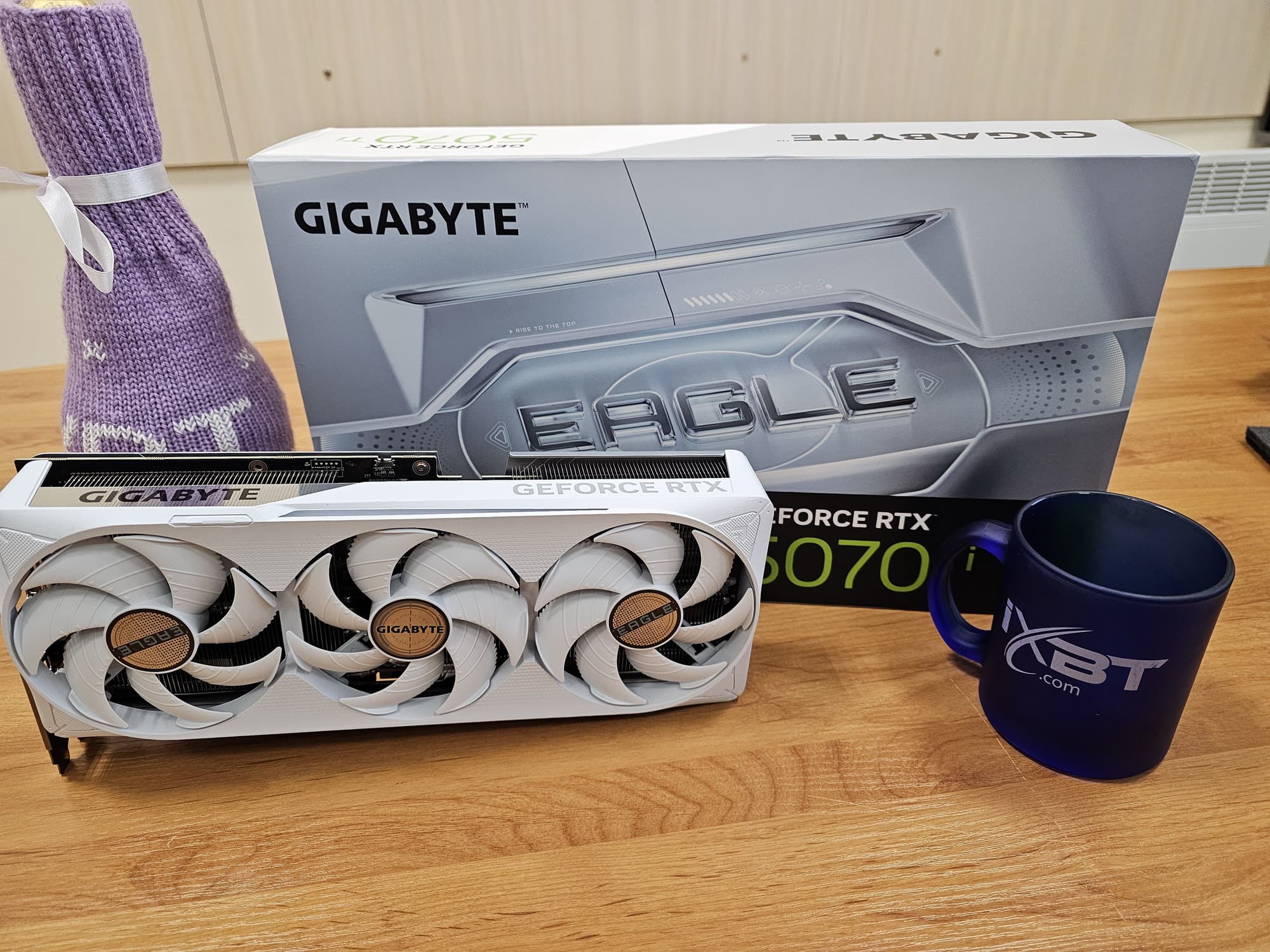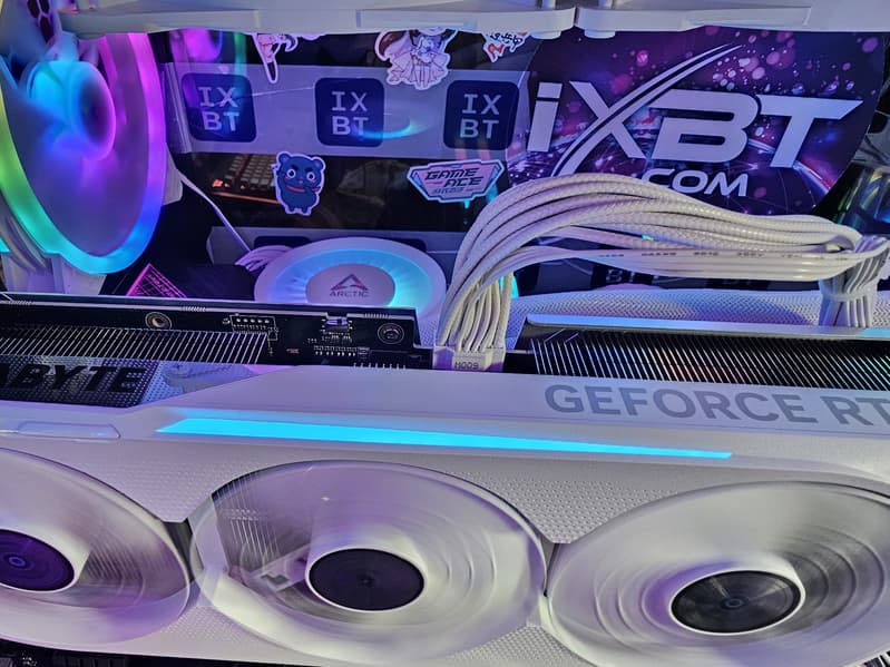 Конкретная протестированная карта Gigabyte GeForce RTX 5070 Ti Eagle OC Ice SFF 16G (16 ГБ) имеет относительно небольшие размеры 30×12 см, занимая 3 слота в системном блоке и соответствуя параметрам Nvidia SFF. Использованный кулер умеренно тихий, при этом карта может потреблять до 300 Вт или чуть больше и имеет один 16-контактный разъем питания 12VHPWR (PCIe 5.0). У карты 4 видеовыхода: 1 HDMI 2.1b и 3 DisplayPort 2.1b — последний обеспечивает пропускную способность до 80 Гбит/с в режиме передачи UHBR 20 и позволяет подключить 8K-дисплей с частотой обновления 60 Гц по одному кабелю. Карта имеет симпатичный и стильный внешний вид и может понравиться любителям белых системных блоков. Подсветка минимальная и отключаемая через ПО.