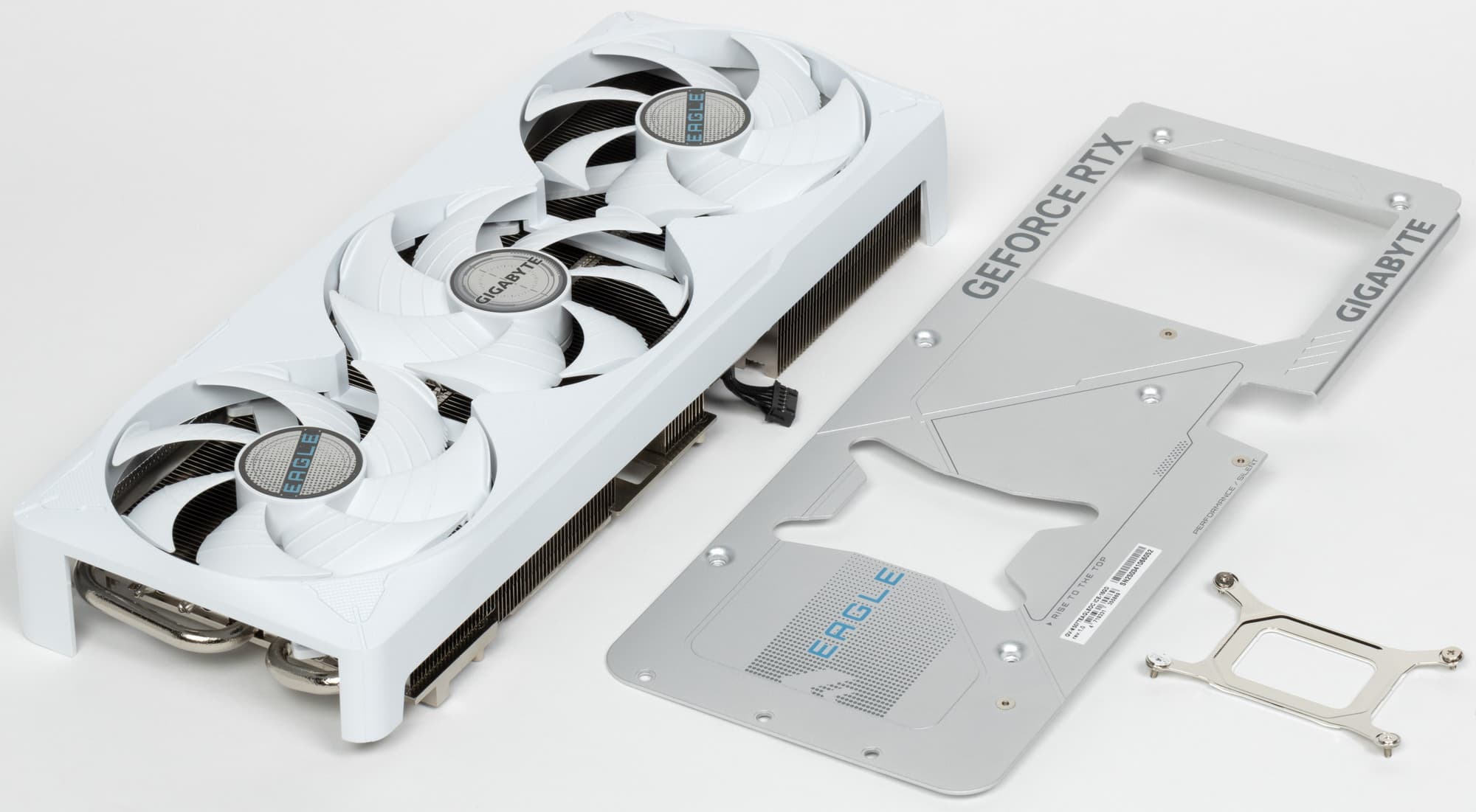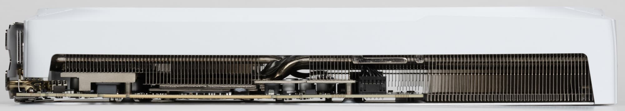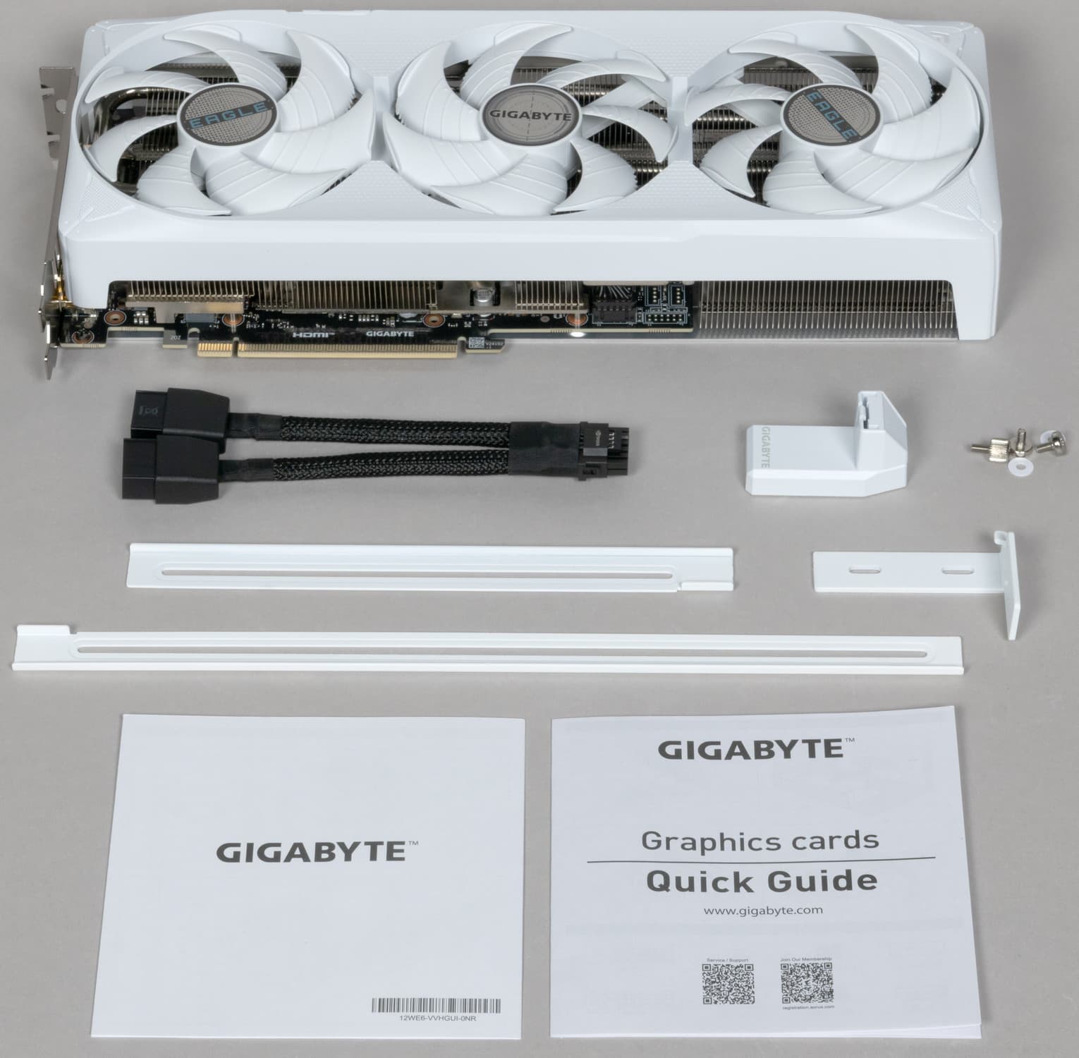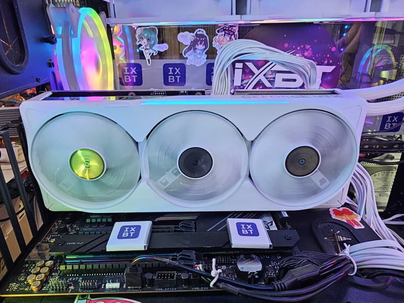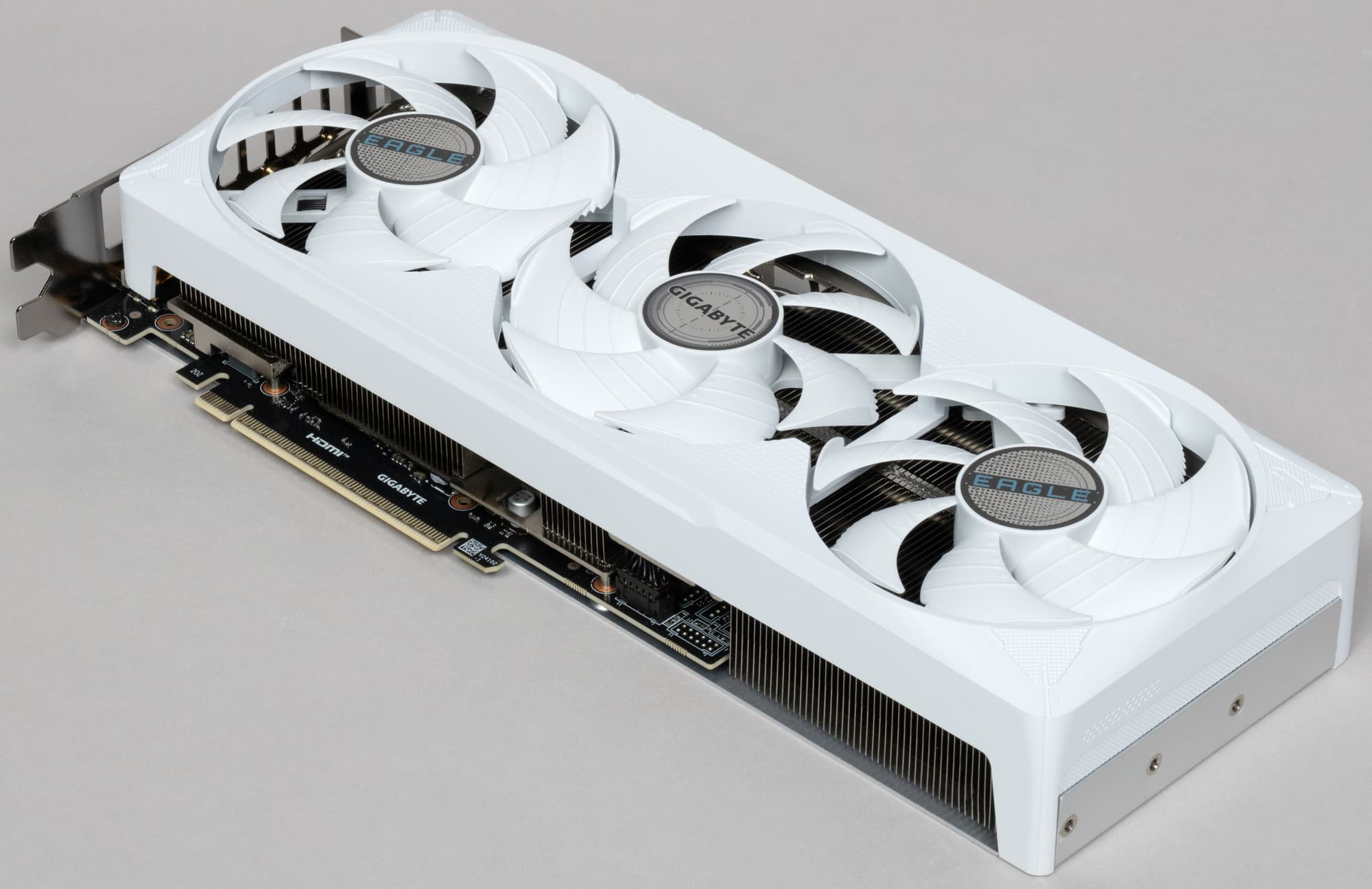 Конкретная протестированная карта Gigabyte GeForce RTX 5070 Ti Eagle OC Ice SFF 16G (16 ГБ) имеет относительно небольшие размеры 30×12 см, занимая 3 слота в системном блоке и соответствуя параметрам Nvidia SFF. Использованный кулер умеренно тихий, при этом карта может потреблять до 300 Вт или чуть больше и имеет один 16-контактный разъем питания 12VHPWR (PCIe 5.0). У карты 4 видеовыхода: 1 HDMI 2.1b и 3 DisplayPort 2.1b — последний обеспечивает пропускную способность до 80 Гбит/с в режиме передачи UHBR 20 и позволяет подключить 8K-дисплей с частотой обновления 60 Гц по одному кабелю. Карта имеет симпатичный и стильный внешний вид и может понравиться любителям белых системных блоков. Подсветка минимальная и отключаемая через ПО.