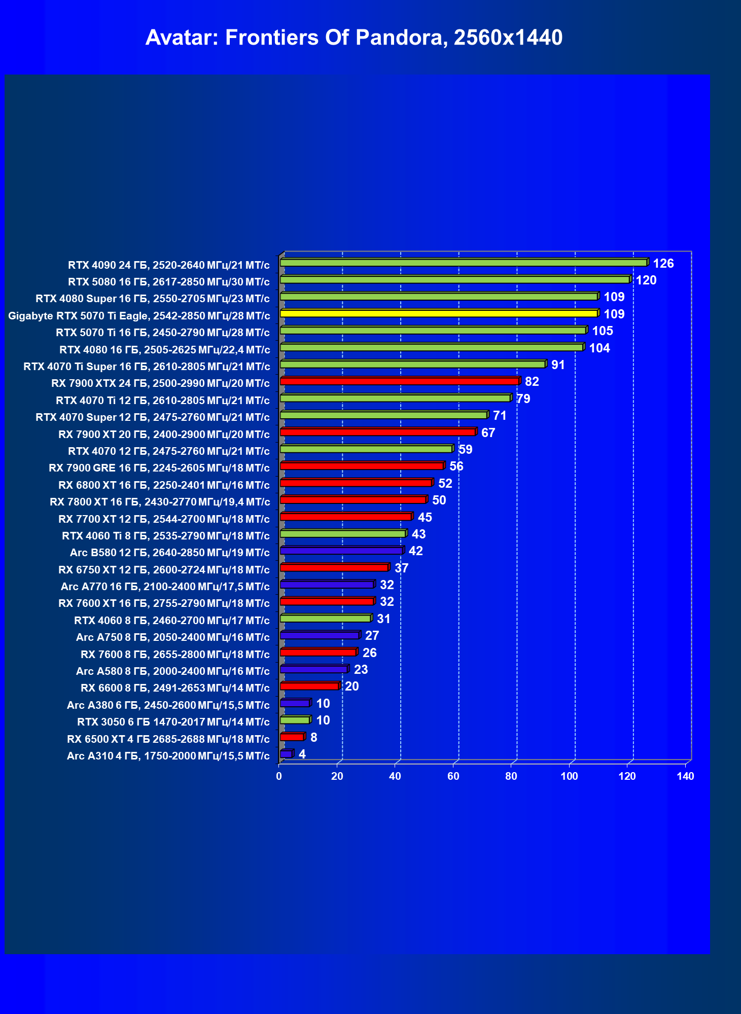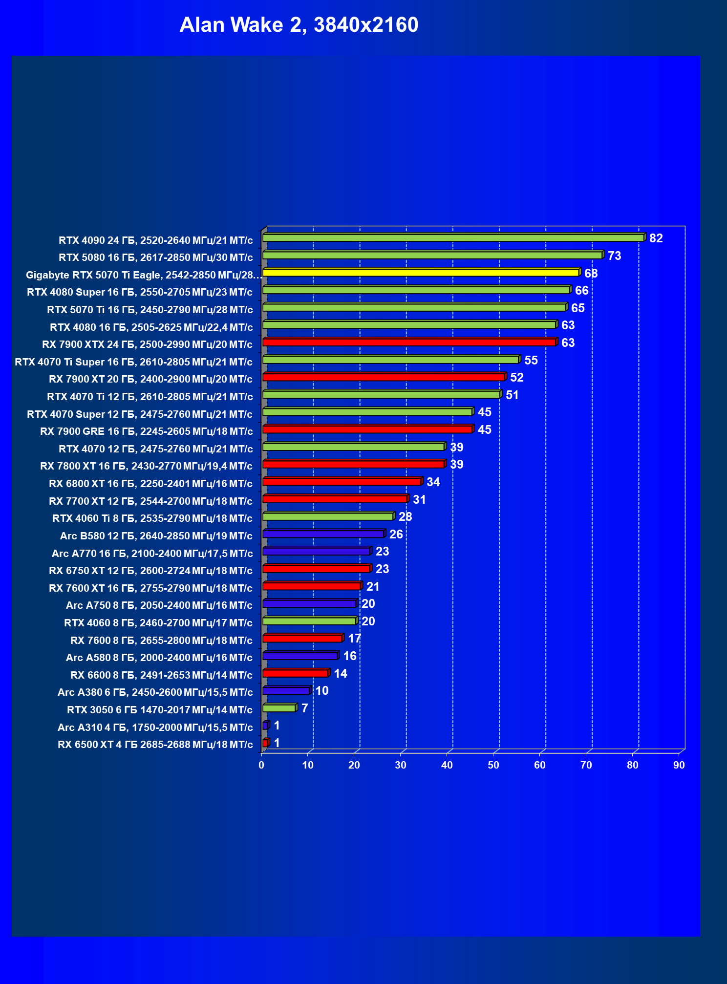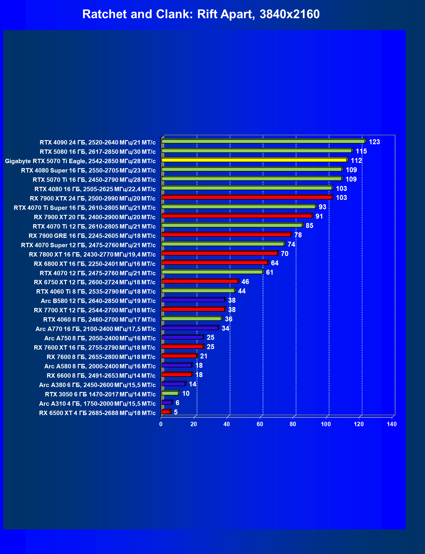 | 08 | RX 7900 XTX 24 ГБ, 2500—2990 МГц/20 МТ/с | 399 | 4428 | 111 000 |