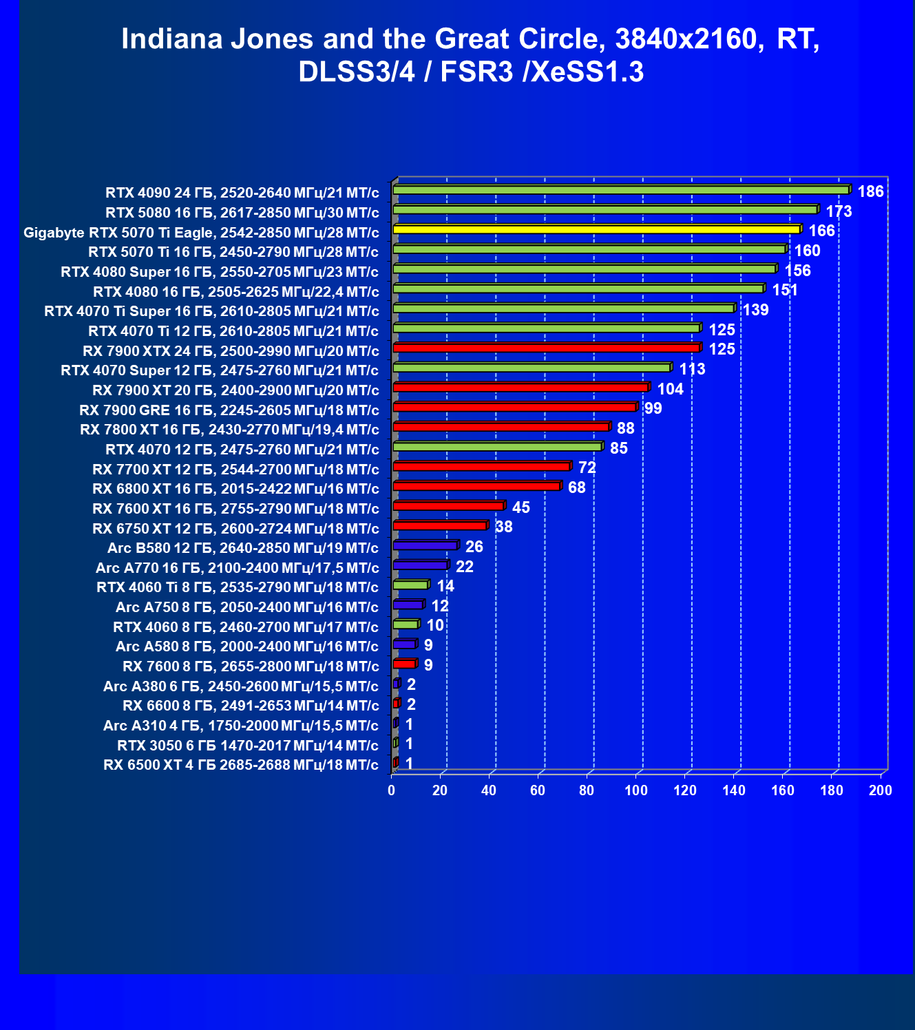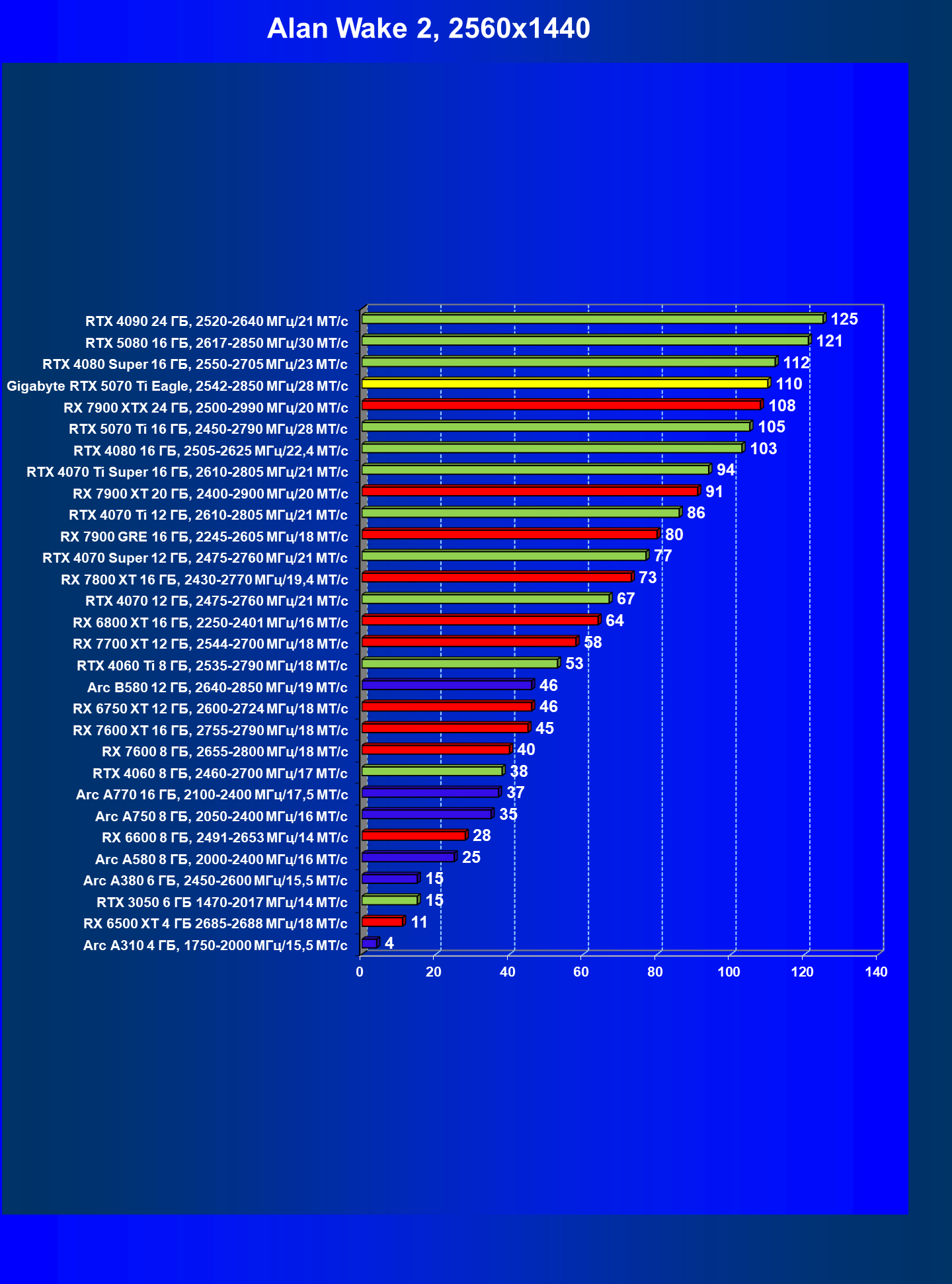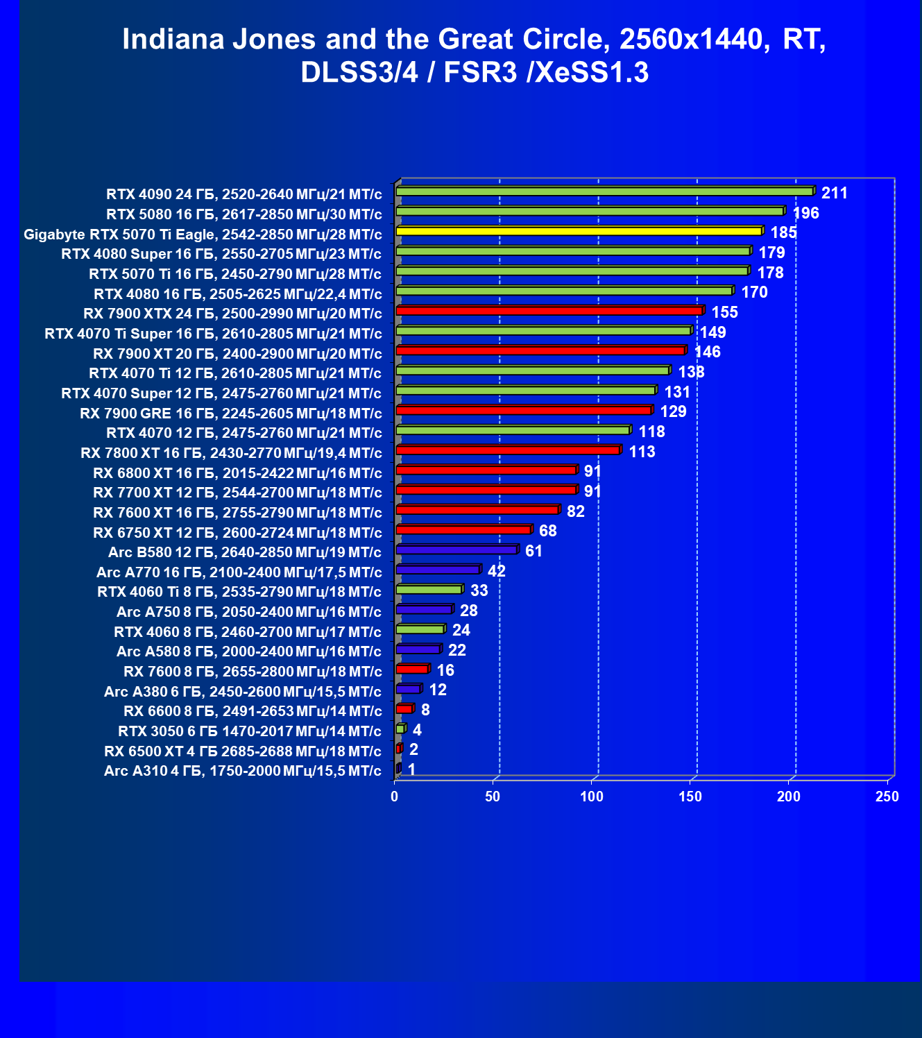 | 08 | RX 7900 XTX 24 ГБ, 2500—2990 МГц/20 МТ/с | 399 | 4428 | 111 000 |