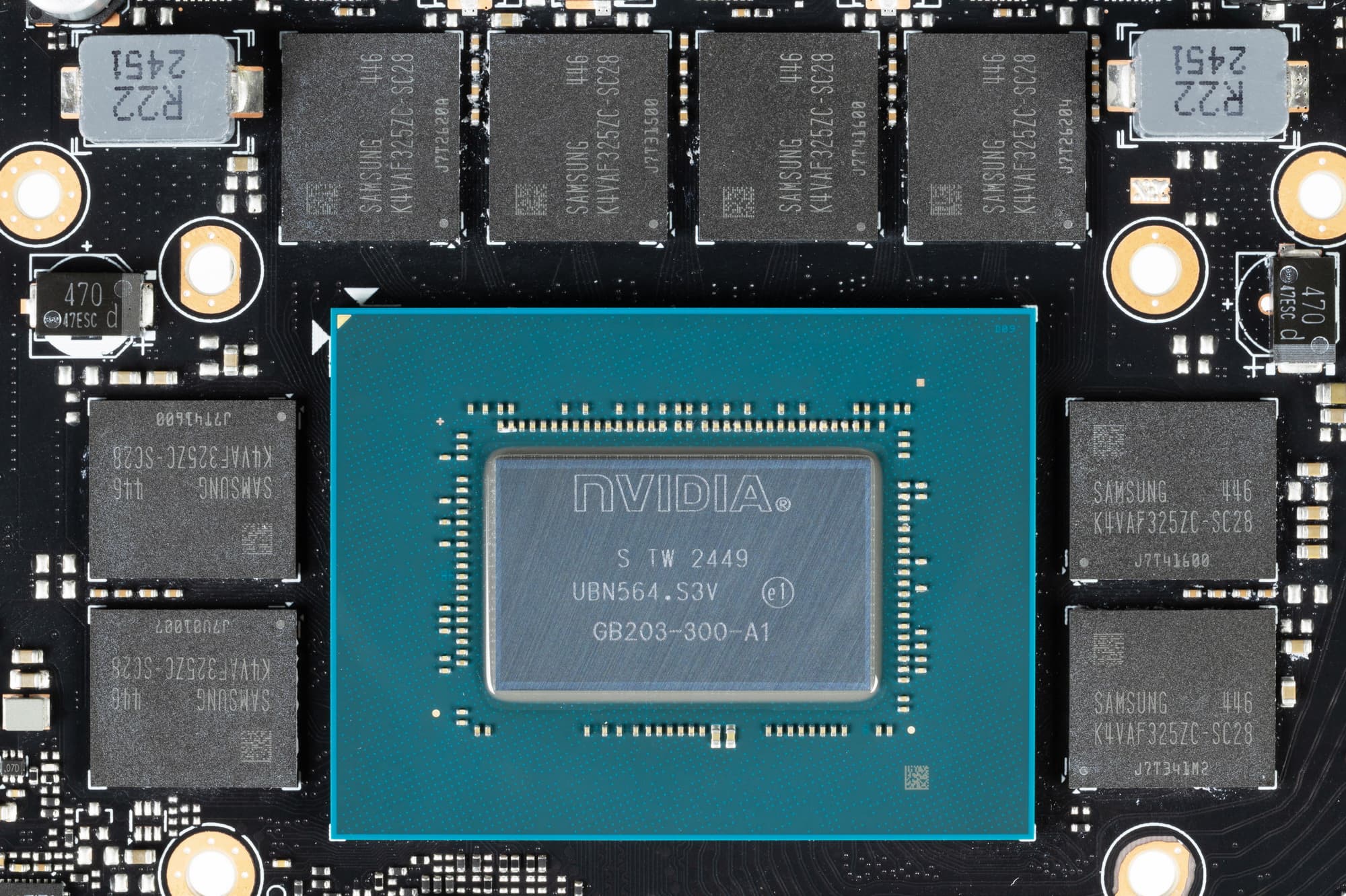 Кристалл GB203 тоже довольно крупный, и он очень похож по размеру и количеству транзисторов на AD103 из предыдущего поколения, который используется в GeForce RTX 4070 Ti Super и GeForce RTX 4080, и это неудивительно, так как чипы имеют схожее количество исполнительных блоков и производятся при помощи одного и того же техпроцесса TSMC — 4N. GB203 имеет площадь кристалла 378 мм² и содержит 45,6 млрд транзисторов — у AD103 площадь кристалла 378,6 мм² и состоит он из 45,9 млрд транзисторов, так что они действительно весьма близки по характеристикам.