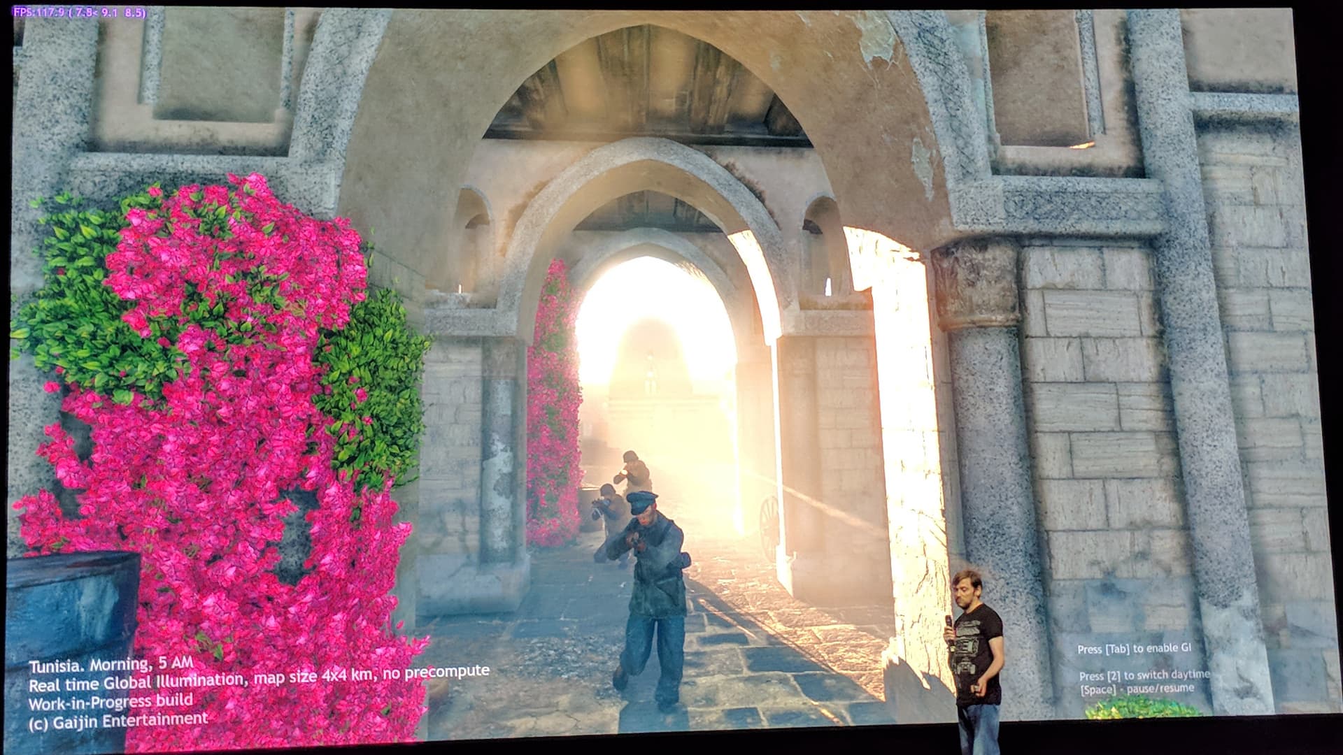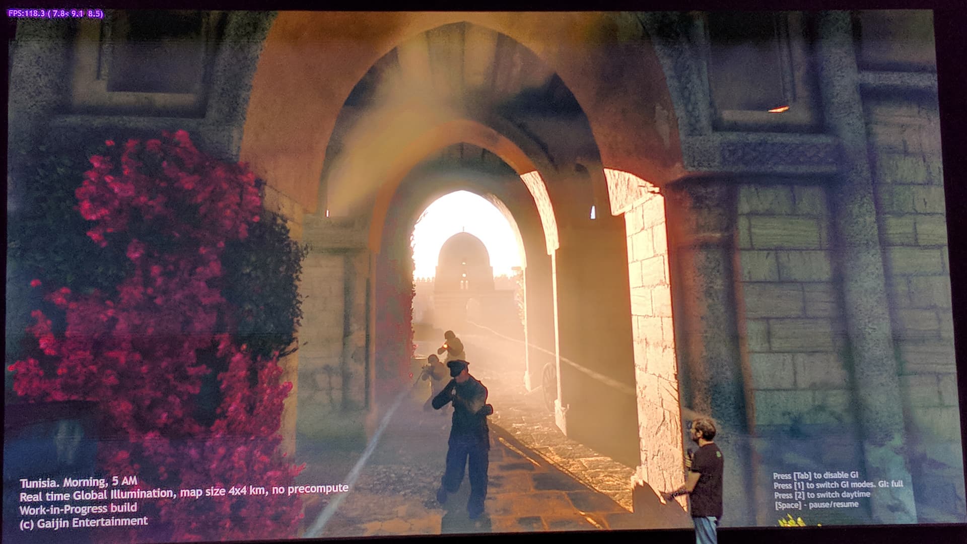 Если вы обратите внимание на счетчик FPS в углу экрана, то легко заметите, что включение GI не снизило частоту кадров вовсе, хотя значительно увеличило реалистичность освещения (картинка без GI плоская и нереалистичная). Это стало возможно на GeForce RTX благодаря хитрому алгоритму Gaijin и специализированным RT-ядрам, выполняющим всю работу по ускорению специальных структур (BVH — Bounding Volume Hierarchy) и поиску пересечений лучей с треугольниками. Так как бо́льшая часть работы выполняется именно на выделенных RT-ядрах, а не CUDA-ядрах, то и снижения производительности в данном конкретном случае это практически не приносит.