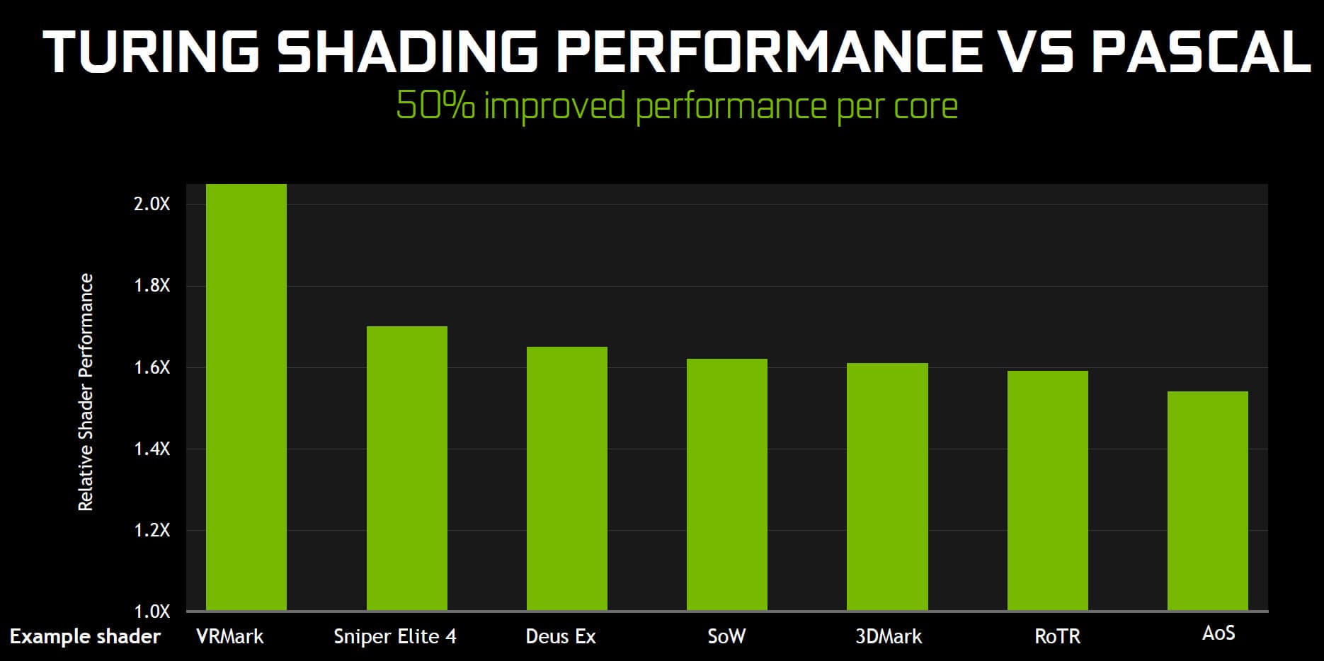 Одним из важнейших вопросов, тревожащих игроков по всему миру, стал вопрос производительности в уже существующих проектах. Да, новые фичи дадут скорость и качество, но почему Nvidia на презентации в Кельне ничего не сказала о скорости в нынешних играх по сравнению с линейкой Pascal? Наверняка там не все так уж хорошо, вот поэтому и скрывают! Действительно, отсутствие каких-либо данных о скорости рендеринга в уже вышедших играх со стороны компании было явной оплошностью, которую они затем поспешили исправить, выпустив слайды о приросте скорости до 50% в известных играх по сравнению с аналогичными моделями из линейки GeForce GTX.