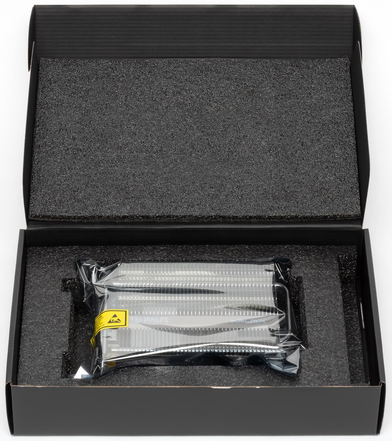 Базовый комплект поставки видеокарт обычно включает руководство пользователя и носитель с драйверами и утилитами. У данной карты комплект без носителя — компания считает, что пользователь способен самостоятельно скачать ПО с ее сайта.