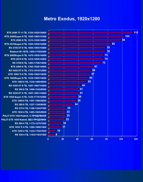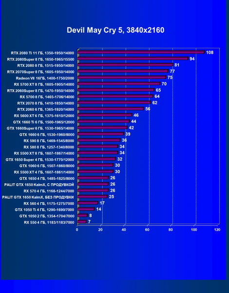 | 07 | RX 5500 XT 4 ГБ, 1607—1861/14000 | 329 | 510 | 15 500 |