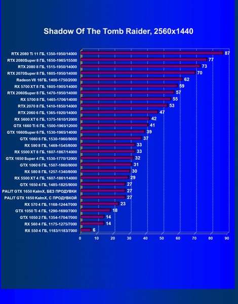 | 18 | RX 5500 XT 4 ГБ, 1607—1861/14000 | 510 | 329 | 15 500 |