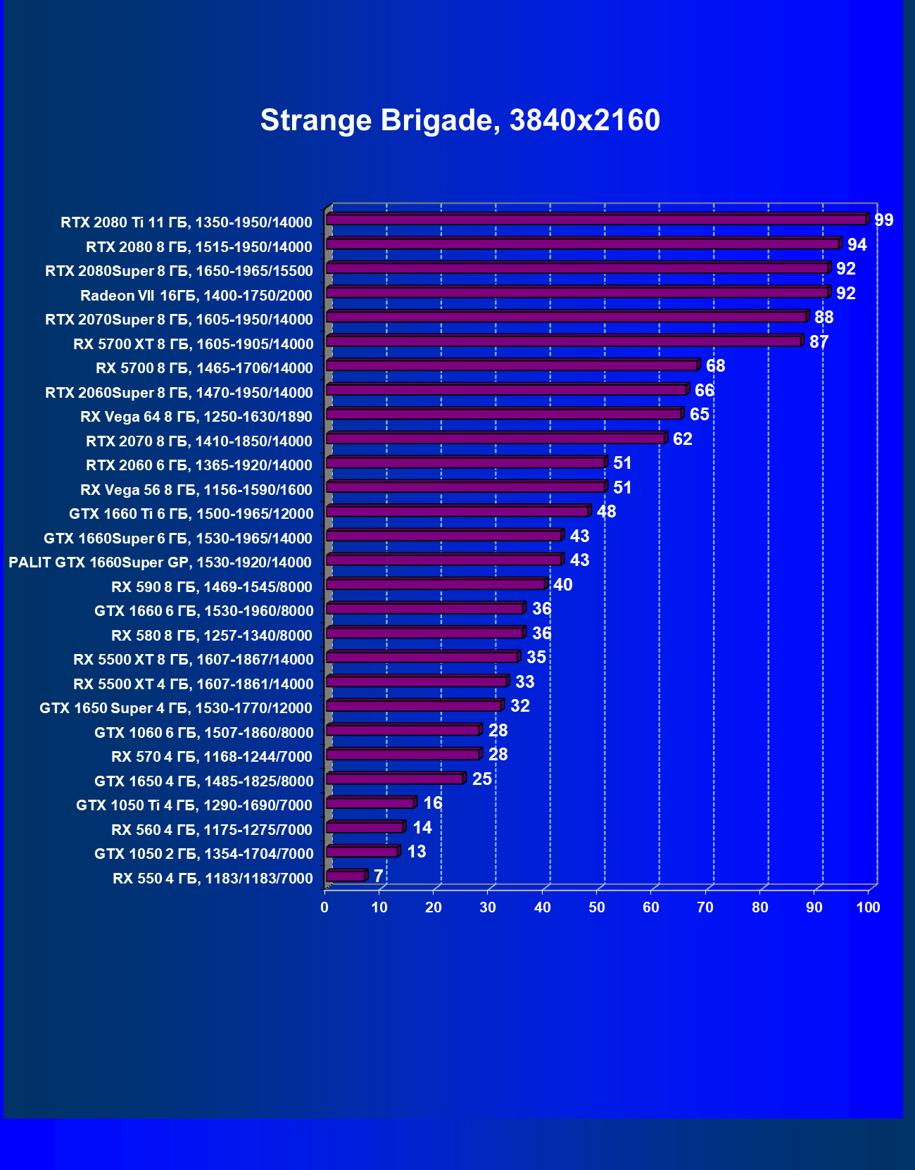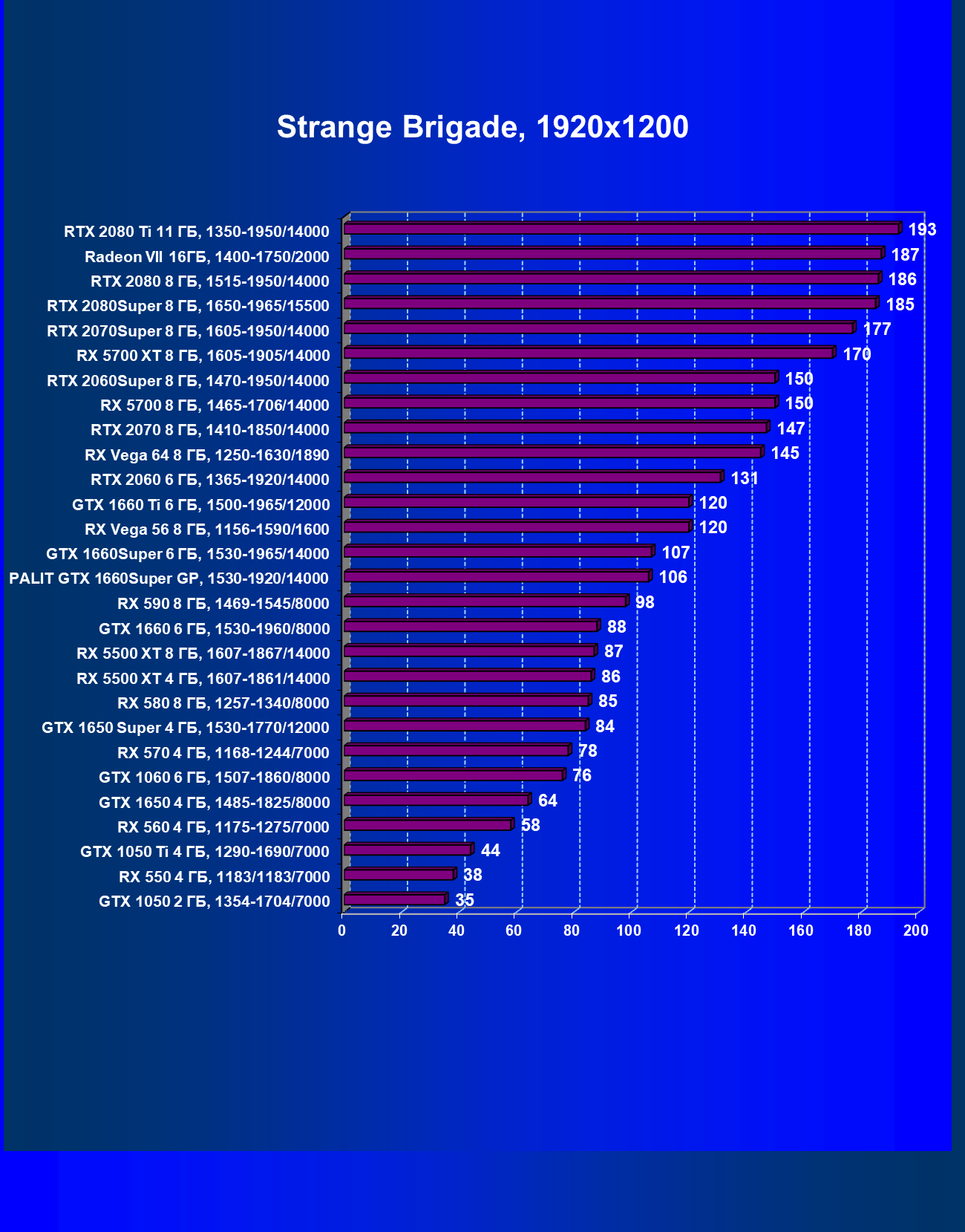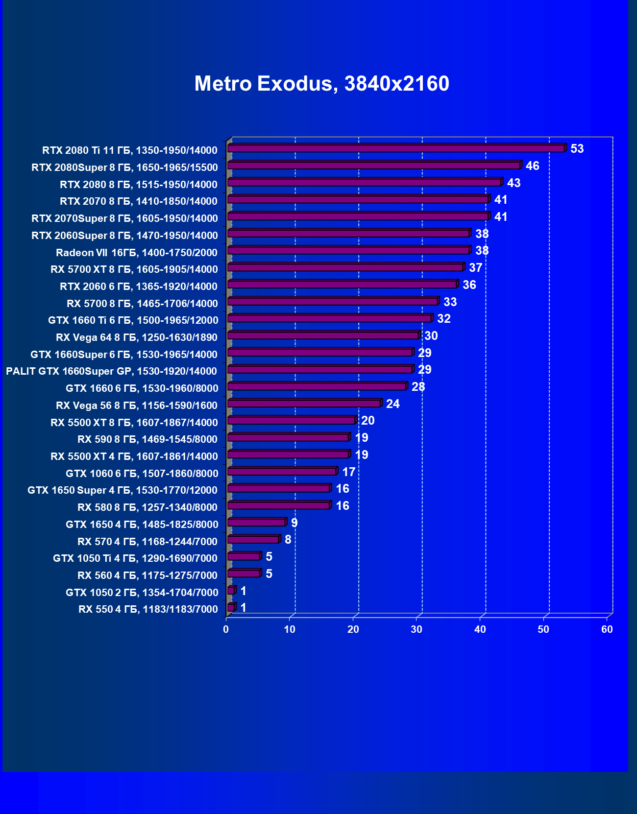 | 15 | GTX 1660 Super 6 ГБ, 1530—1965/14000 | 540 | 362 | 14 900 |
