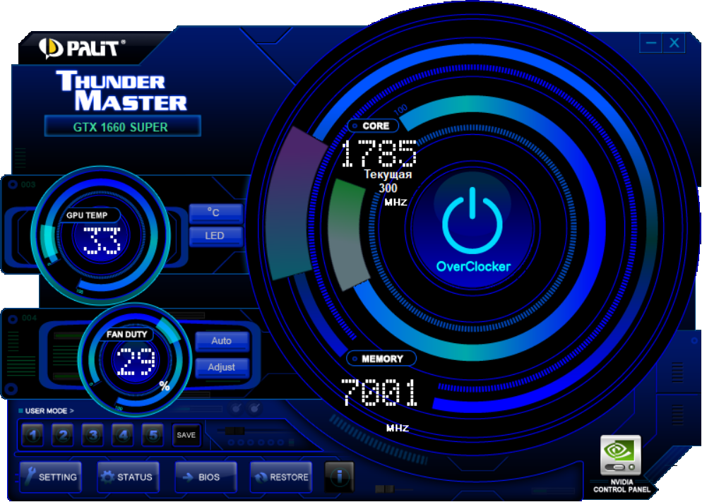 Управление работой карты обеспечивается с помощью фирменной утилиты Thunder Master.