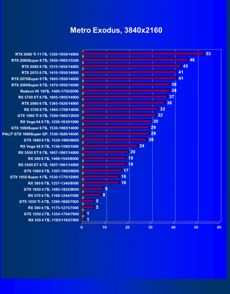 | 13 | GTX 1660 Ti 6 ГБ, 1500—1965/12000 | 590 | 362 | 16 300 |