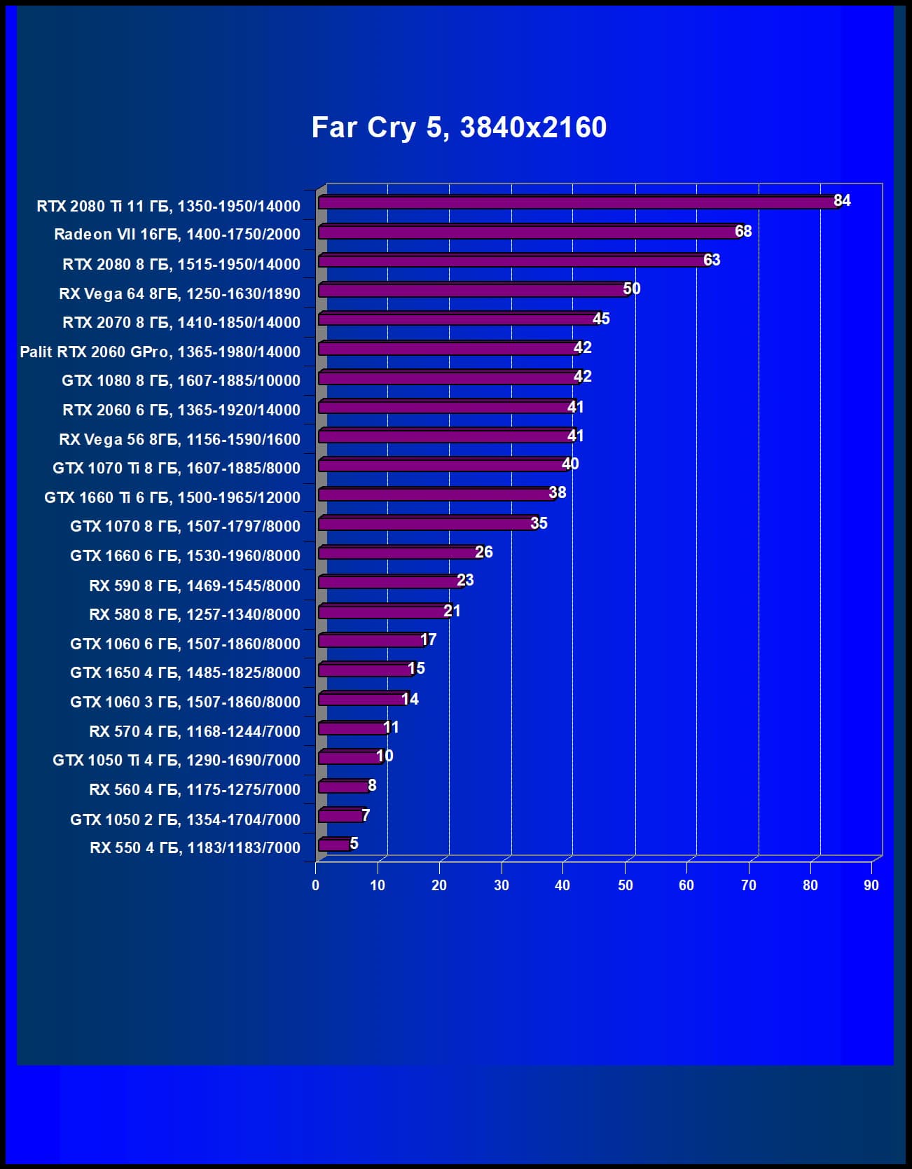 | 05 | Palit RTX 2060 GamingPro, 1365—1980/14000 | 289 | 680 | 23 500 |